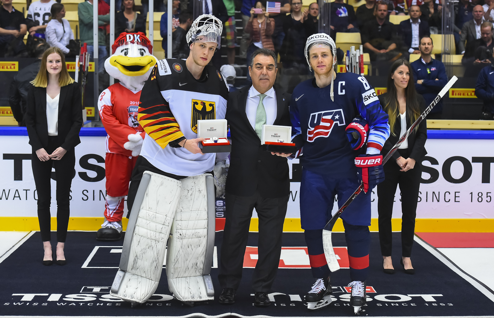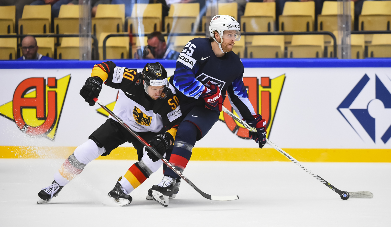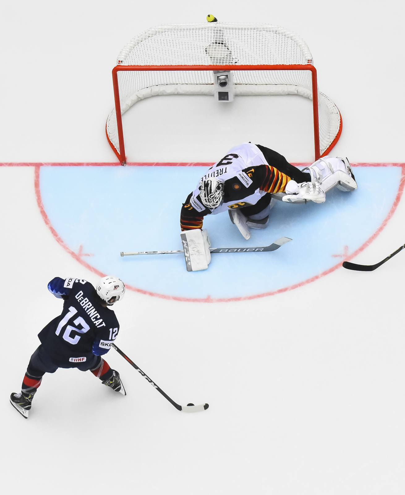 In the second period the Americans pressed the attack, putting solid pressure in the German end. Colin White was loose for a breakaway and tried a backhand but Niklas Treutle, making his World Championship debut, stuck his left pad out to make the stop.