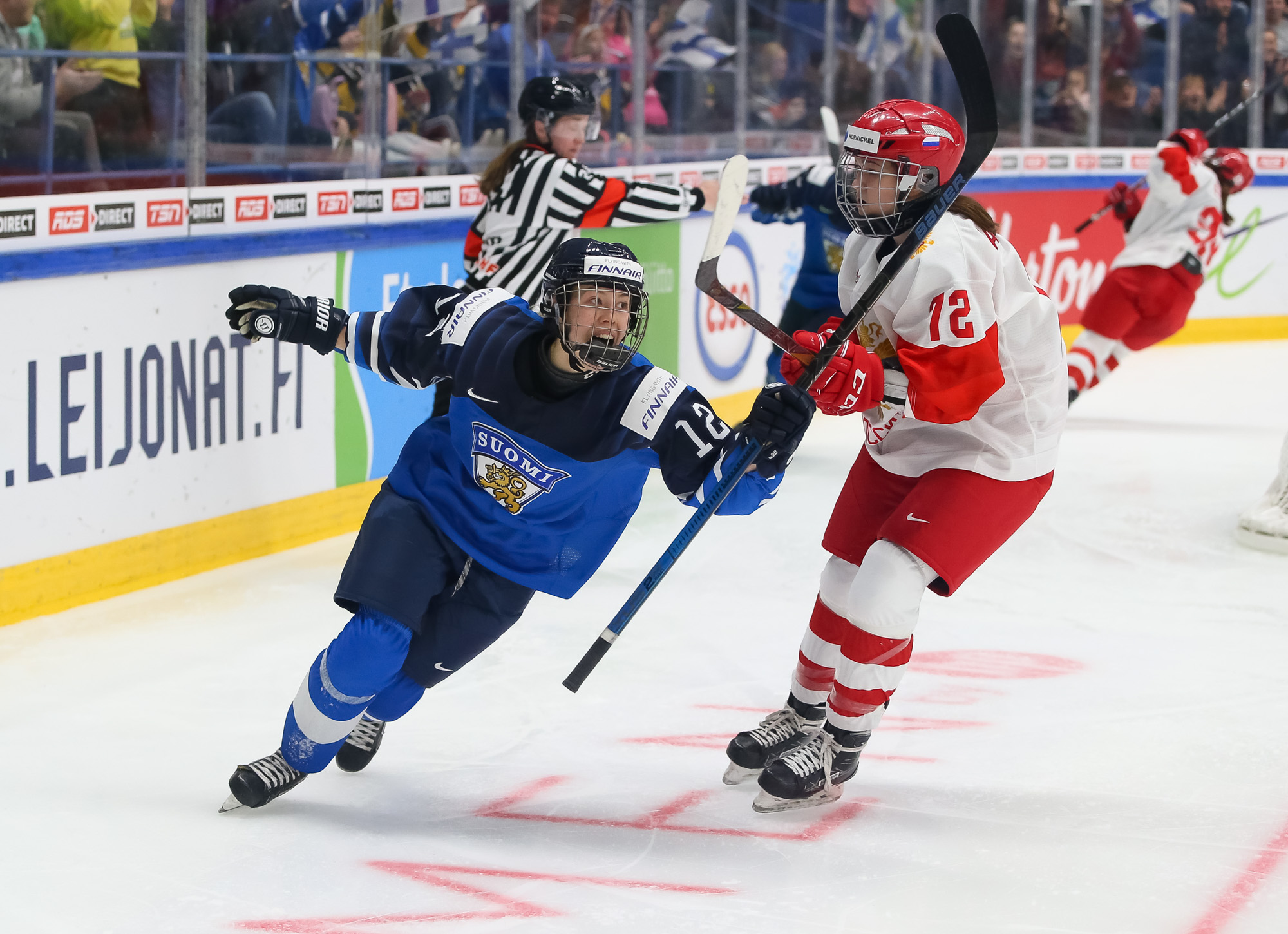 The starting goalies were a study in contrasts. Dynamo St. Petersburg’s Valentina Merkusheva, a 19-year-old Muscovite, made her Women’s Worlds debut between the pipes versus Olympic all-star Noora Raty, making her 35th appearance – second all-time only to Switzerland’s Florence Schelling (44). Raty earned her sixth career Women's Worlds shutout.