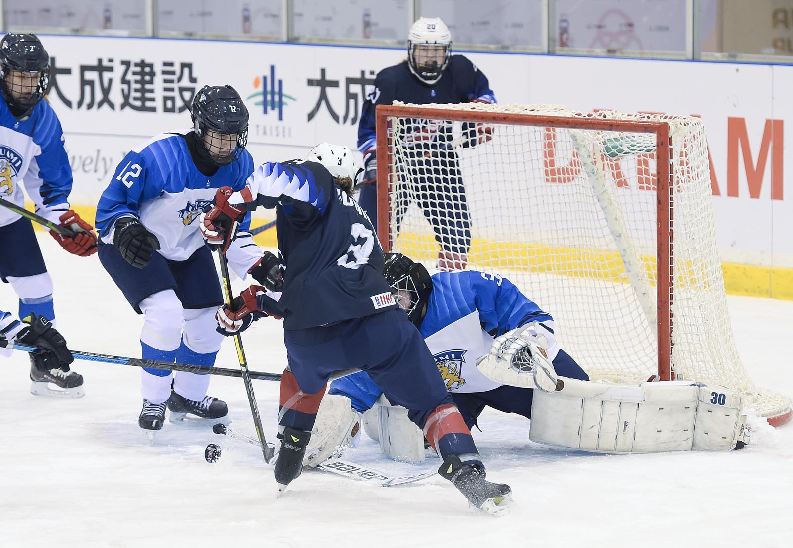 Team USA scored three goals in the first 8:09, chased Erica Jaskari from the goal, and coasted to a 7-1 win over Finland this afternoon in Obihiro.