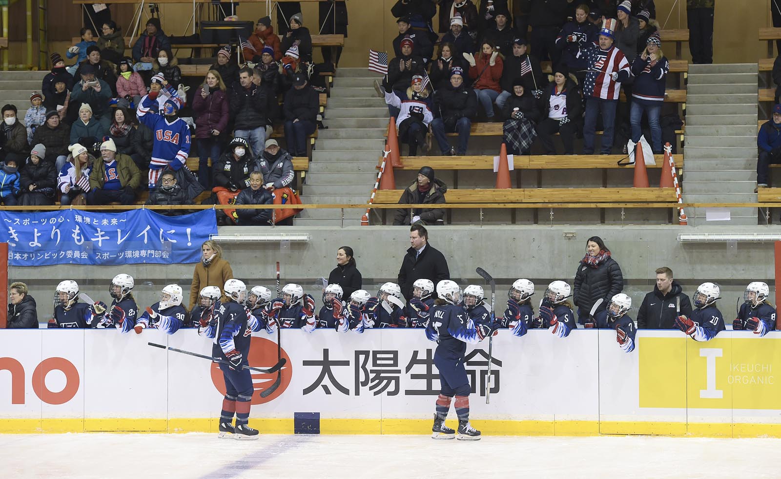 The Americans made it 4-0 late in the period on a power play when captain Dominique Petrie knocked in a loose puck from the top of the crease.
