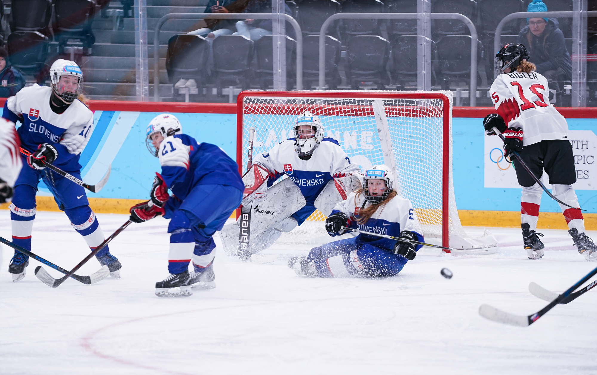 This time the game was with players two years younger and on Swiss ice but with the Slovaks writing history. The Slovaks outshot Switzerland, who had captain Alina Marti and Elena Gaberell sidelined, 23-12 but it was a tight battle from the beginning until the end.