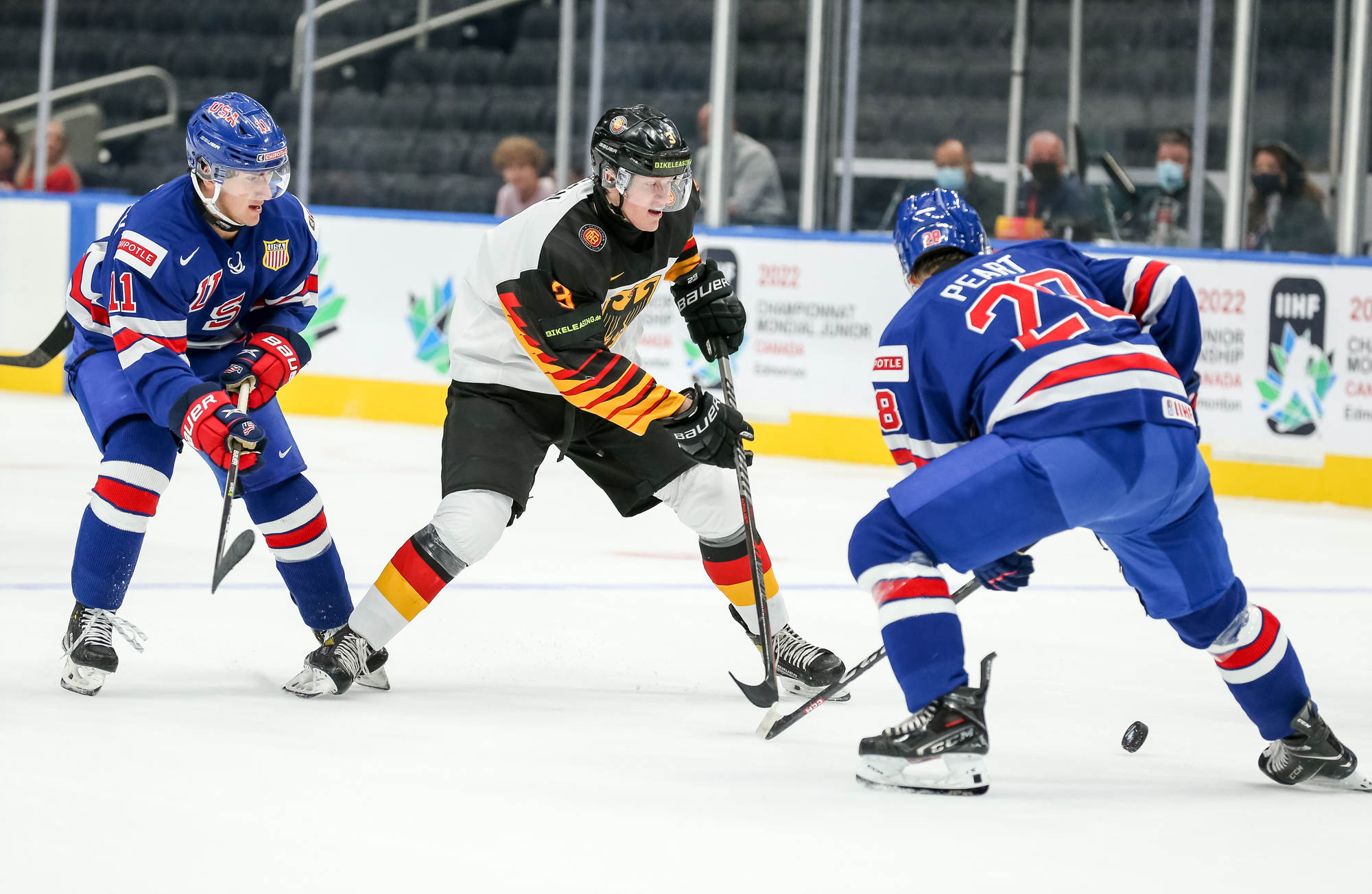 Team USA, gold medallists from the 2021 World Juniors, began defence of their title with a dominating 5-1 win over Germany tonight at Rogers Place in Edmonton.