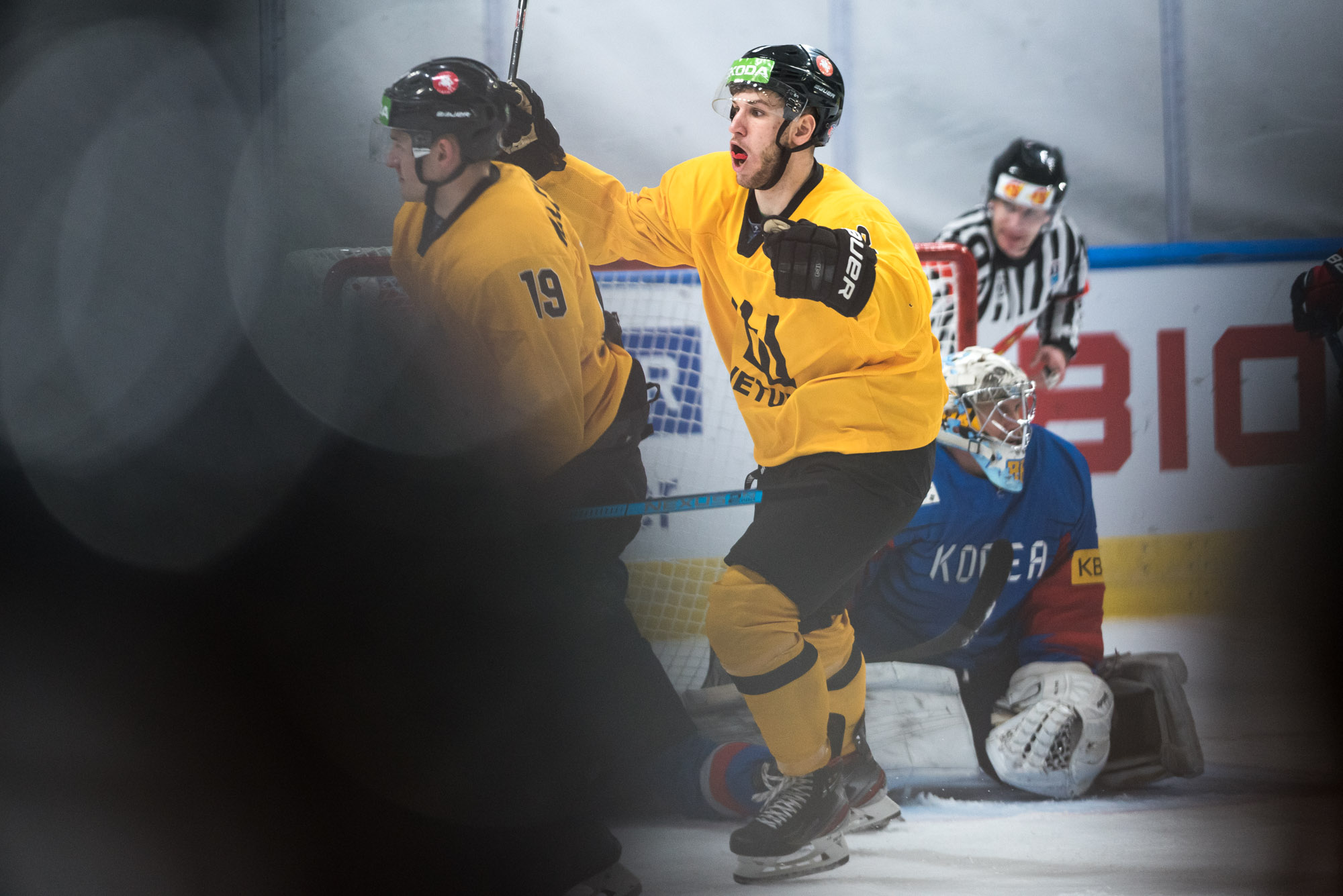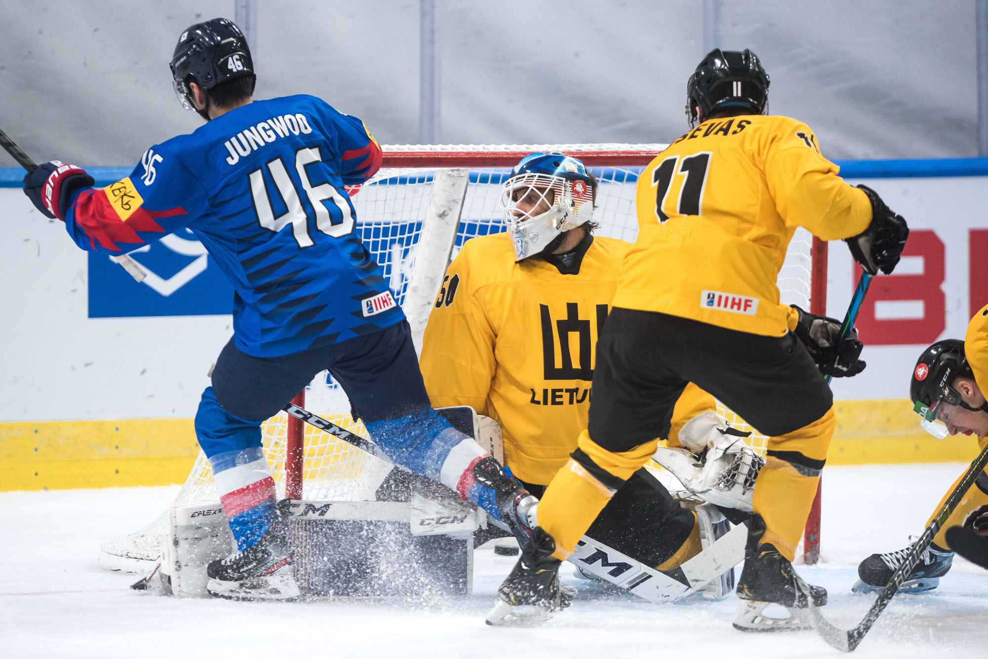 The game direction didn’t change much in the third period. Although Korea was forced to react, the Lithuanians managed to defend well and to create a surplus of chances. At 12:34 Noreika scored the 4-2 goal for Lithuania on the powerplay capitalizing on his own rebound.