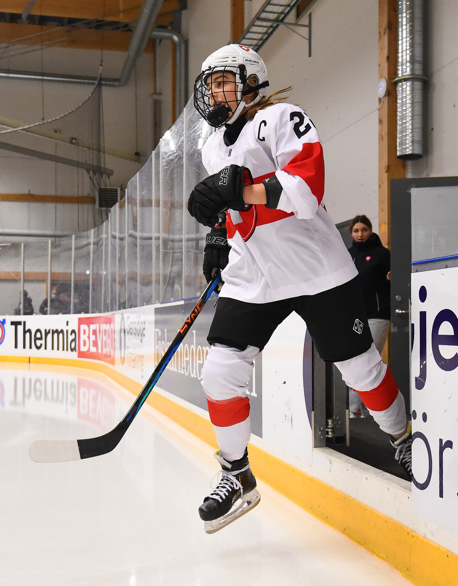 With 54 seconds left in the opening period, Naemi Herzig fired a shot from the right circle which Japanese netminder Madoka Sekiguchi stopped. But the puck took a weird bounce and slid through the crease, hit the skate of a Japanese player in front and slowly crossed the goal line.