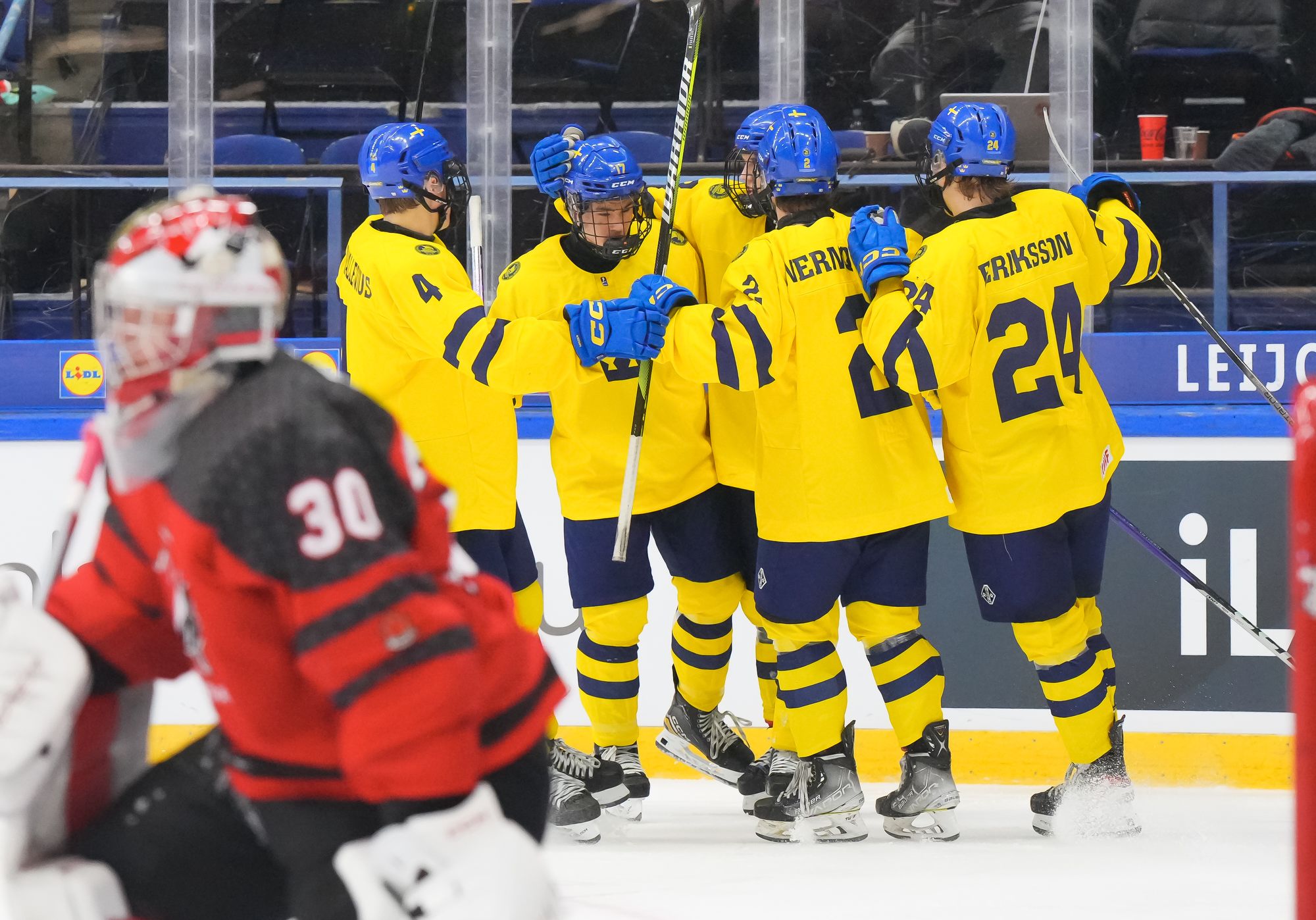 Canada led 5-2 after two periods but third-period goals by Sweden’s Victor Eklund and Hugo Orrsten caused some tense moments on the Canadian bench and kept the result in doubt until the end.