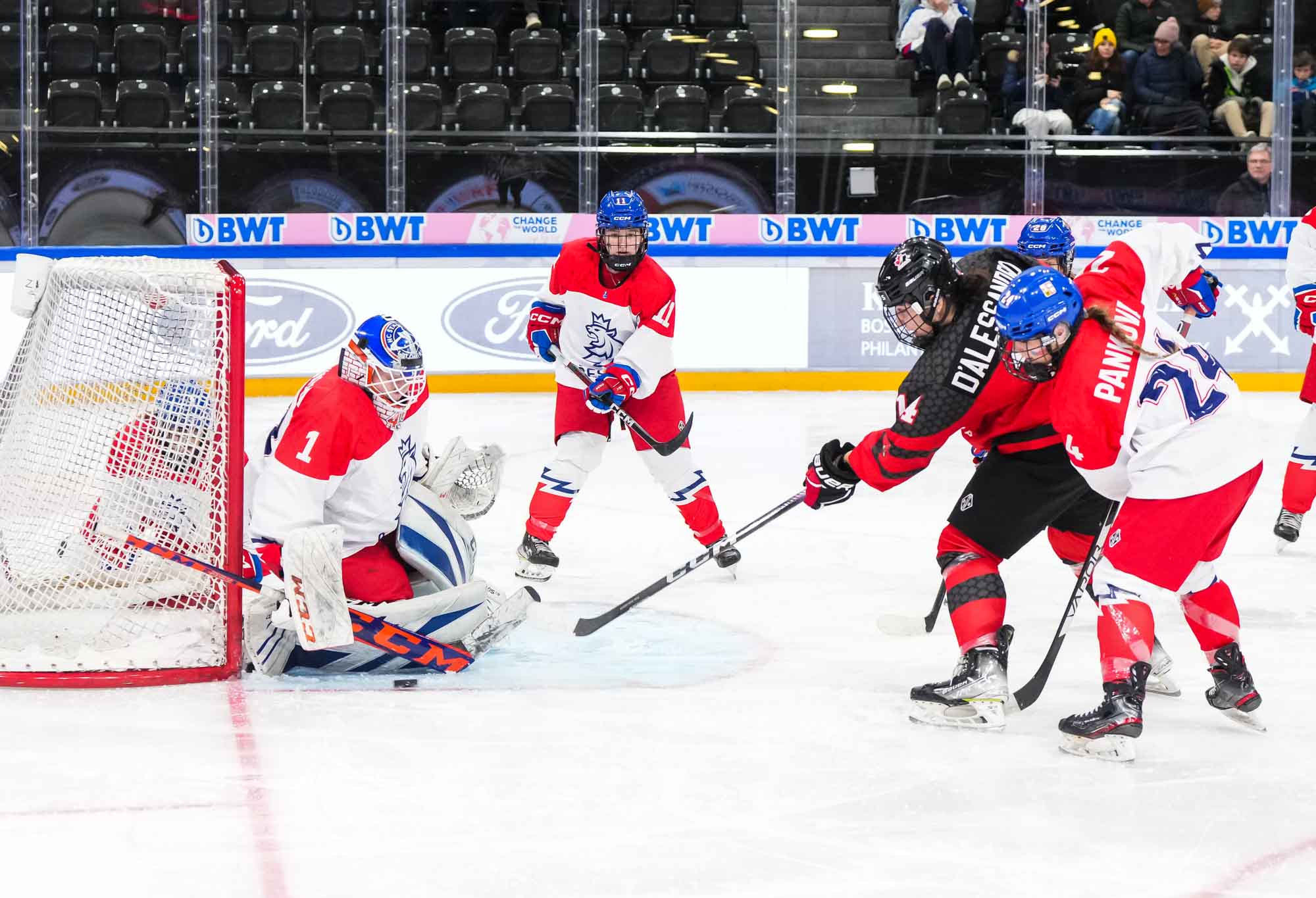 Off an intense forecheck, Plosova fed Madlen Chladova at the point, and Sapovalivova was Johnny-on-the-spot in front to tip it in for a 1-0 lead at 13:16. The lift it gave the Czech bench was palpable.