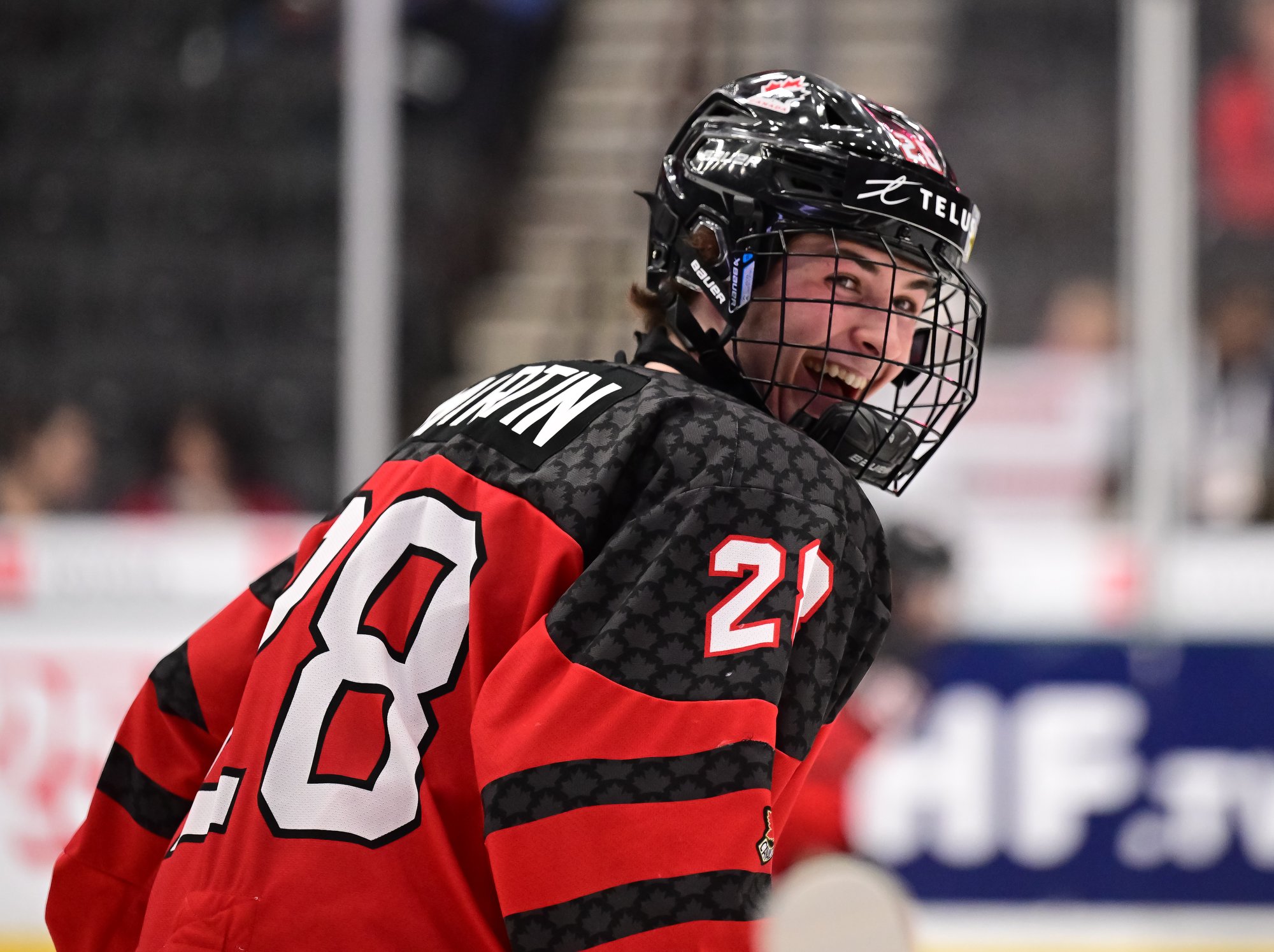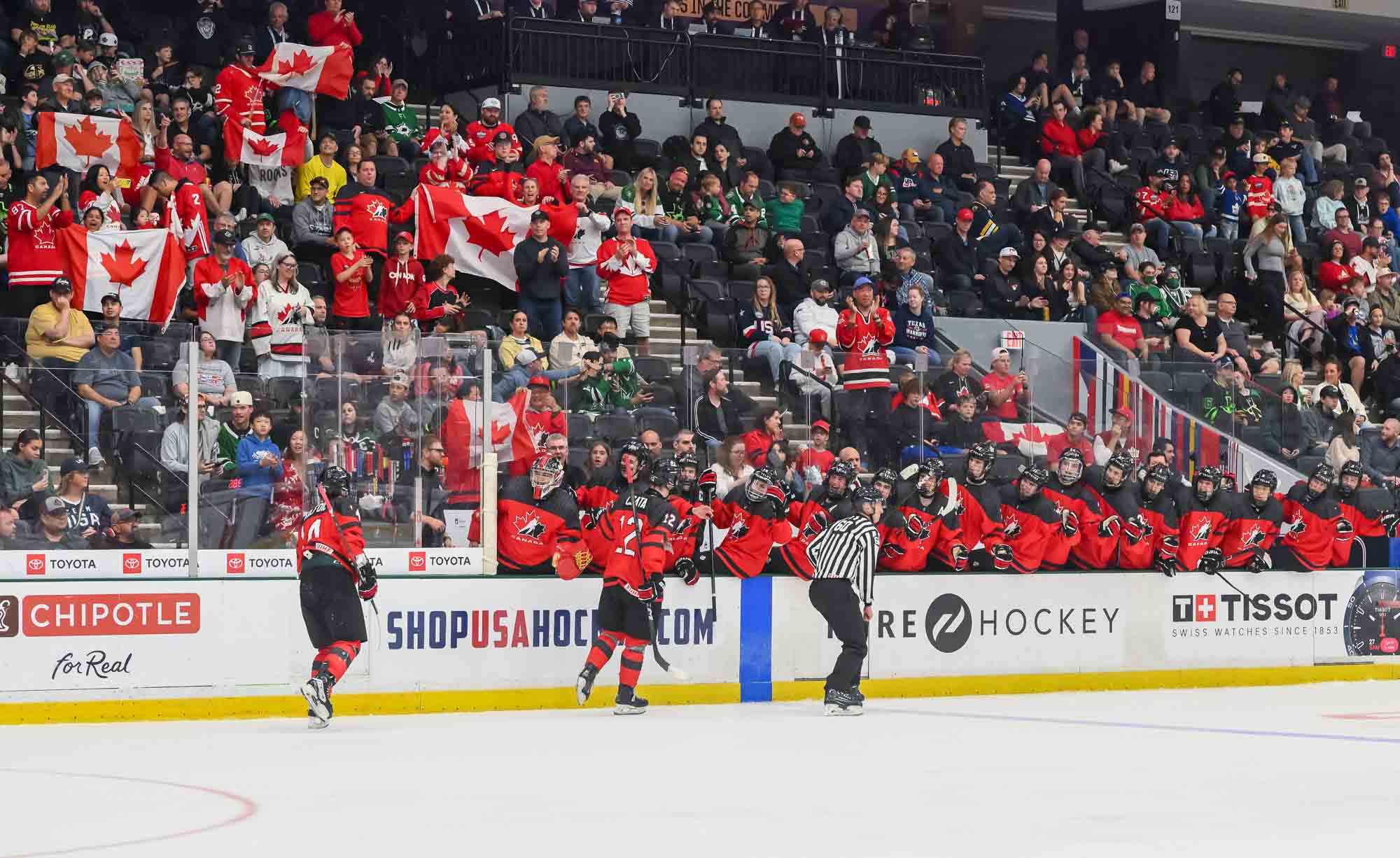 The Canadians doubled their lead at 12:31 off a fortuitous bounce. A point shot hit a cluster of bodies in front and the puck came to Cole Reschny who made a clever back pass to Martin, who knocked the puck into the open net.