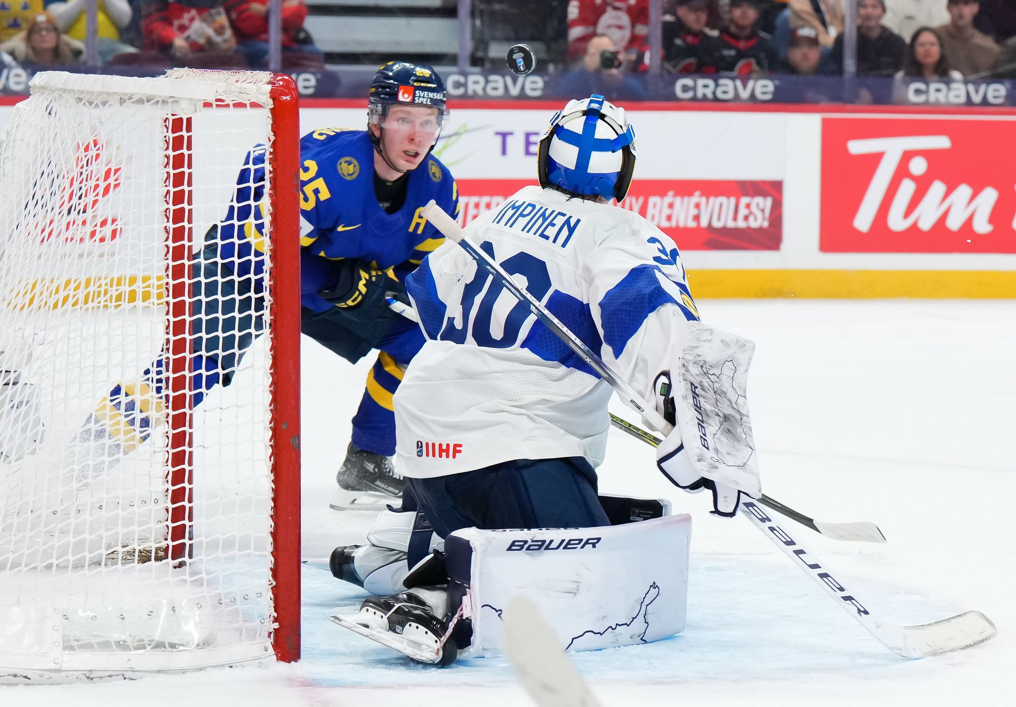 Sweden's power play got a glorious chance in sudden death after Nurmi clipped Felix Unger Sorum with a high-stick. Unger Sorum tested Rimpinen twice during the man advantage, but the Finnish goalie denied him with his glove.