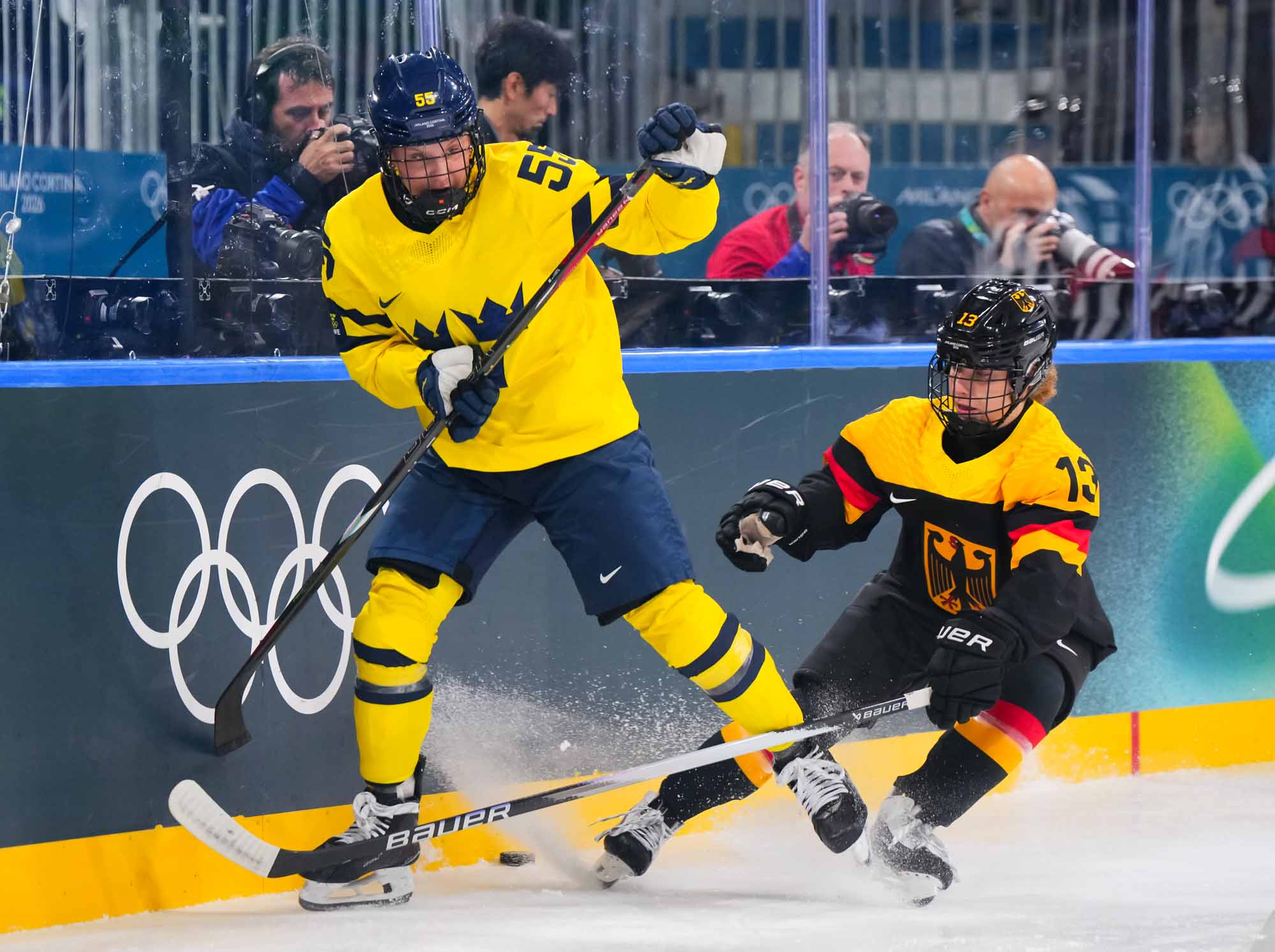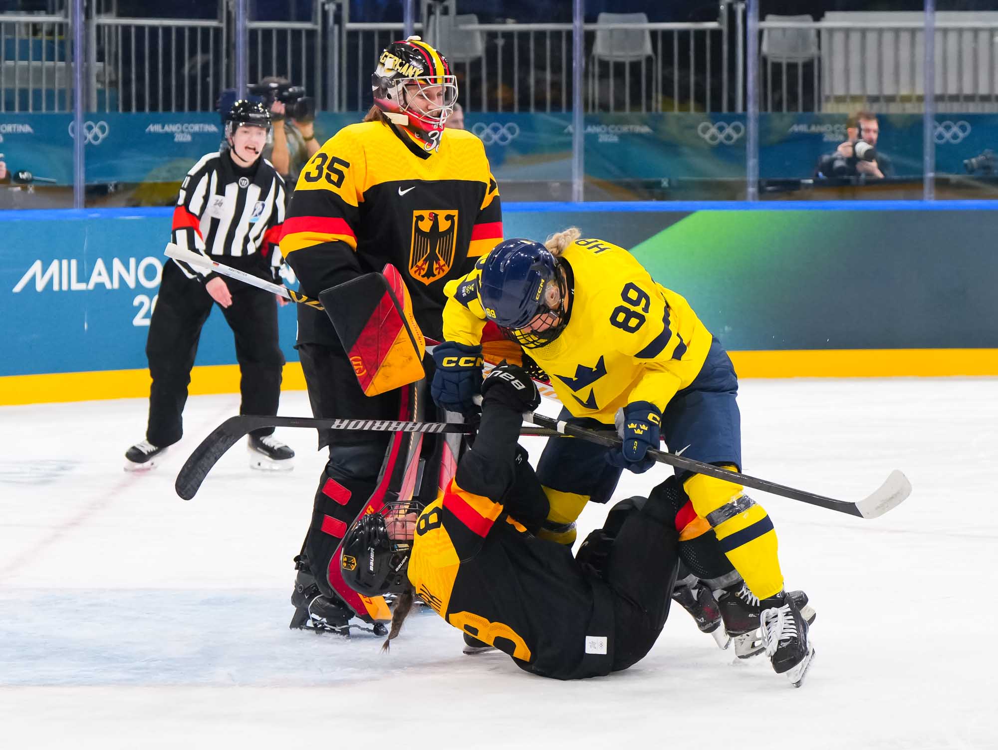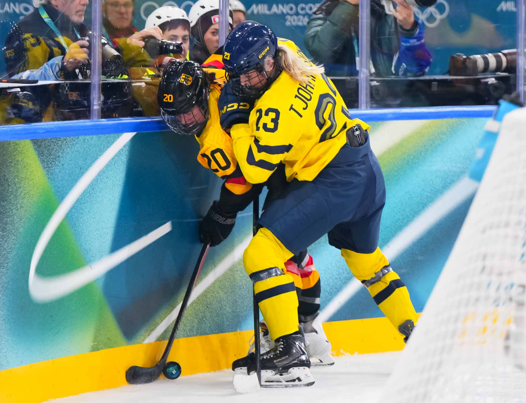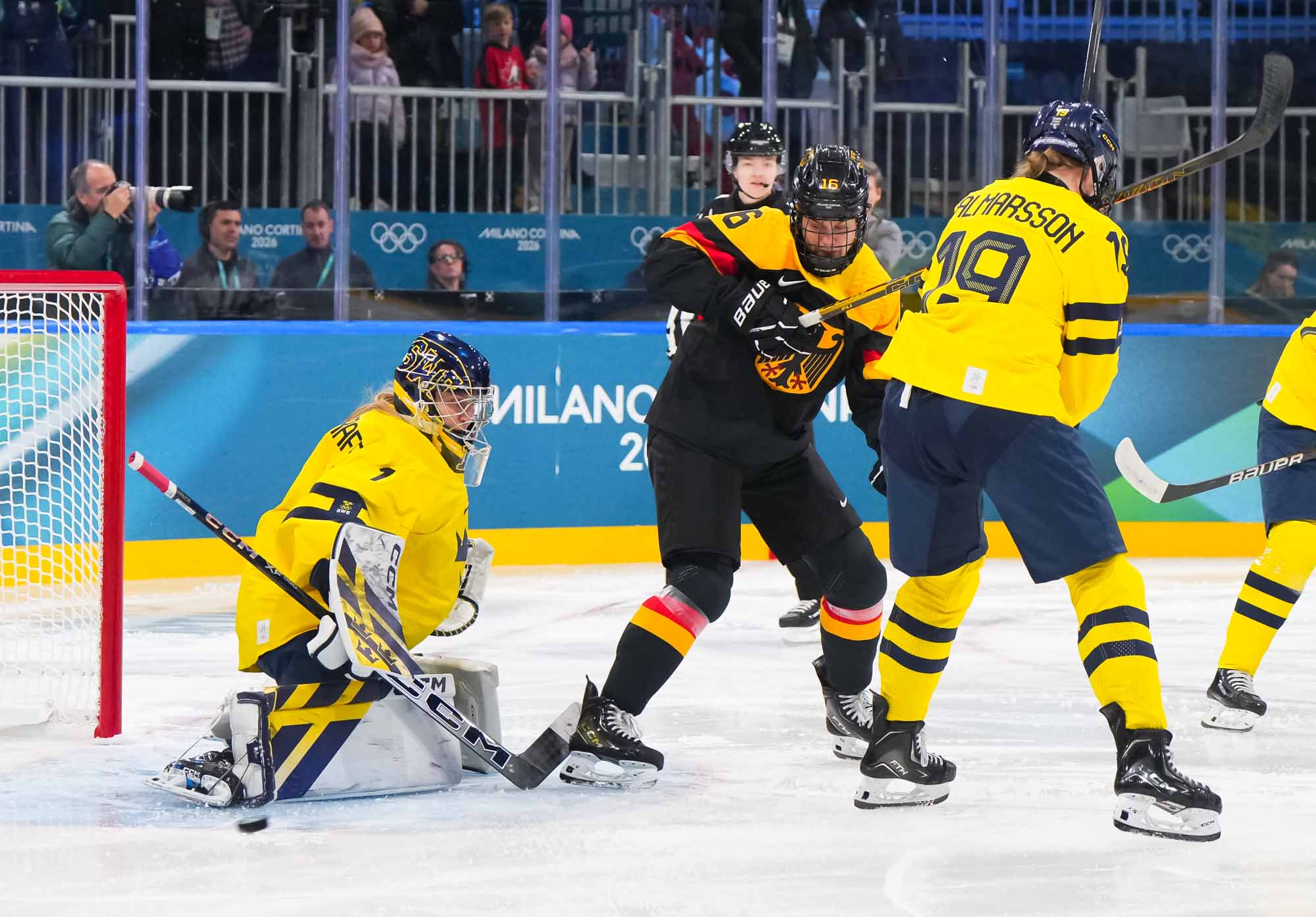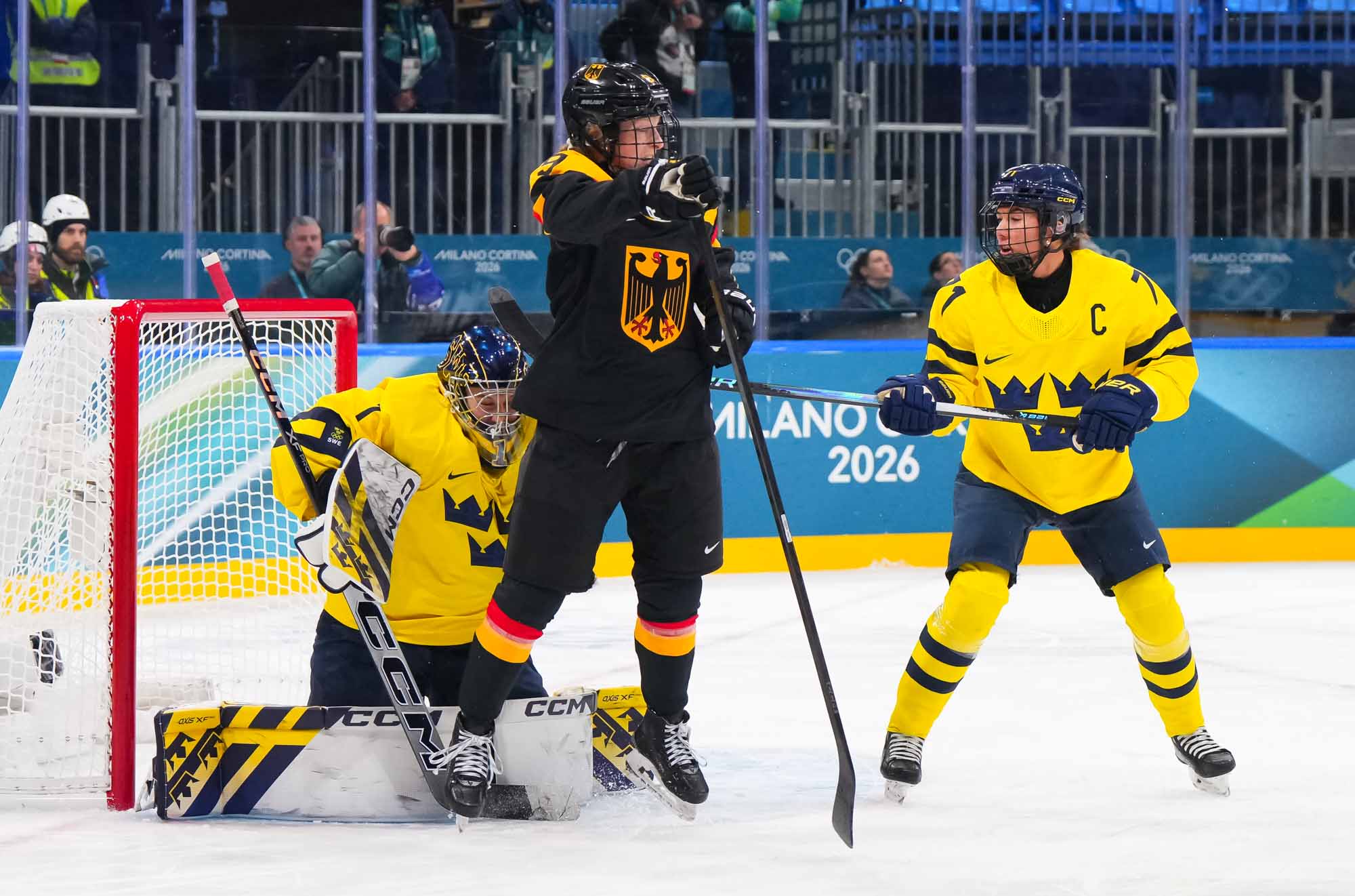 The Germans were on the scoreboard first, converting a power play at 8:30. Defender Katarina Jobst-Smith, who led all players with 25:34 of ice time, snapped a shot off the crossbar and in after Mira Jungaker failed to get the puck out. It was their first shot on goal in the game. They had a nice chance to make it 2-0 during a Sweden power play, but Franziska Feldmaier was checked off the puck by Jungaker.