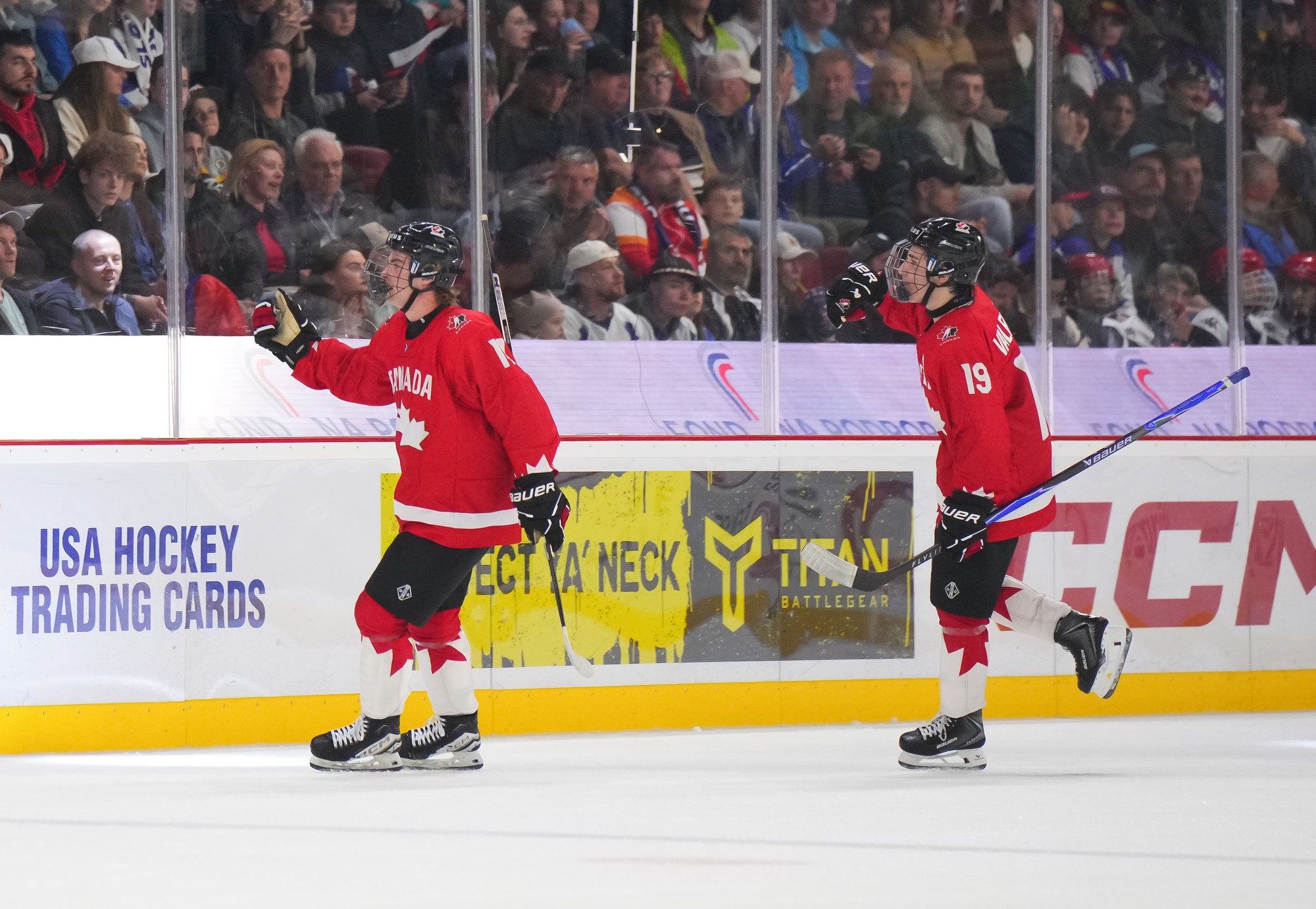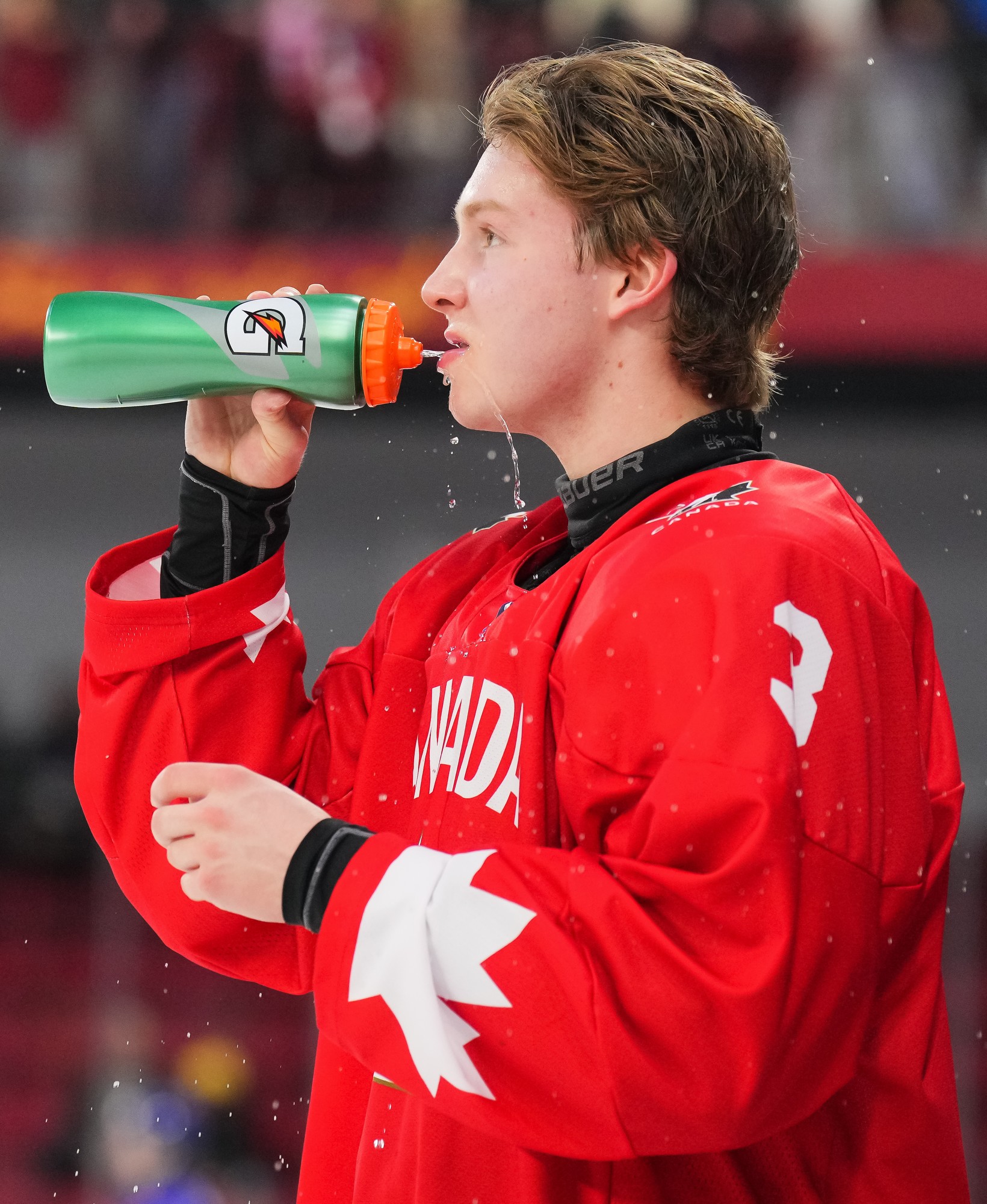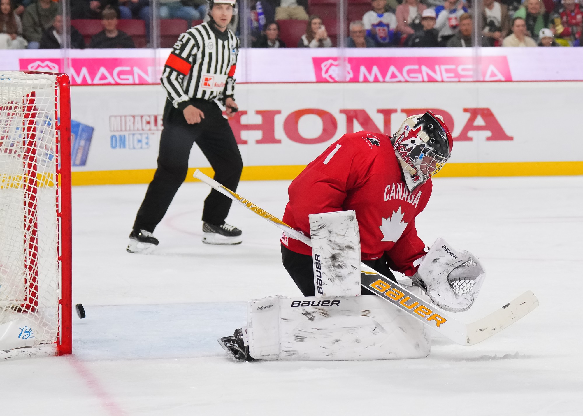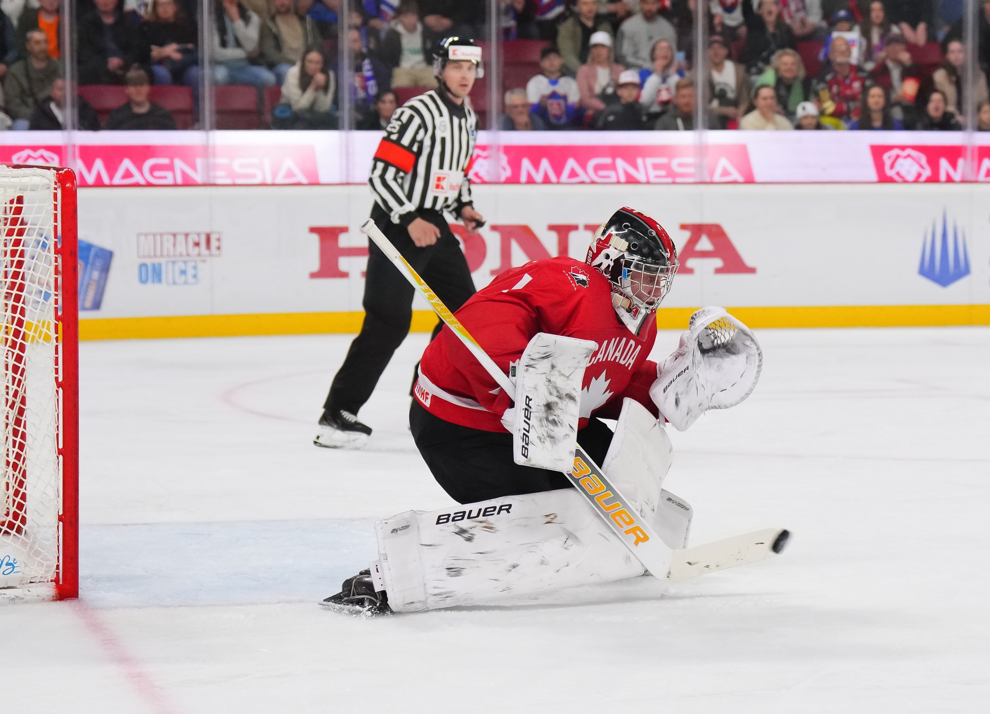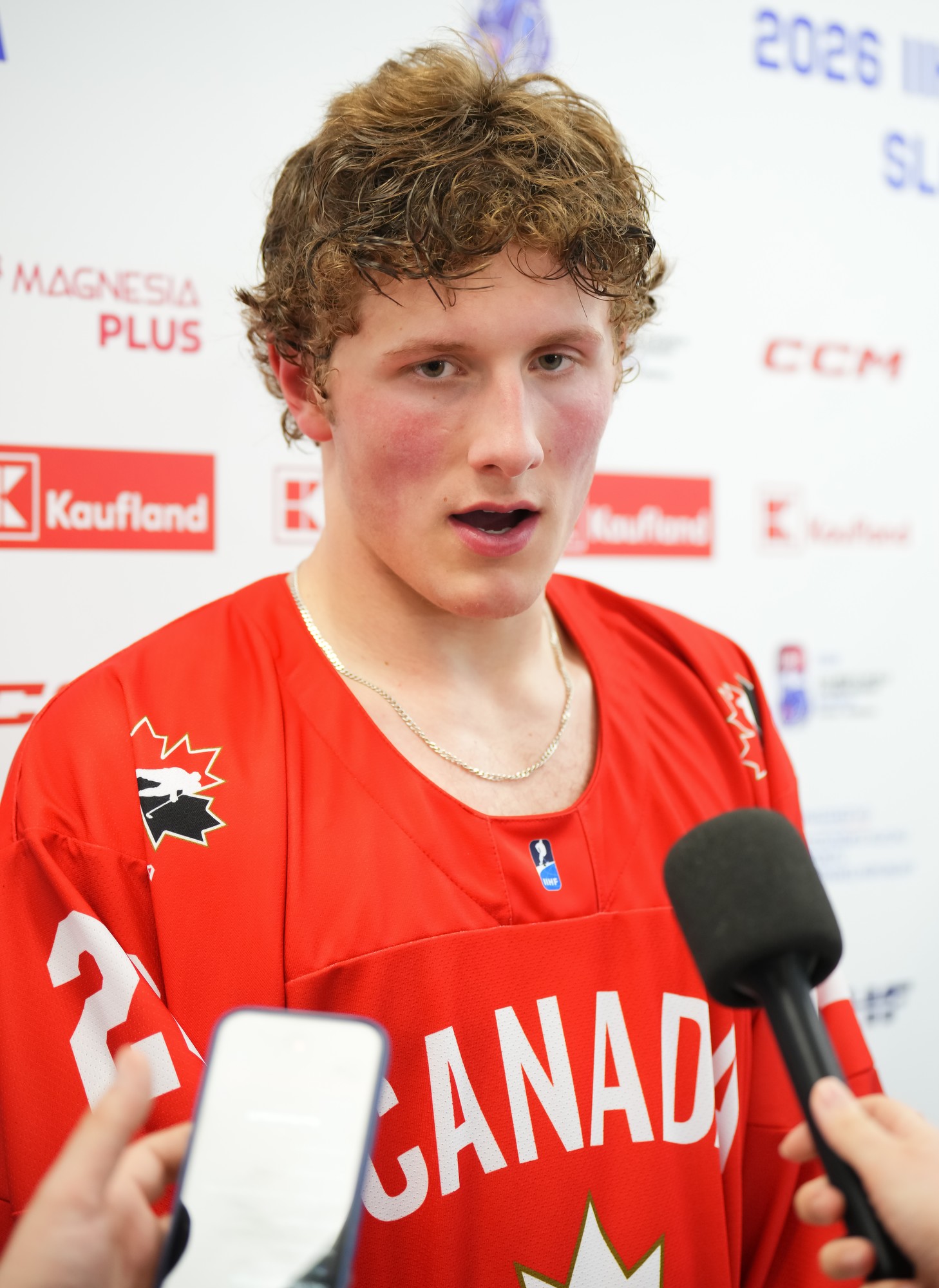 But Canada has resilience in its hockey DNA. A couple of minutes after that goal, with the jubilation still bubbling around the arena, a Slovak penalty led to an equalizer. This was one from the coach’s playbook, slick passing around the zone culminating in Adam Valentini’s feed in front of the net for Mathis Preston to touch home at the back door.