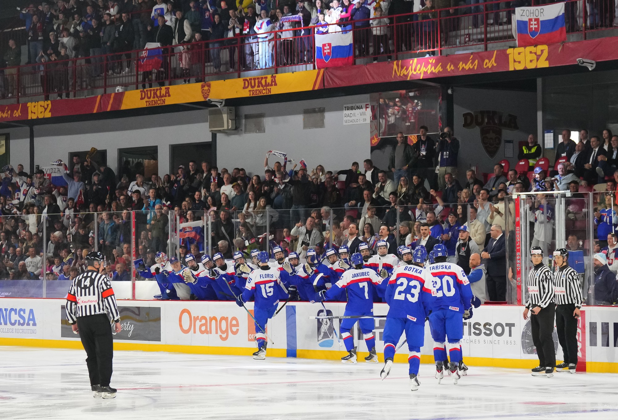 The wave of Slovak optimism crested almost immediately. Within a minute, the host nation was in front. Defender Jakub Floris opened the scoring after 49 seconds when he skated onto a Michal Jakubec feed and fired home from between the hash marks.