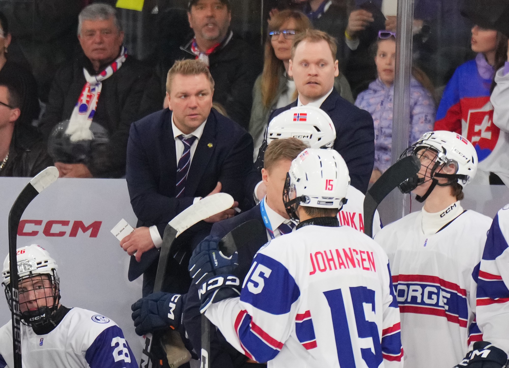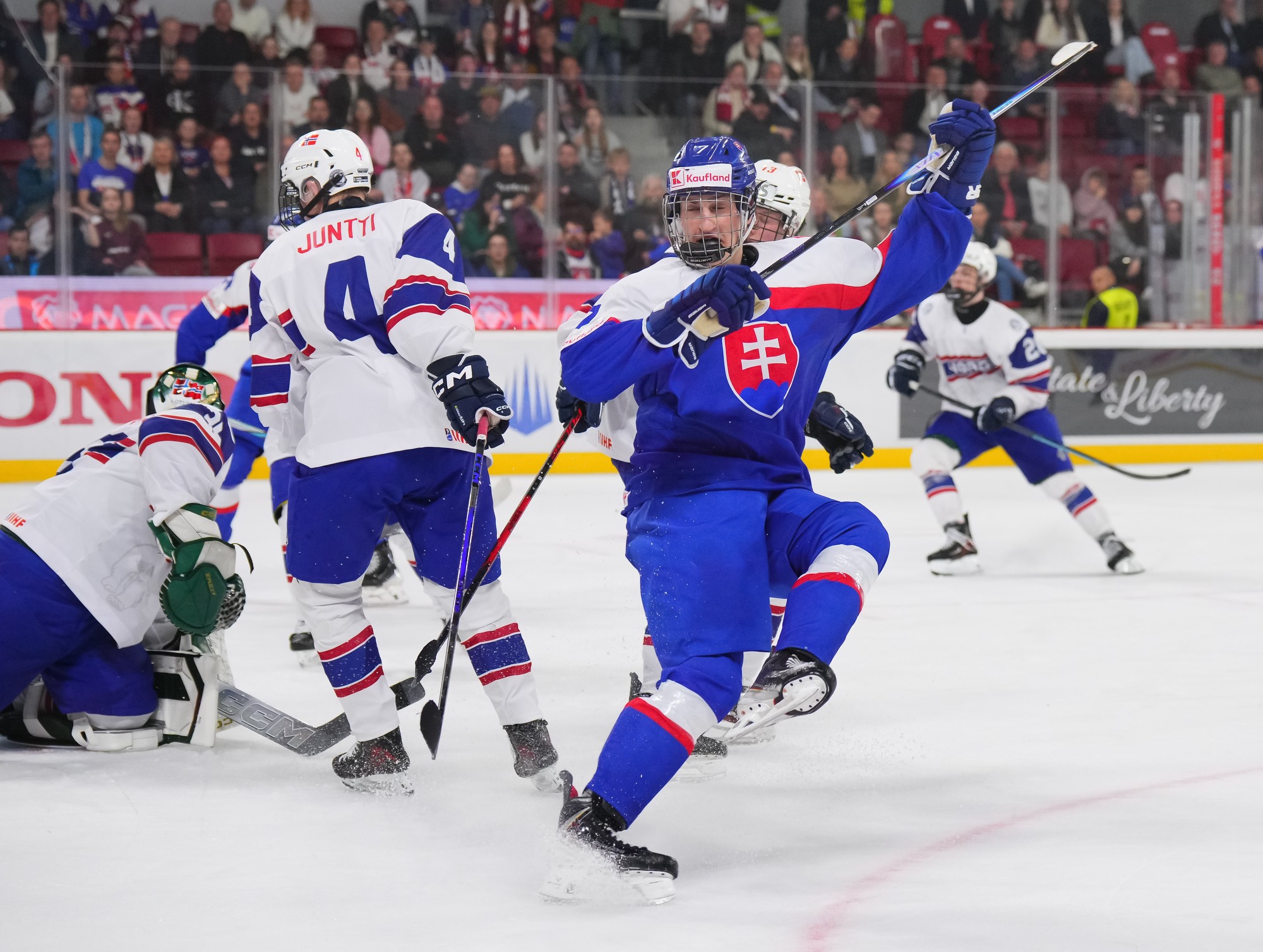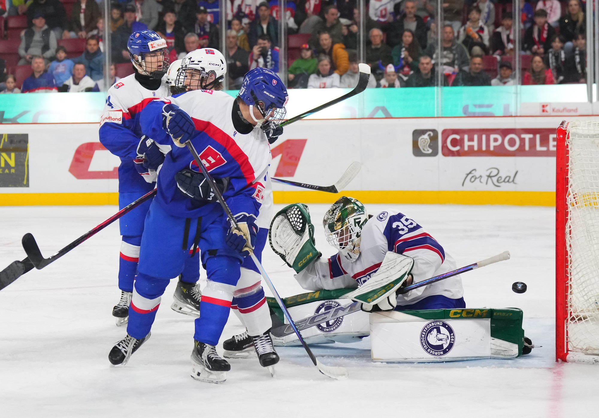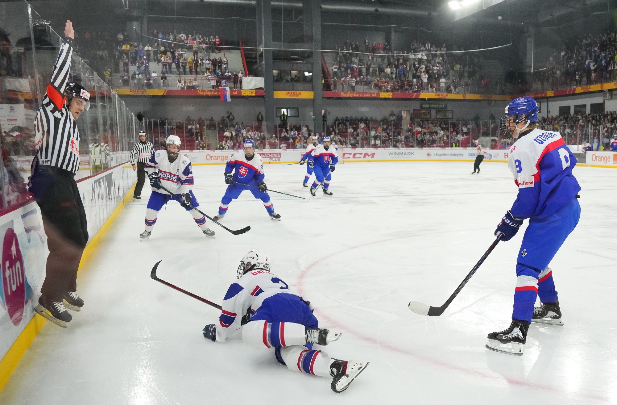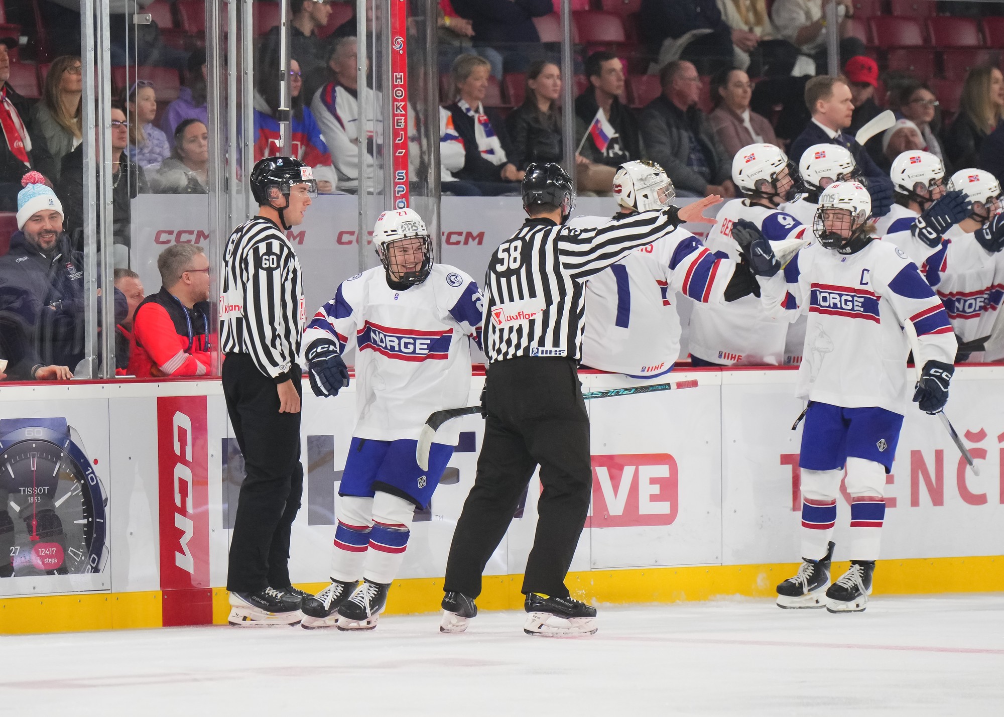 The Norwegian bench challenged the play, but merely earned a delay of game penalty after the review found no infringement. And that Slovak power play quickly added a fifth as Maxim Simko produced a fine finish from Matus Valek’s feed.