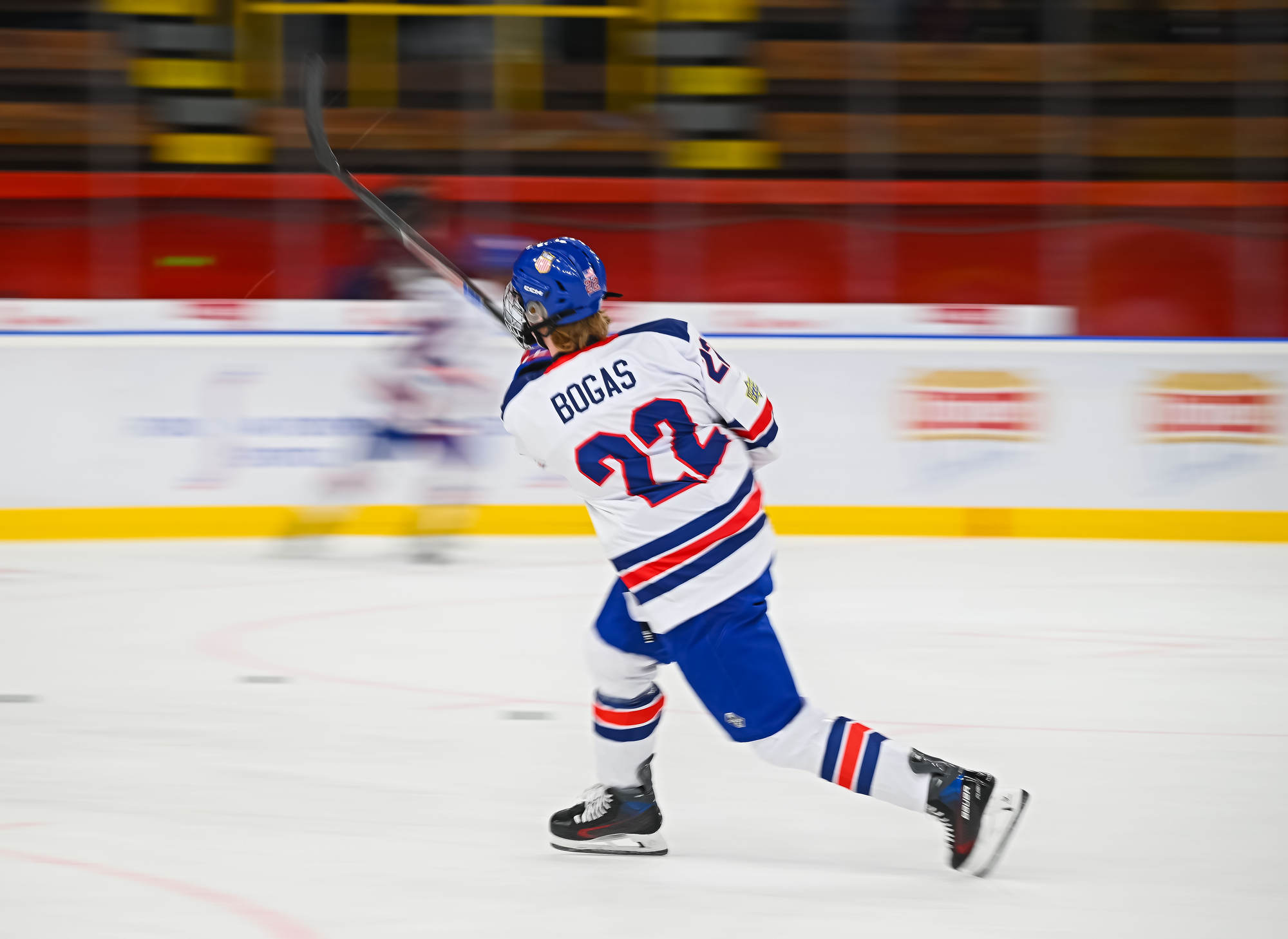 The USA finally found the net on the power play in the 27th minute. Wyatt Cullen carried the puck in from the point and perfectly set up a practically unstoppable one-timer from the slot by Berchild, which found space between Wilde’s glove and outstretched pad.