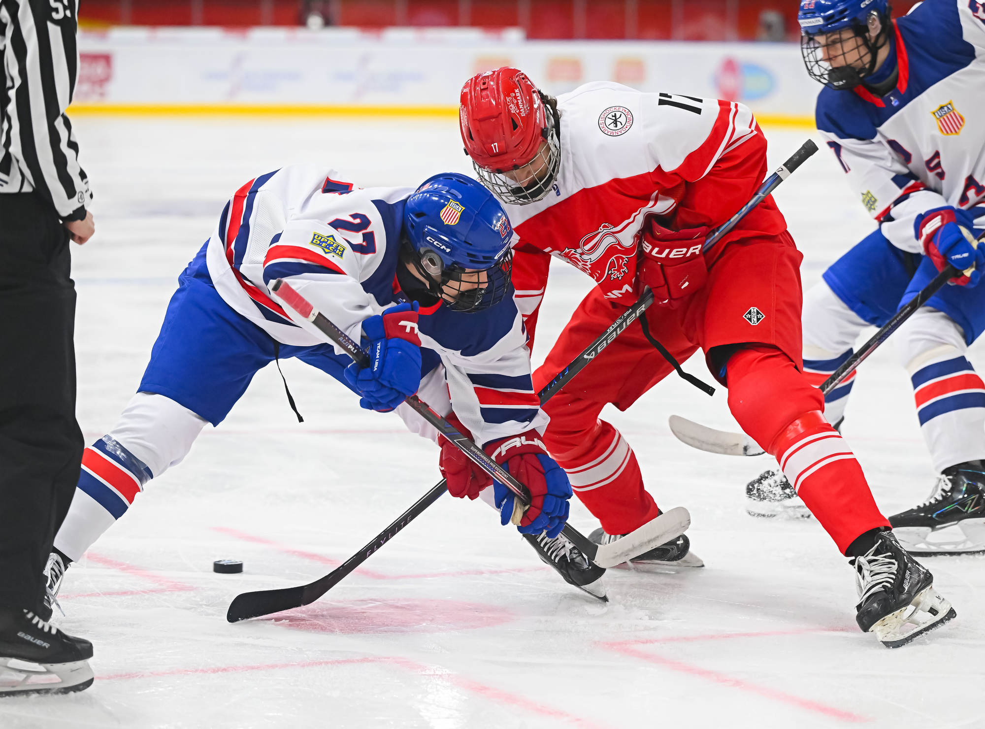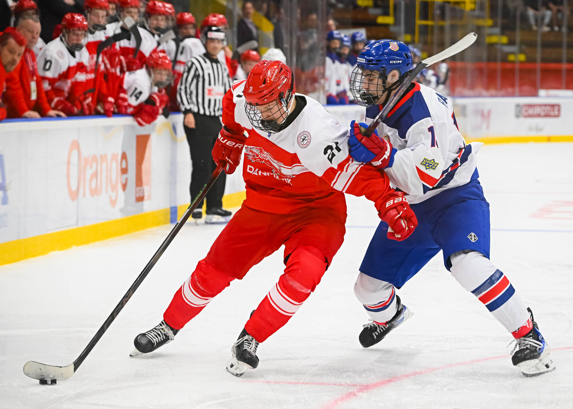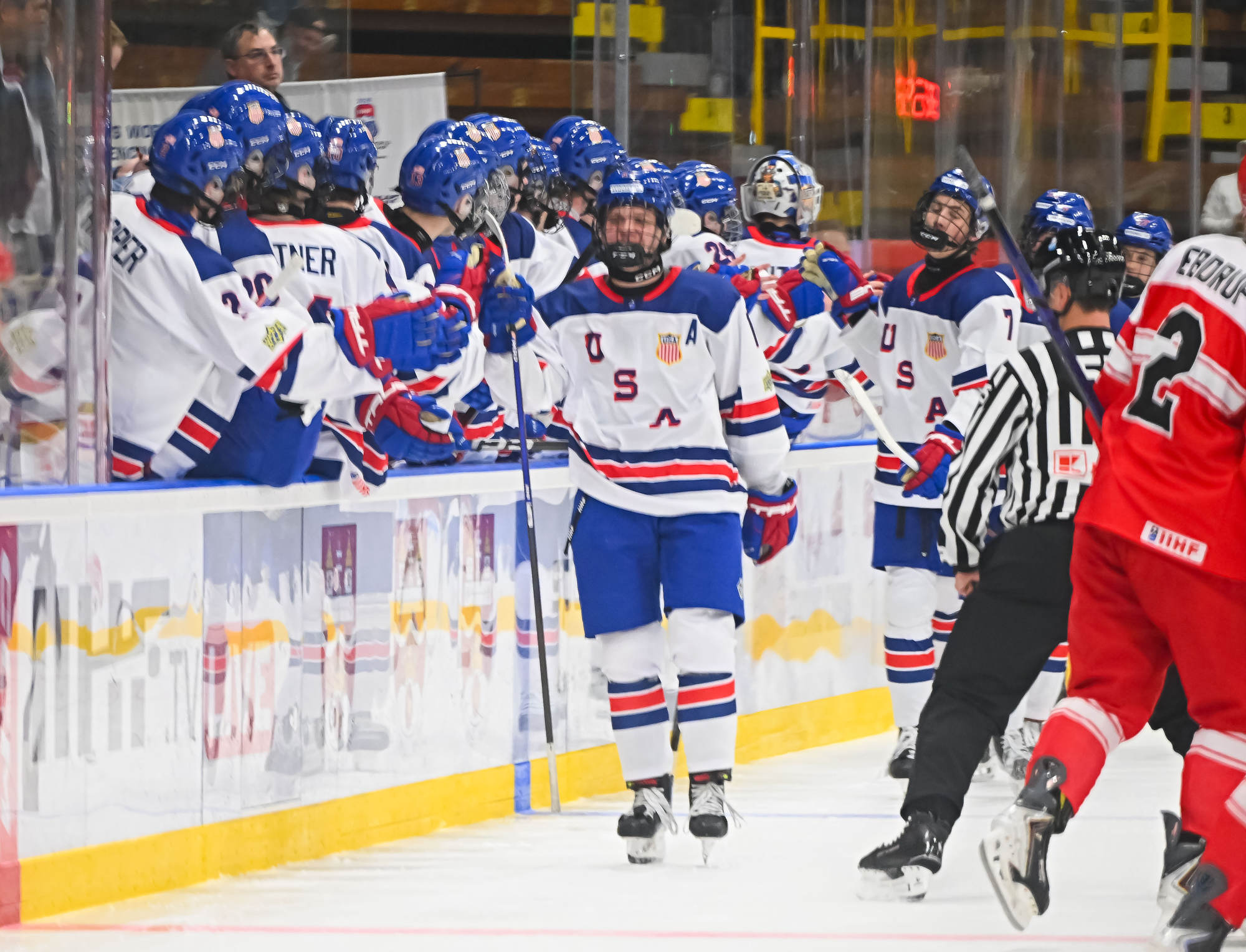 Desperate to keep it a one-goal game, Danish coach Flemming Green challenged that the puck was directed in by the skate. However, the goal stood, sending the USA back to the power play and putting the game away.