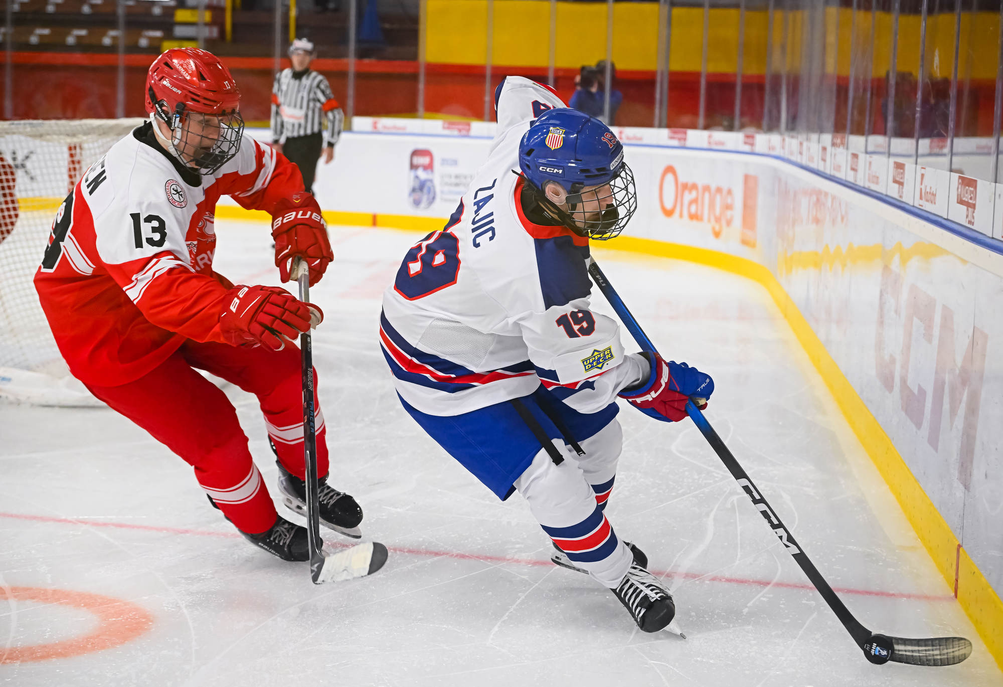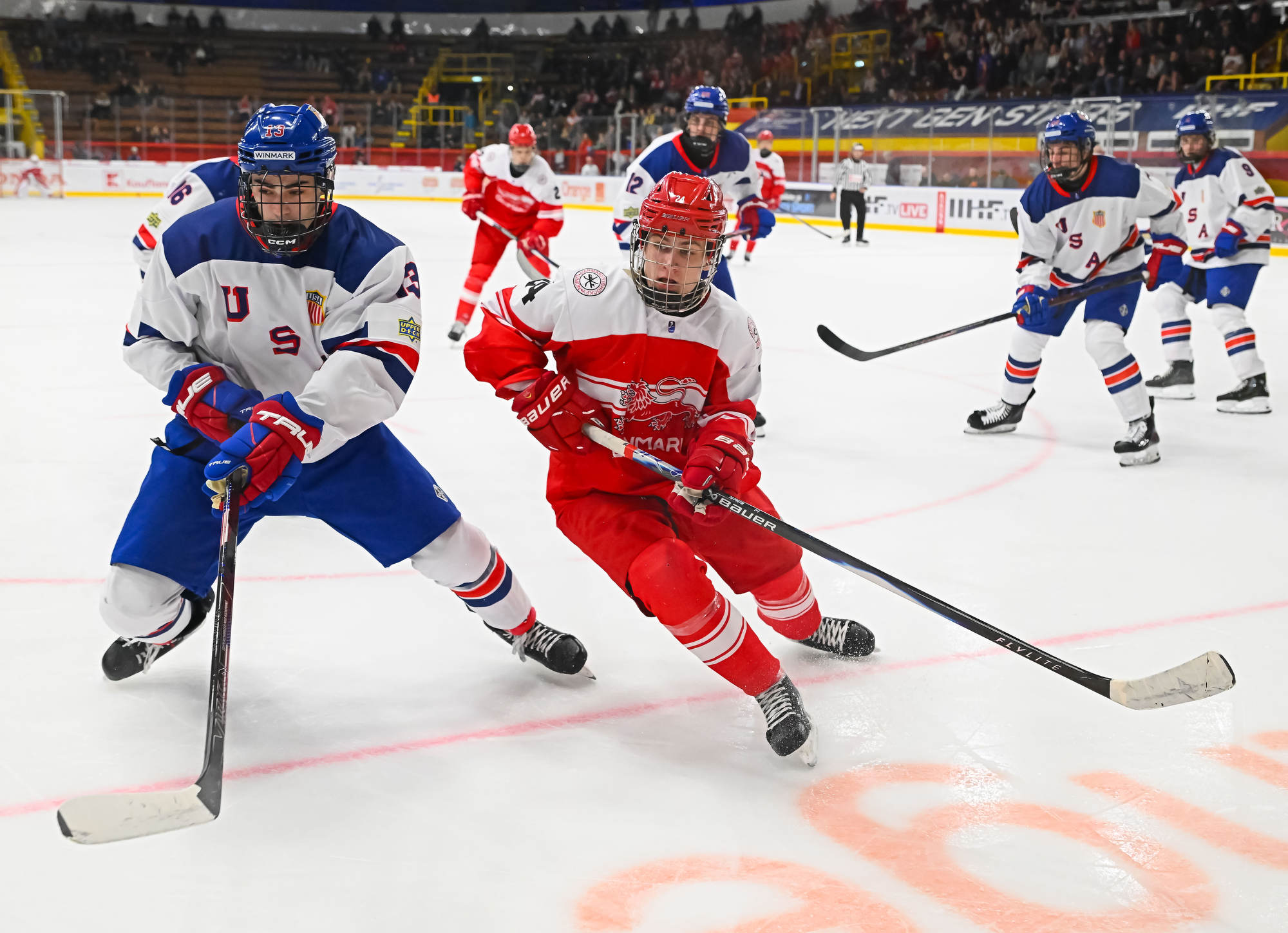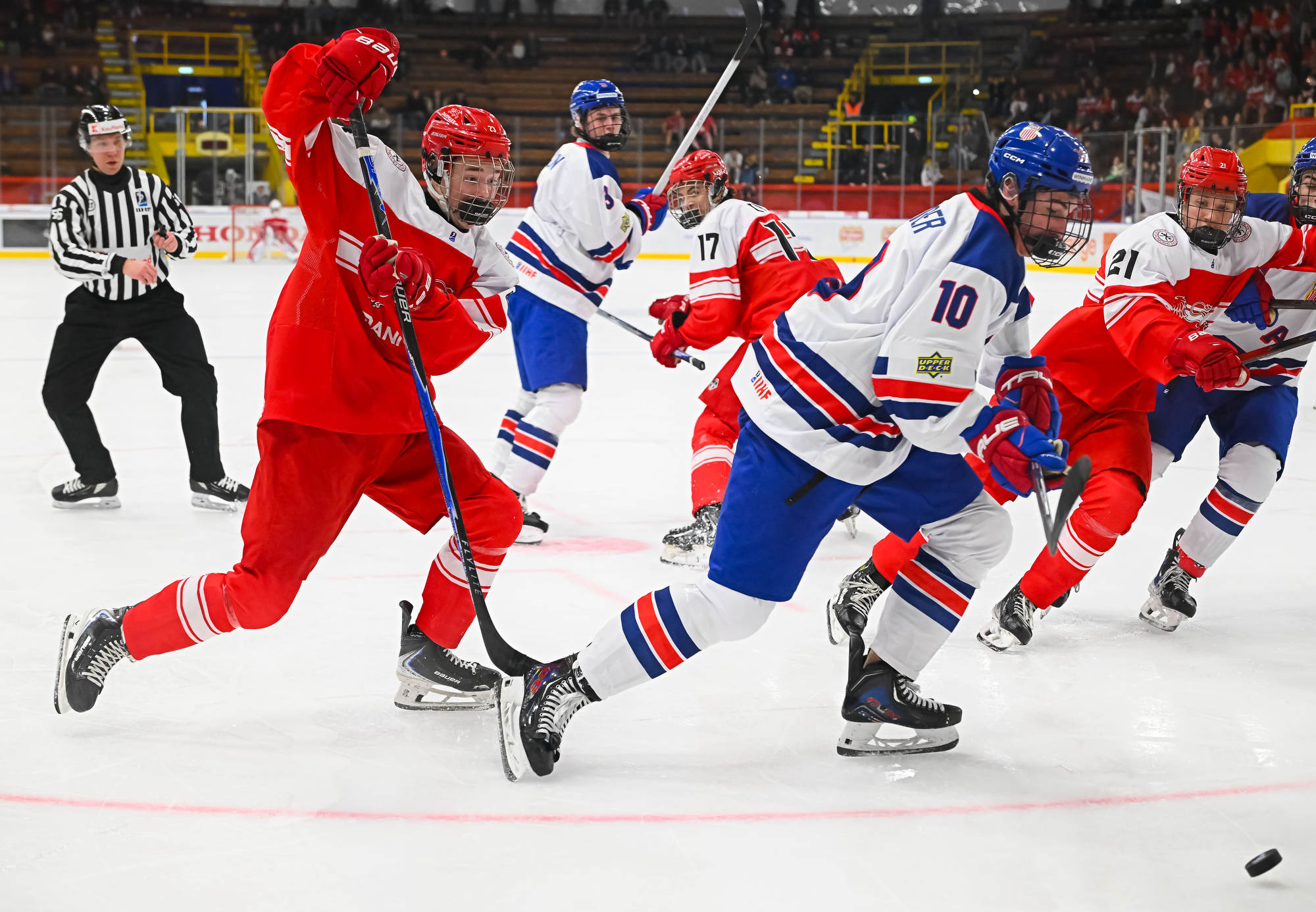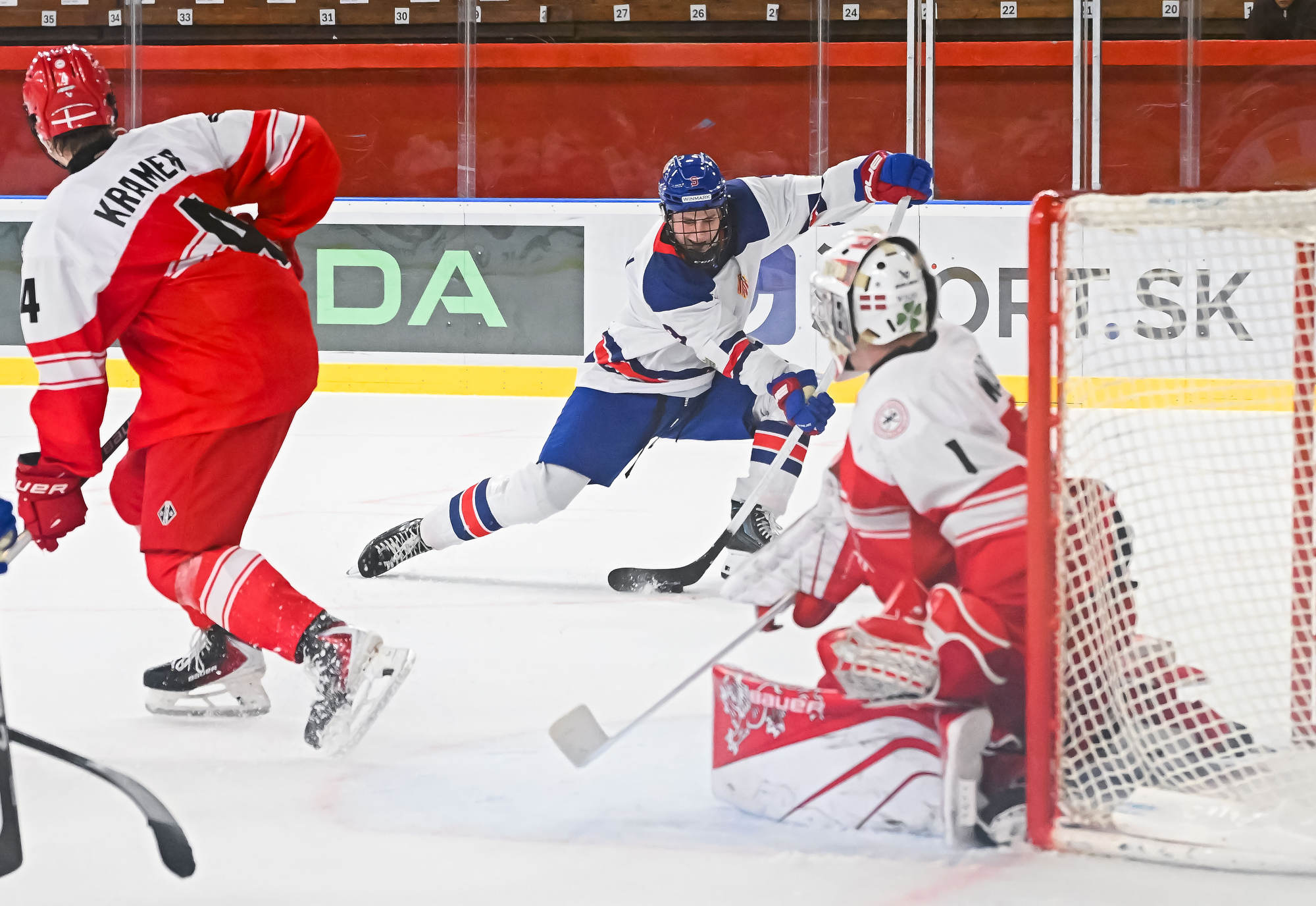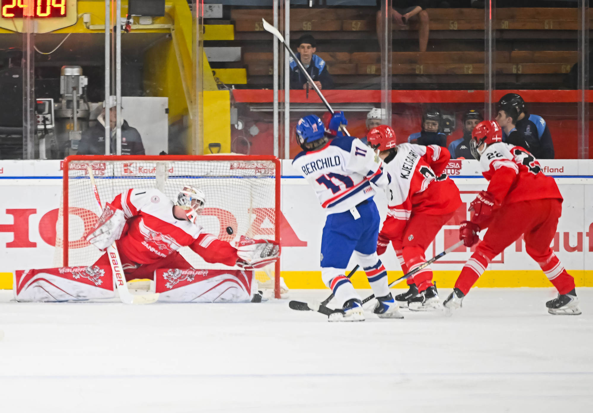 Early in the second period, there was a wild flurry of action around the Danish net, but Wilde kept the puck out.