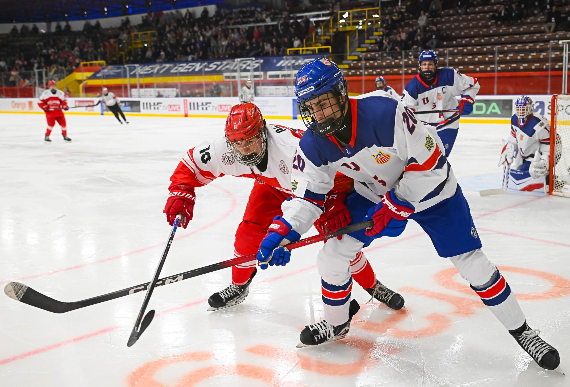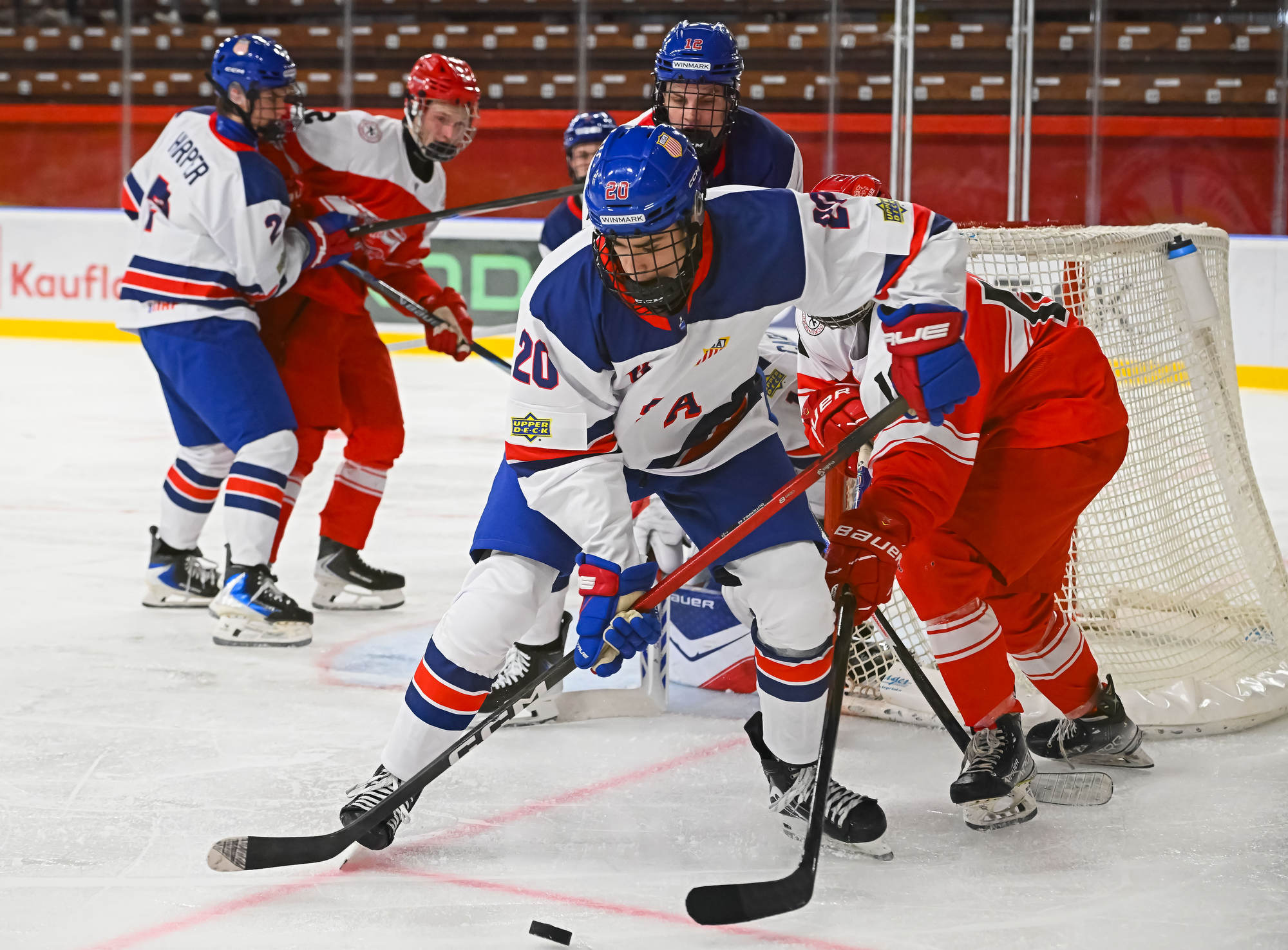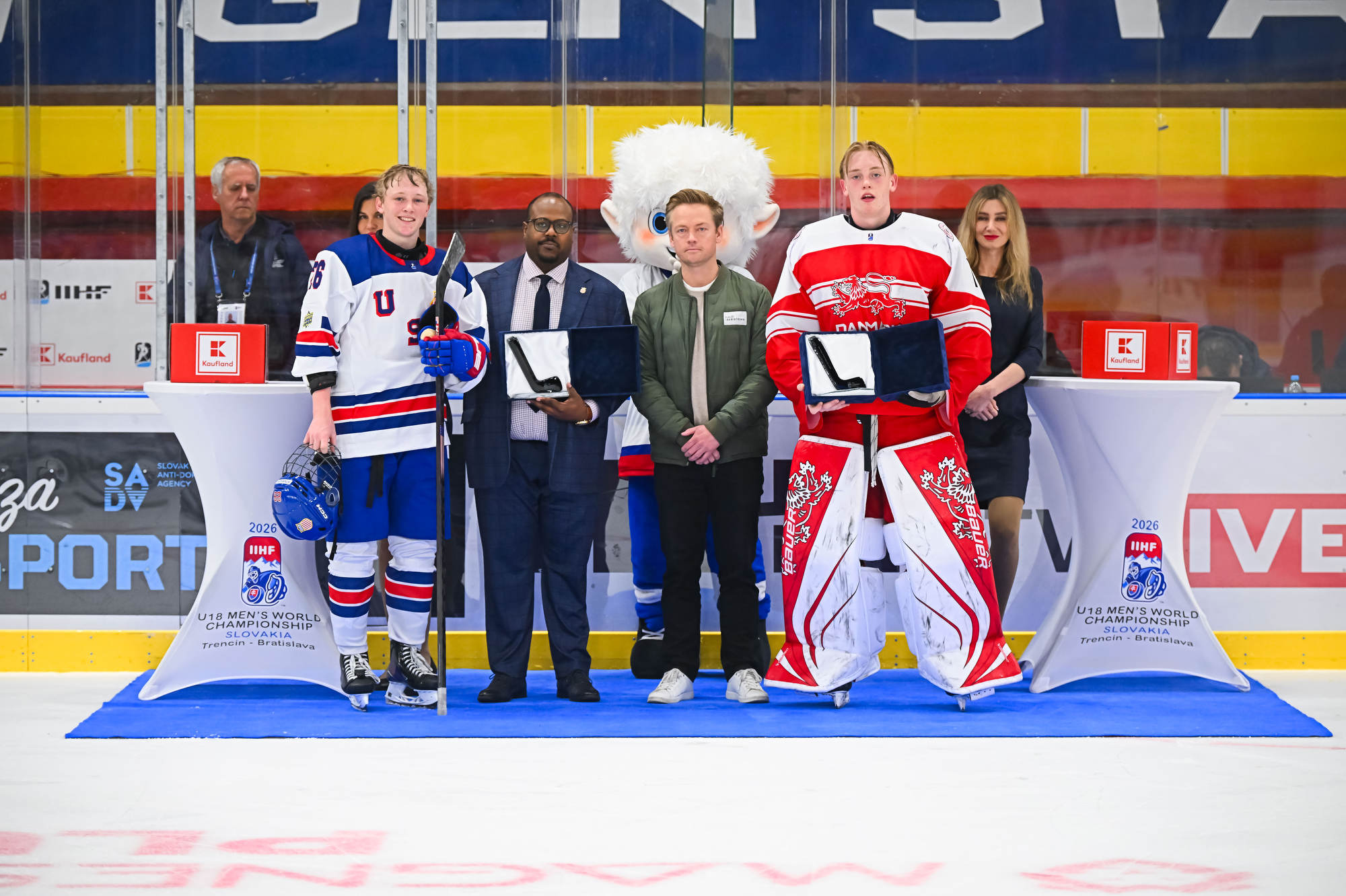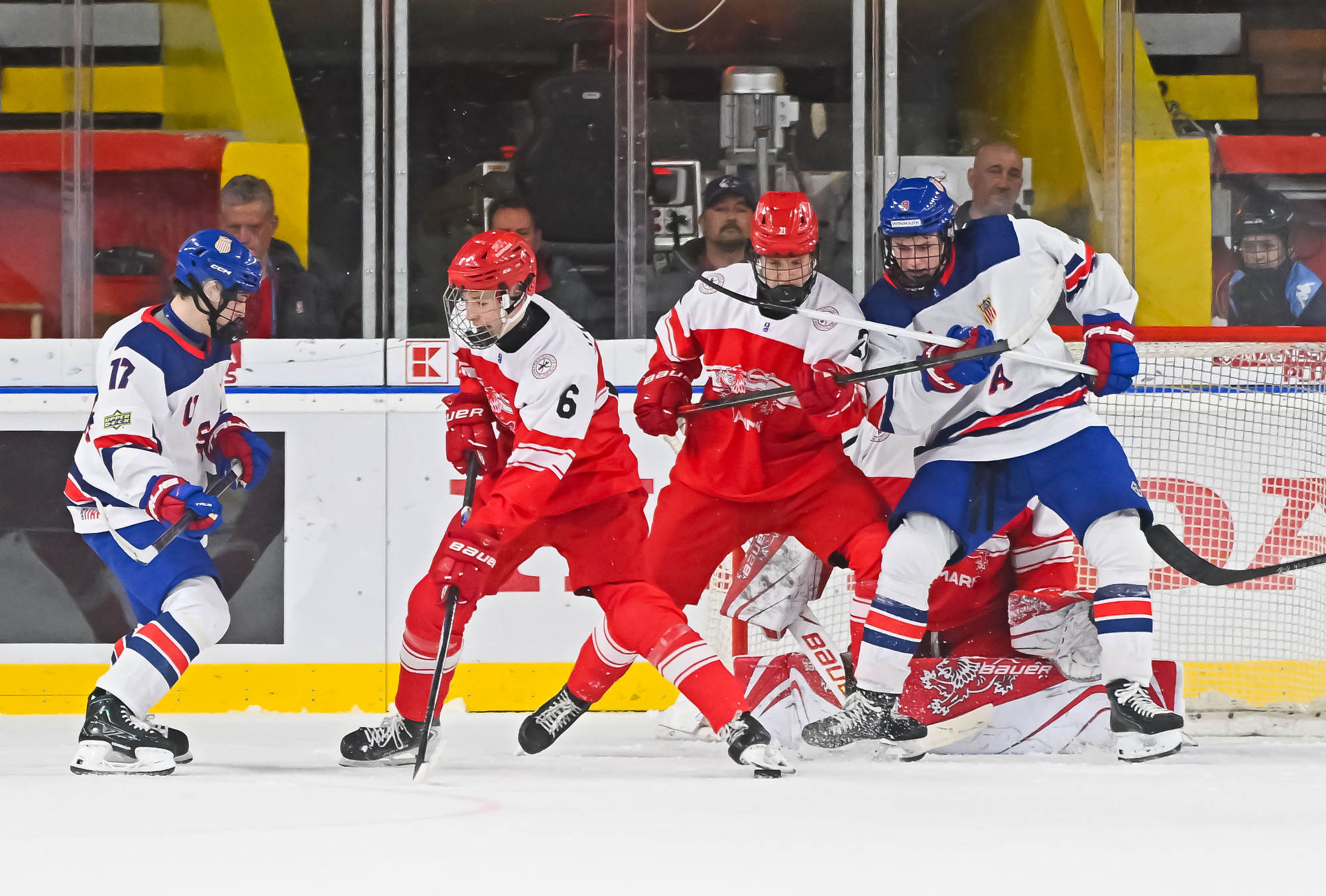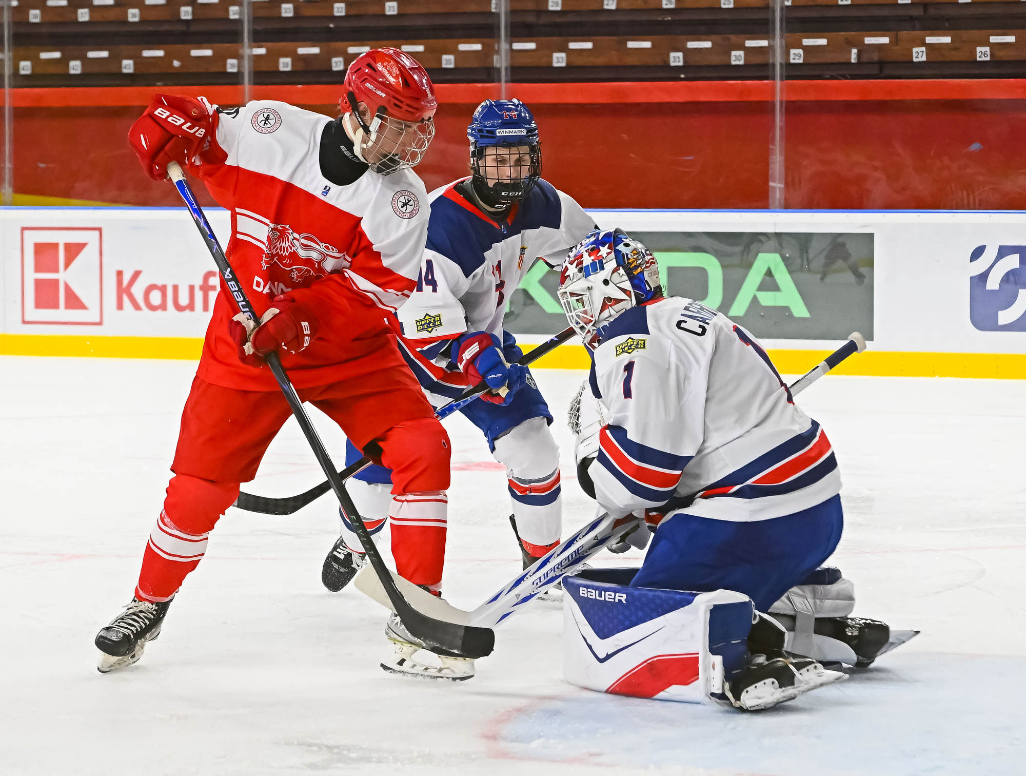 The Americans again held a decisive edge in play in the third period, outshooting the Danes 19-1. Wilde made several more great saves, but the 2-0 goal finally came on a lucky bounce. On the power play, Victor Plante’s centring pass went off the skate of Beuker and in with 3:17 to play.