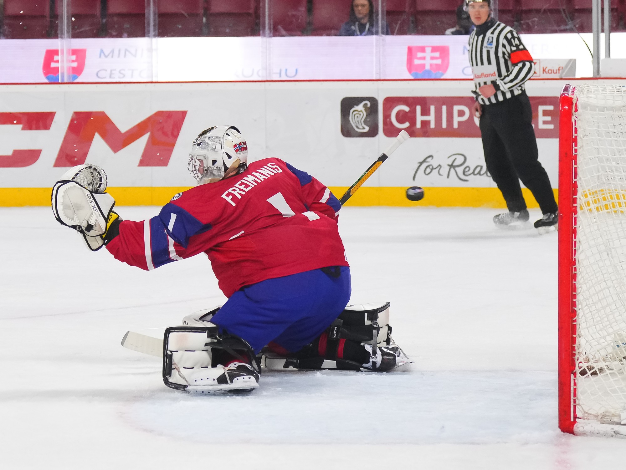 Then, after Olivers Freimanis took over in the Norway net, Zhilkin circled around the zone to complete his hat-trick on 37:31.