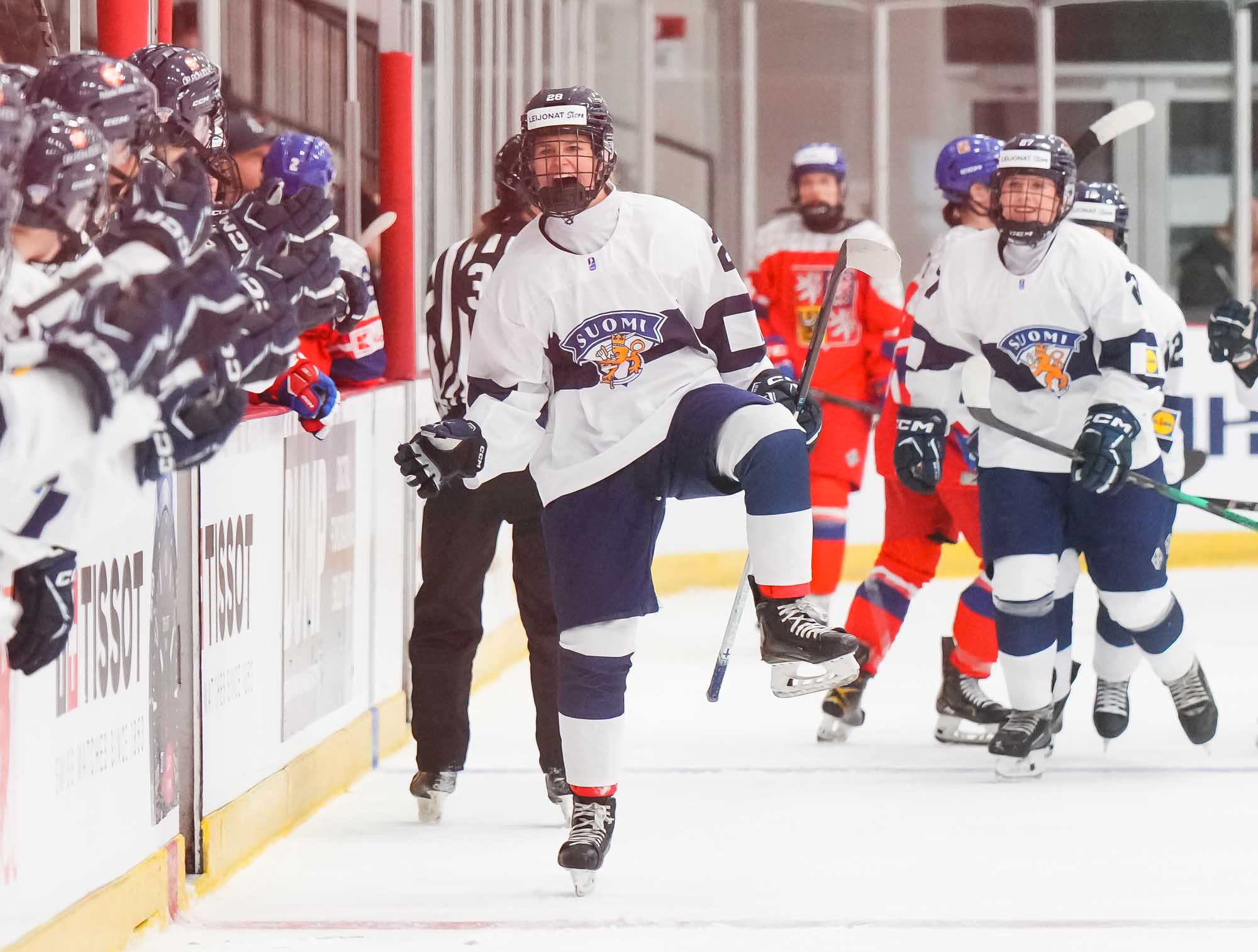 Tereza Gildainova and Adele Mynarikova scored twice for the Czechs and five other players chipped in as the bronze medalists from 2025 joined the defending silver medalists from the United States at the top of the Group B standings. Tinja Tapani scored the only goal for the Finns, and defender Neea Ketola was named Finland's best player of the game.