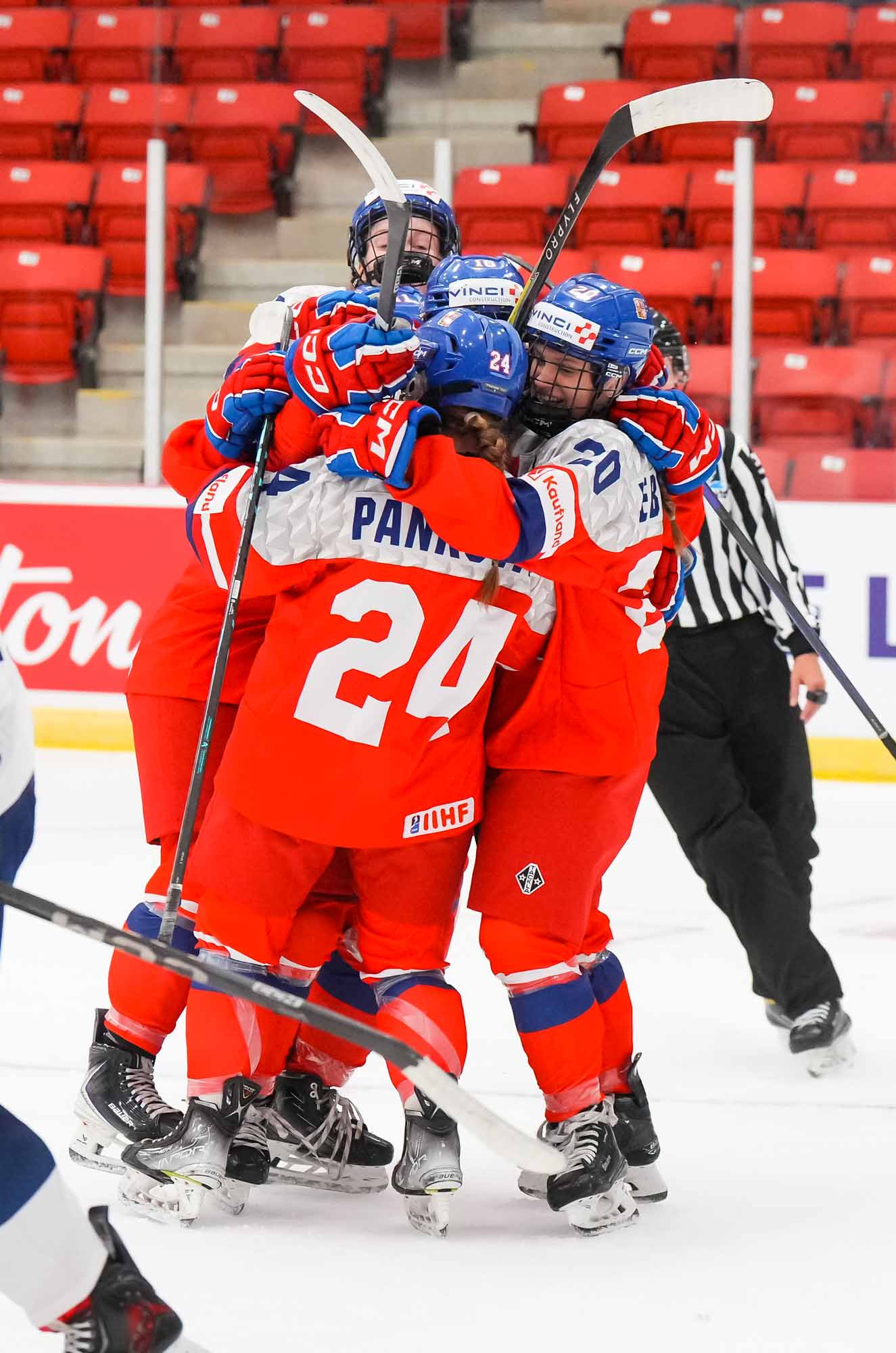 But the lead didn’t hold up for long. With Siiri Friederksen boxed for holding, Lucie Sindelarova set up behind the goal line, then fed Adela Pankova for a one-timer in the slot to tie the game.