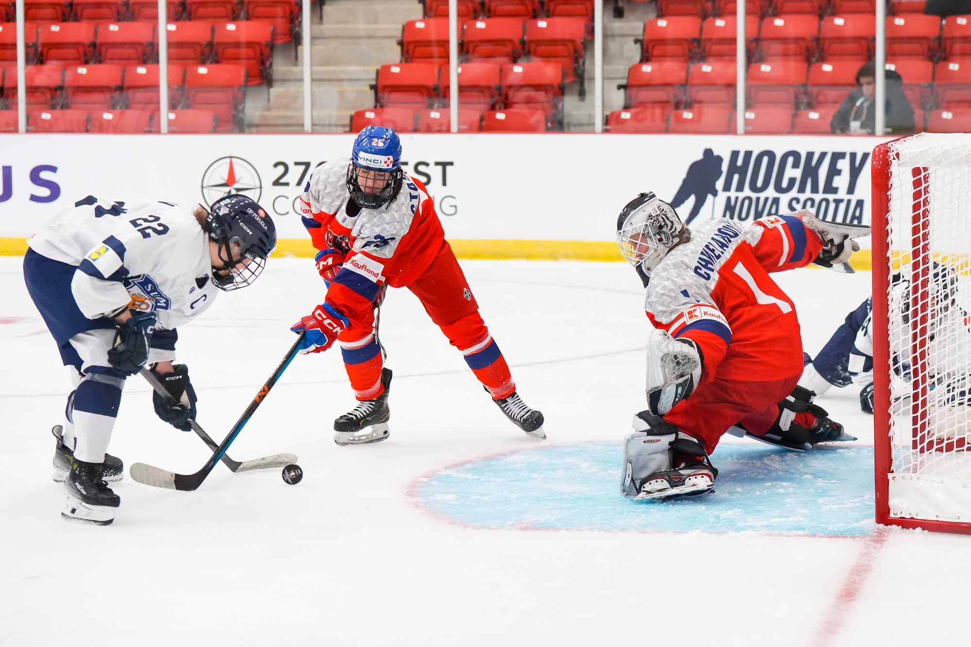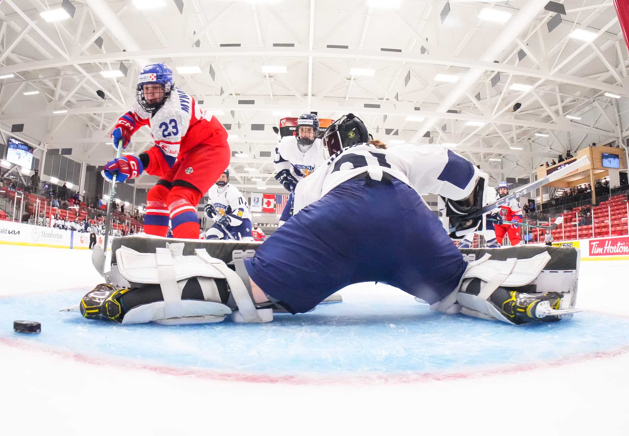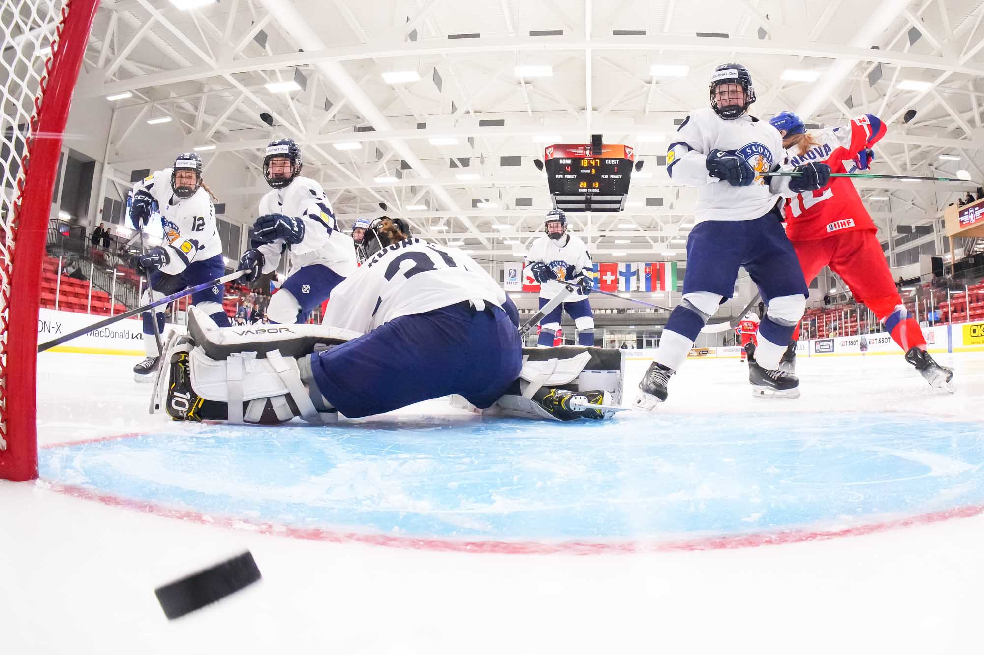In net, fifteen-year-old Lili Chmelarova earned the win in her tournament debut, making 18 saves and earning a cheer from her teammates when she was named Czechia’s best player. Finland’s Eerika Kujala, 16, also played her first game at this level, making 37 saves in 56:08 of action.