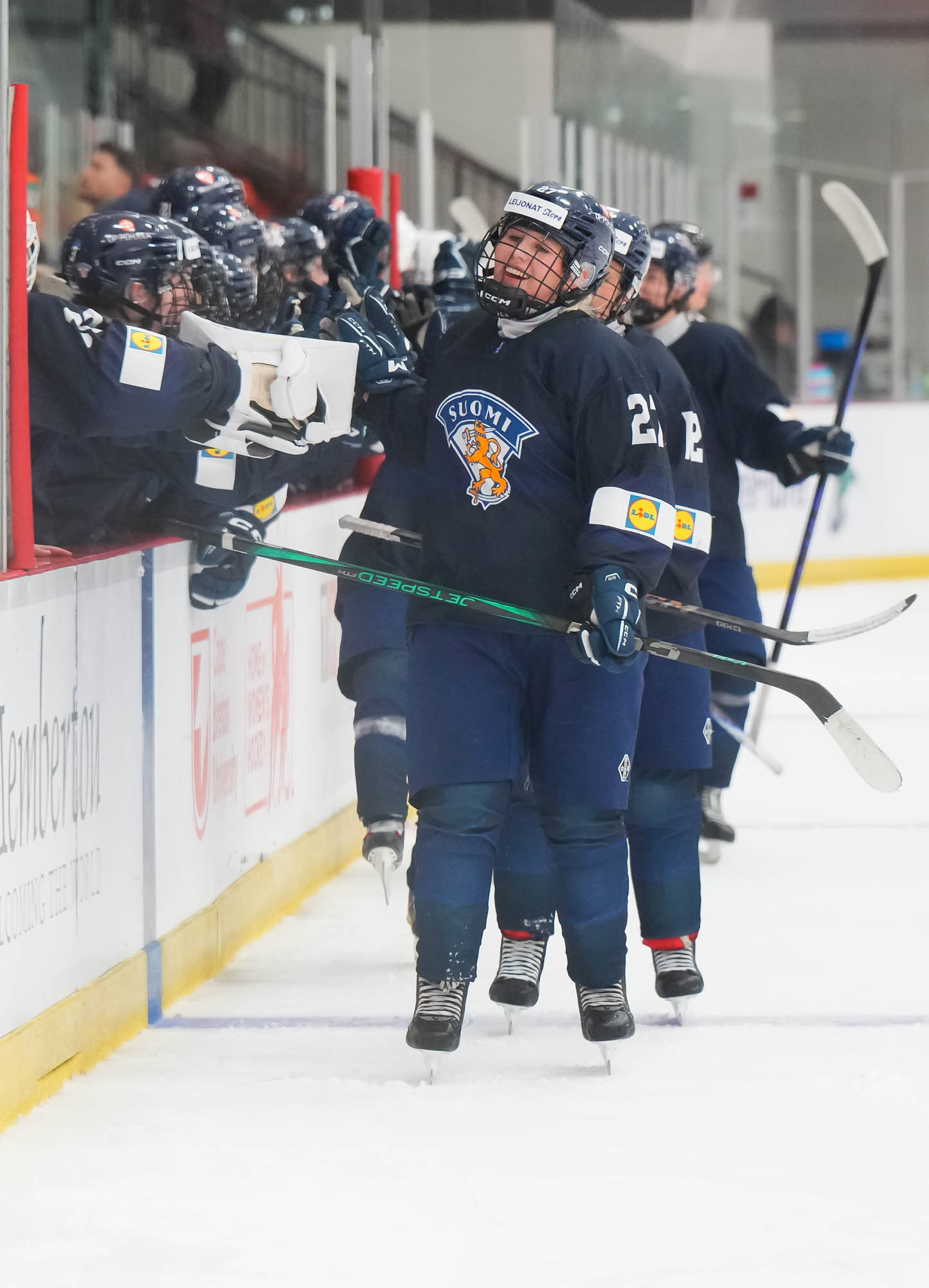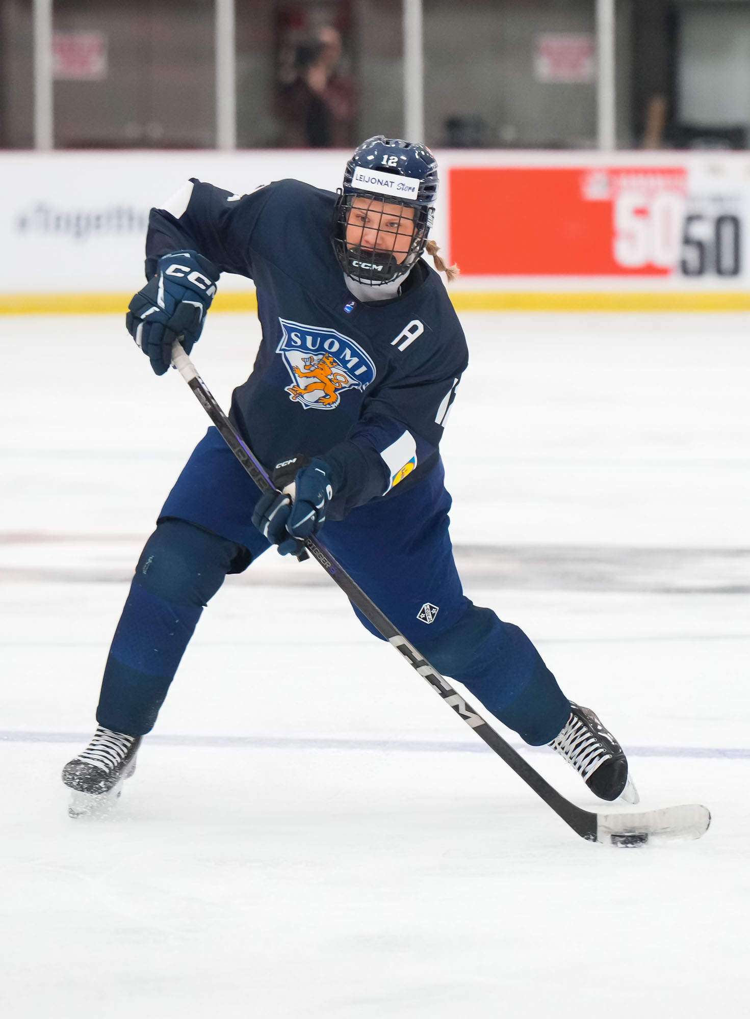 The Finns started the second period with a redoubled effort. That paid off just 90 seconds in, when captain Senja Siivonen collected a weak clearing attempt by Sumegova and fed the goal-scorer, Tapani. With the margin narrowed to one, both teams played hard for most of the period before Hirjakova restored the two-goal cushion on the power play with 3:21 left in the middle frame.