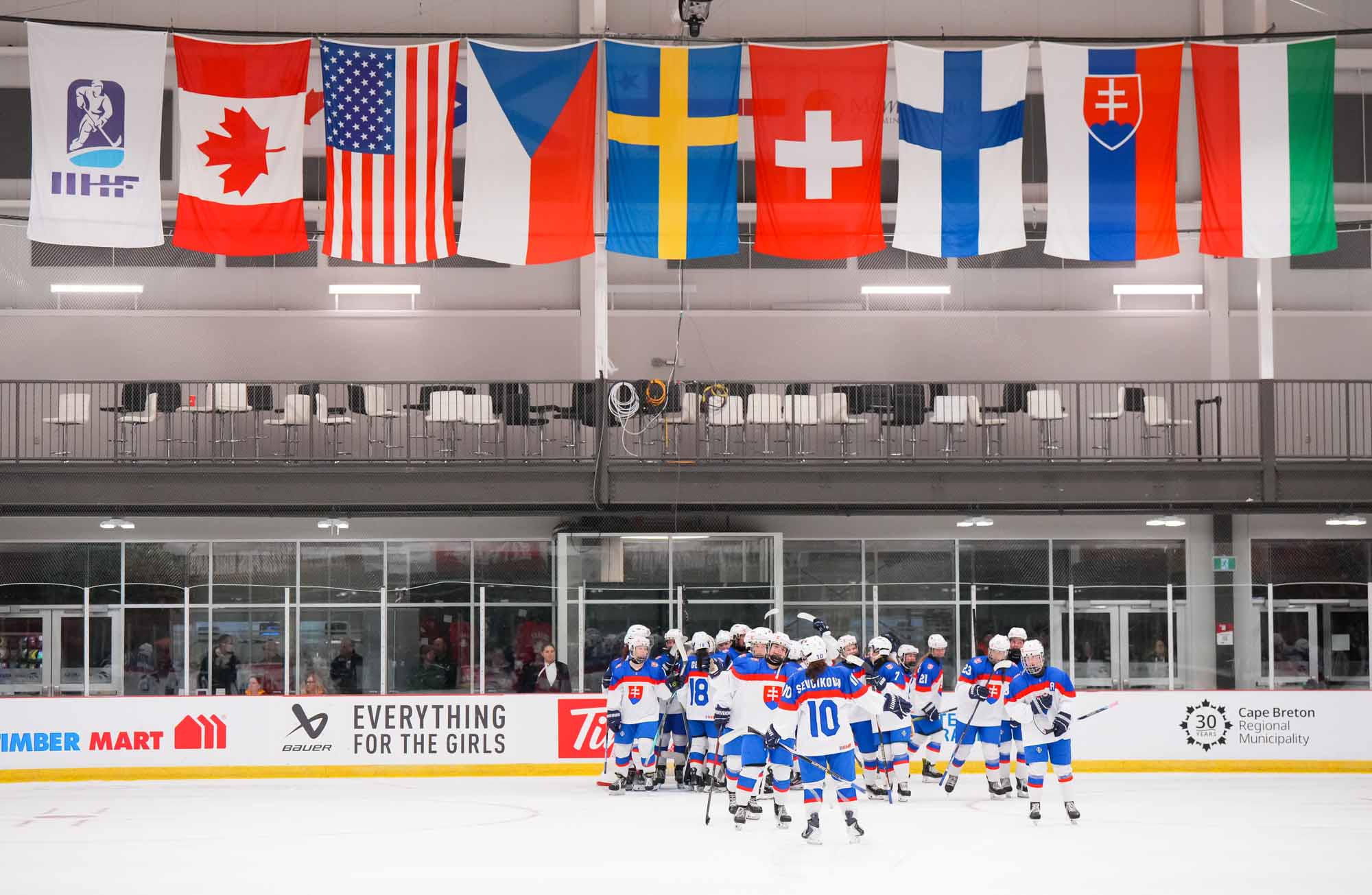 After the Slovak national anthem played at the game's conclusion, the players formed a line in front of their small-but-mighty cheering section that had been banging their drums and sounding their horns from start to finish in the team's first two games. After acknowledging their supporters, the players dove as one toward the boards, bringing their fans into their historic celebration.