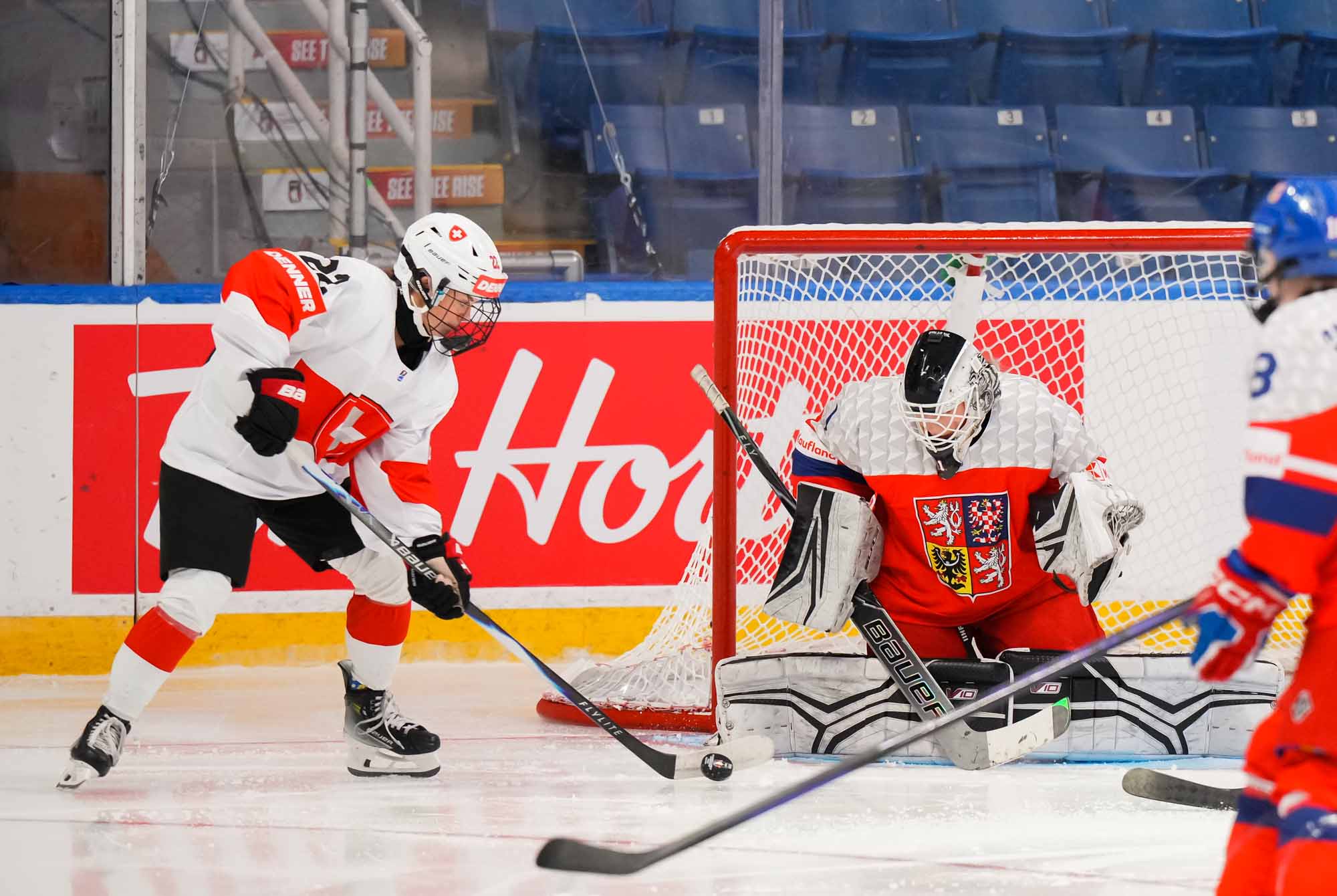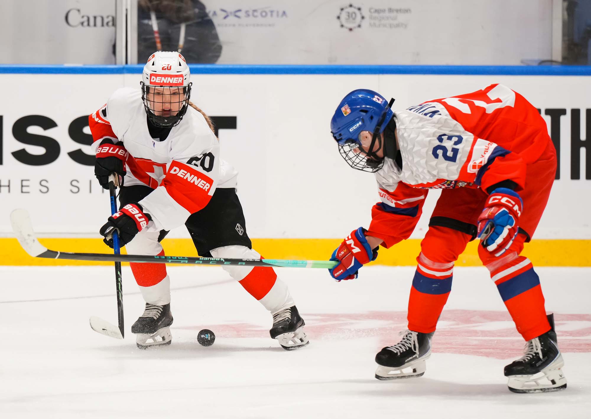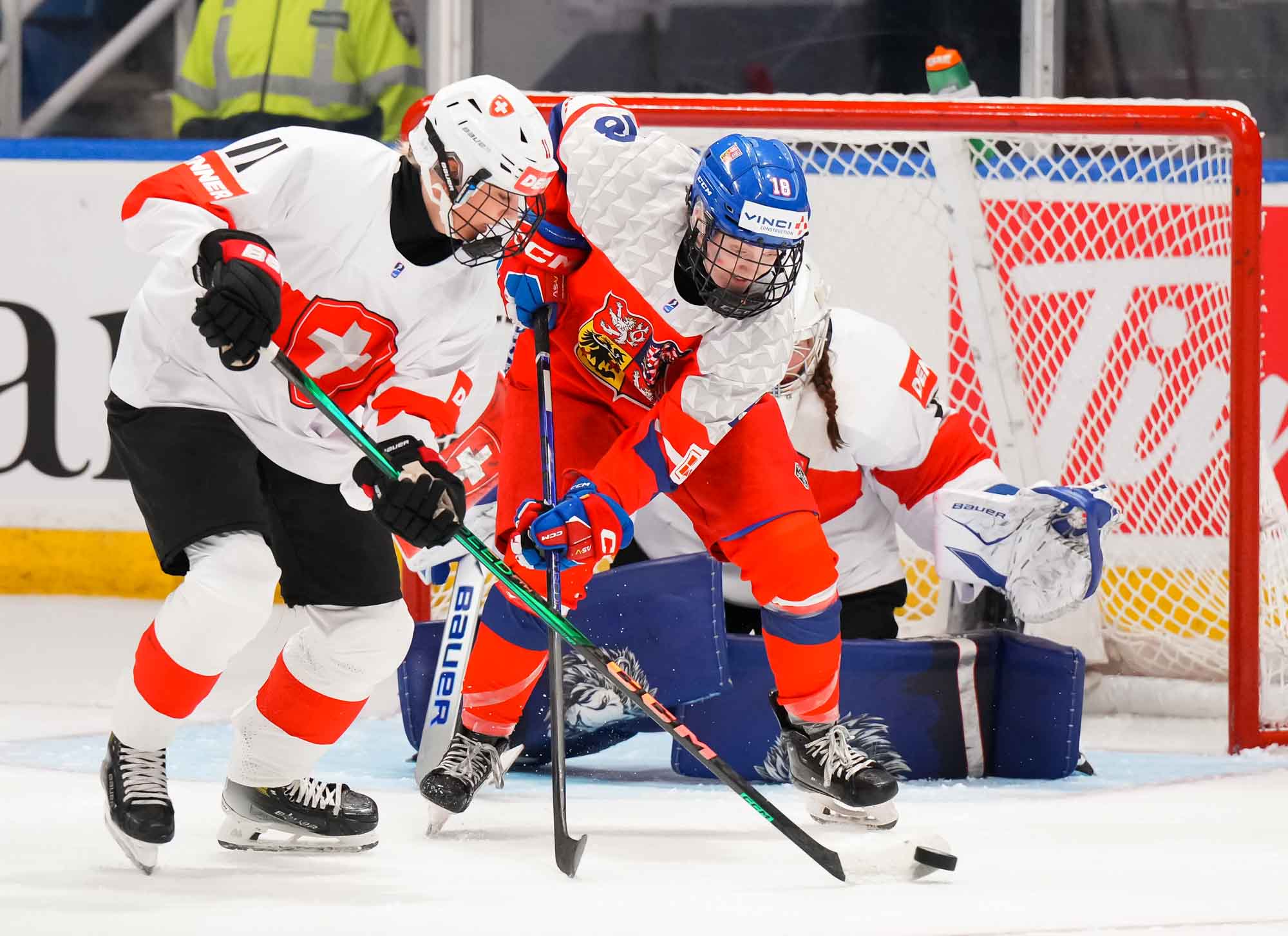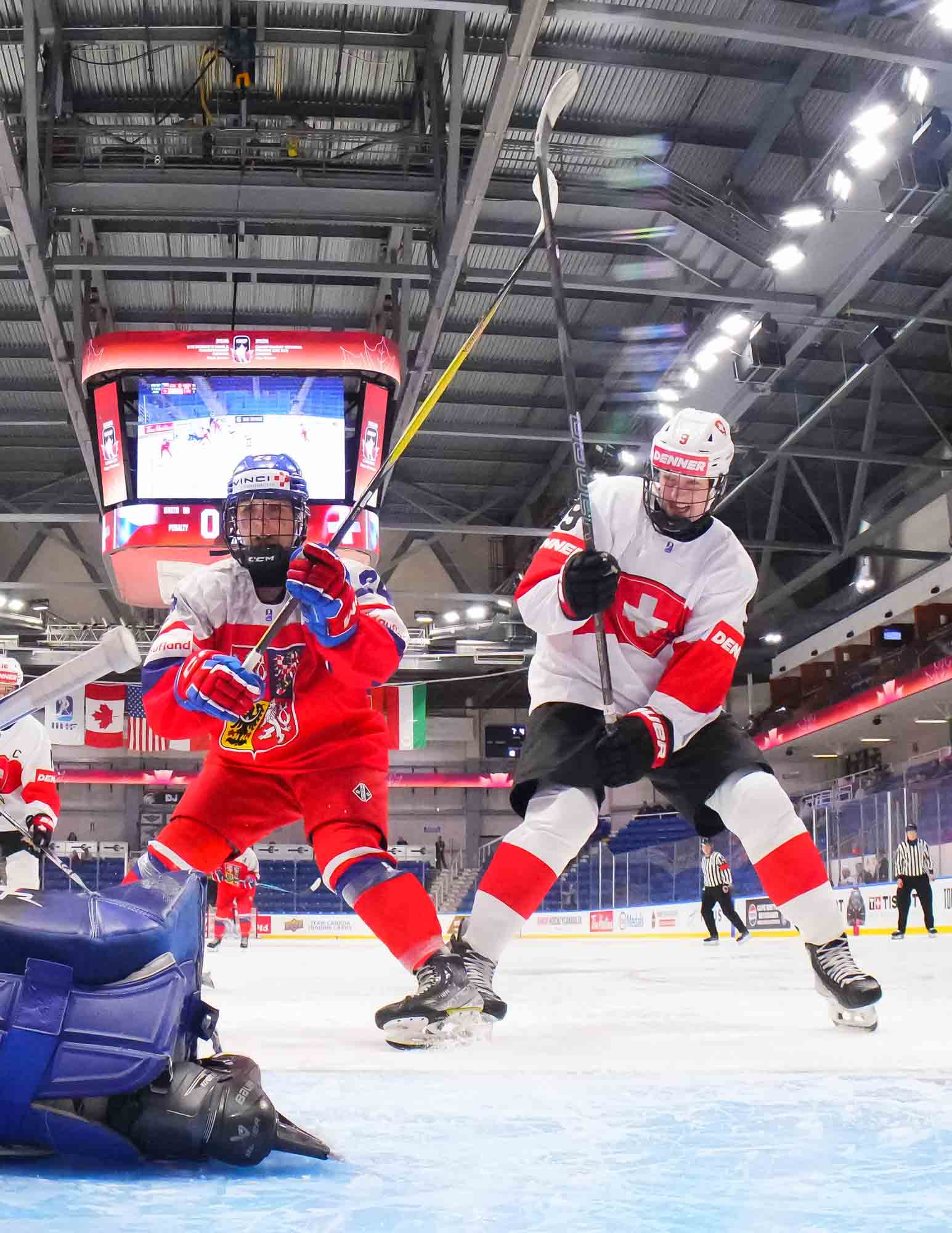 Later in the period, Czech Adela Krenkova slid the puck through the crease and out the other side, a dangerous moment but ultimately harmless. The Swiss, however, finally connected at 13:40 when Jill Baker got the puck at the top of the circle, took a look, and wired a hard shot over the glove of Lili Chmelarova for the opening goal.