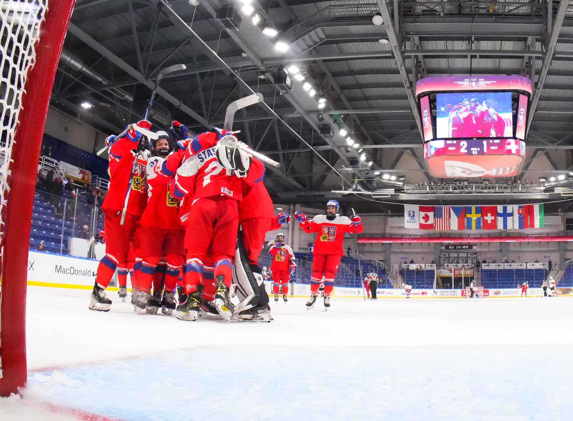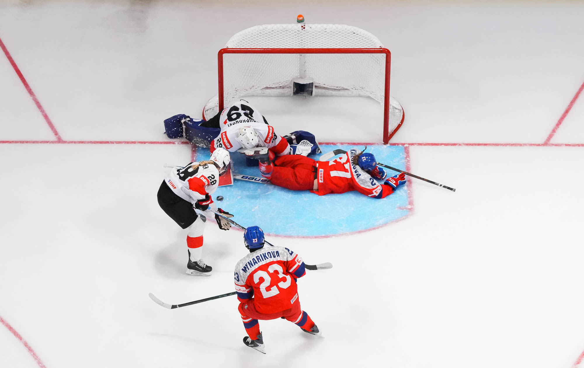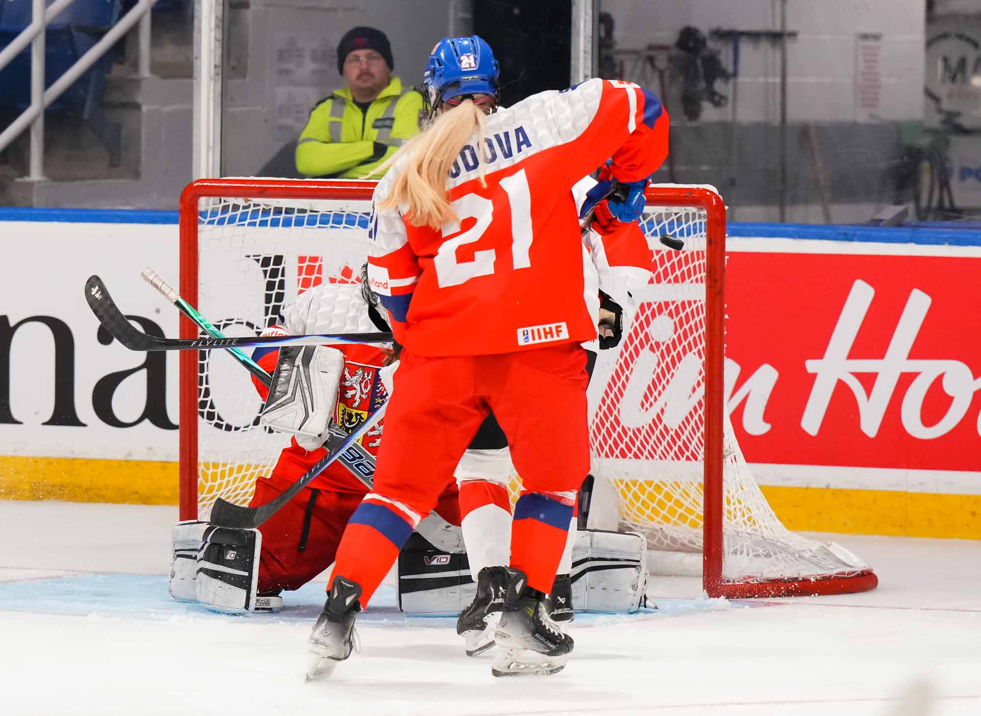 Five minutes later, the Czechs thought they had tied the game. Gildainova cut to the middle and backhanded a shot off the crossbar. As she raised her hands in celebration, the goal horn sounded, but the puck bounced behind Schrupkowski and stayed out.