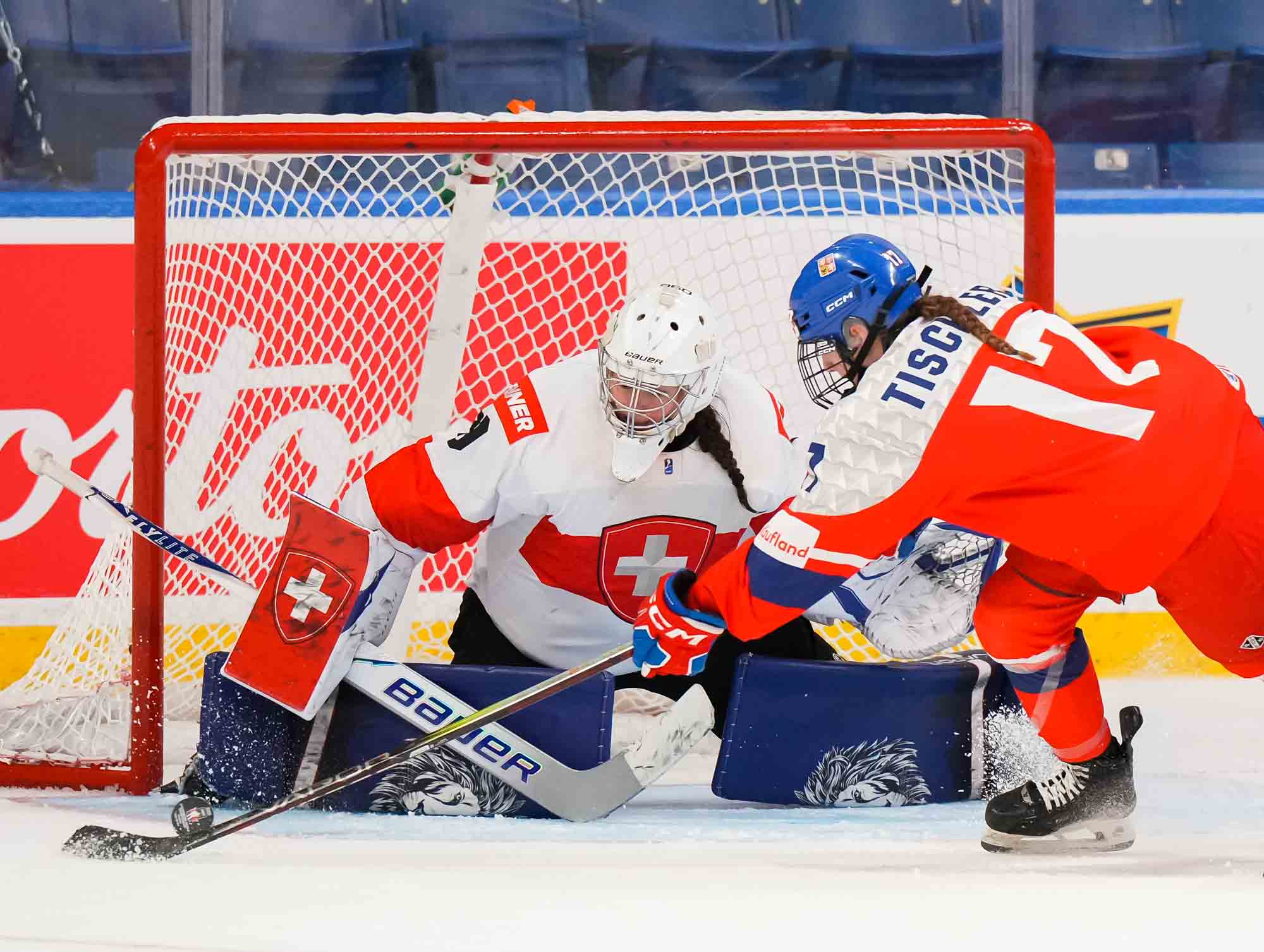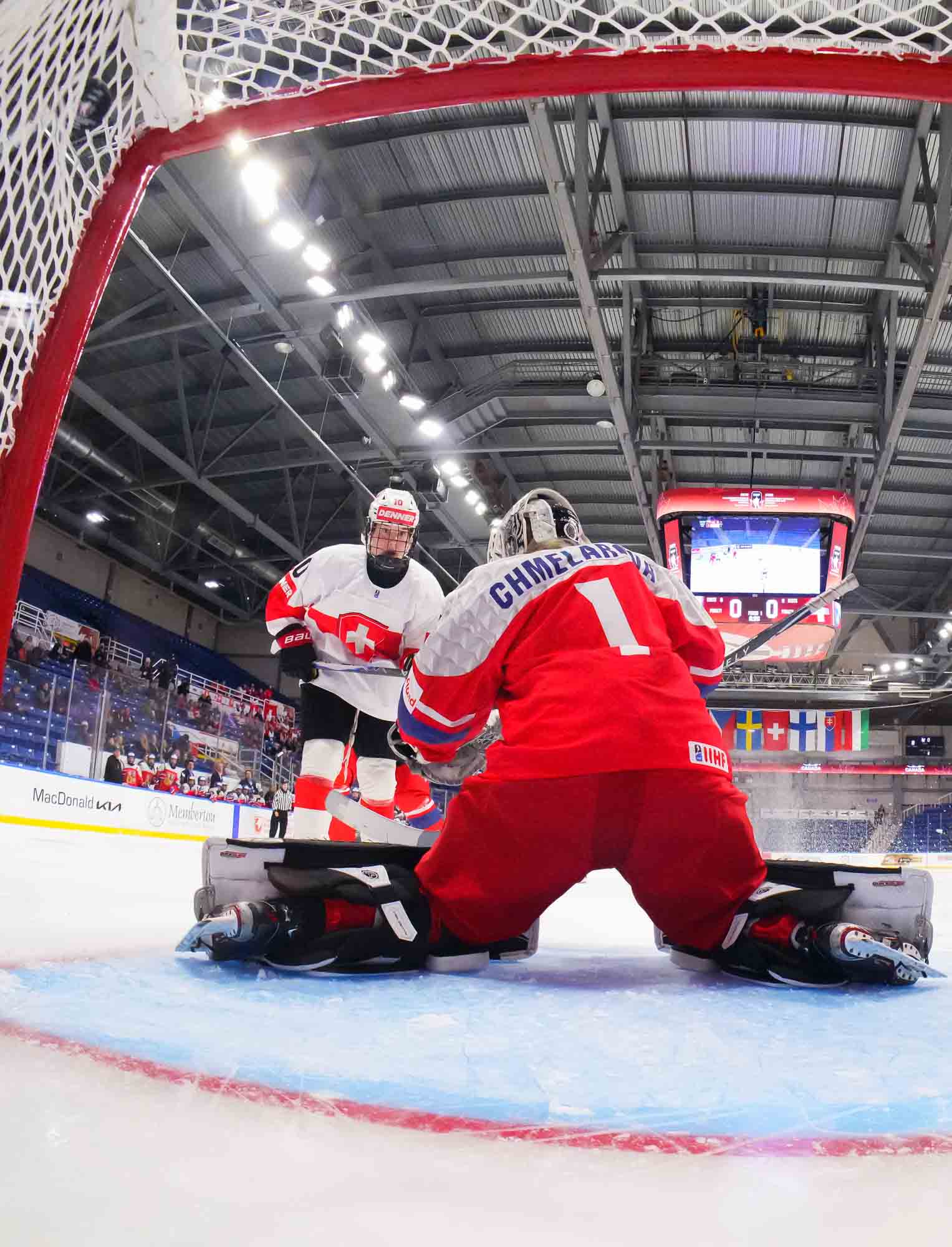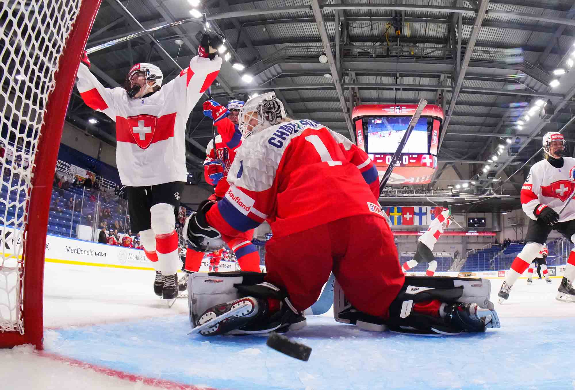 Captain Norina Muller, who was the hero two nights ago against Hungary with the only two goals in a 2-0 win, almost got the Swiss on the board early. She got a clear break on goal but fired the puck high over the cage.