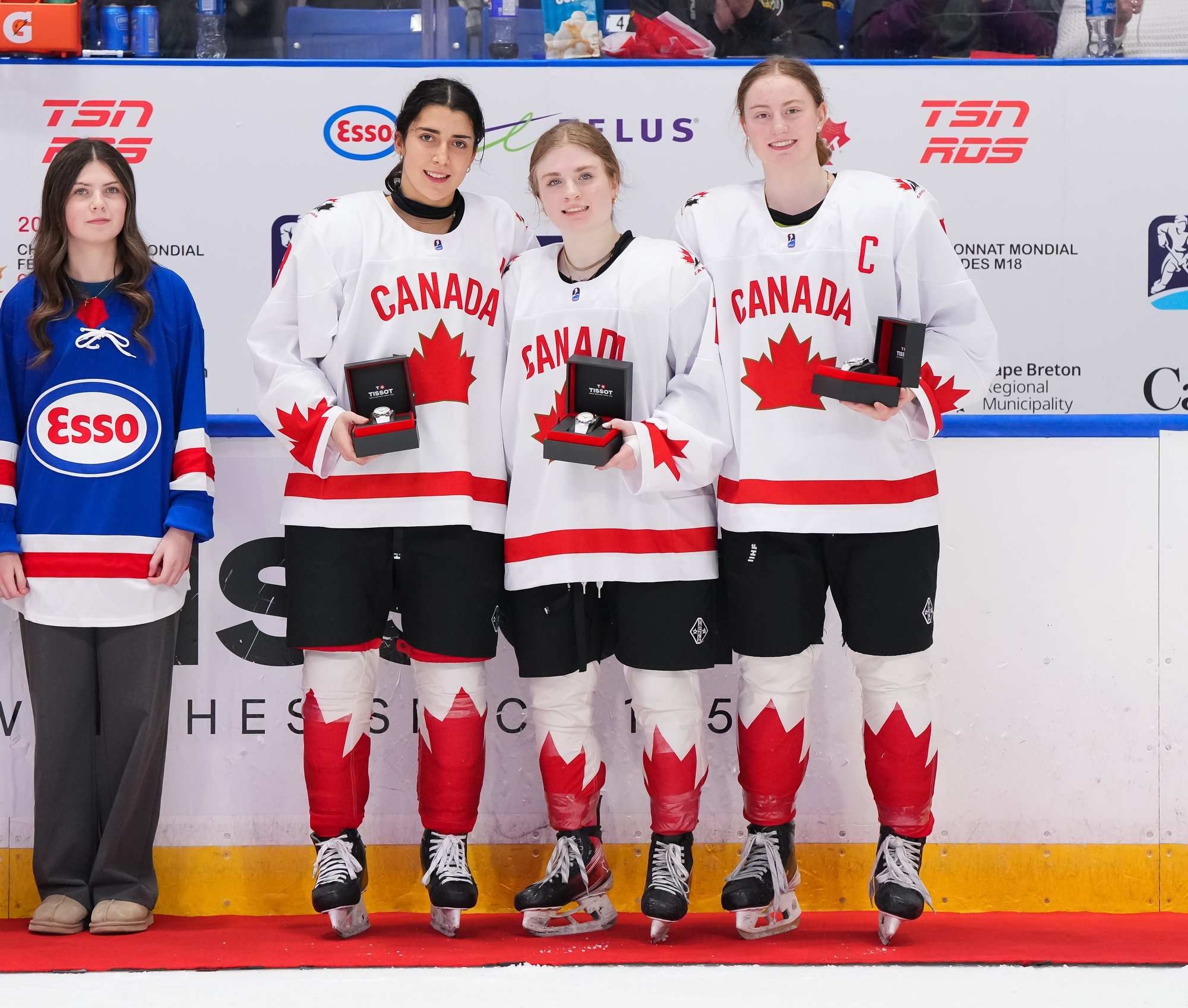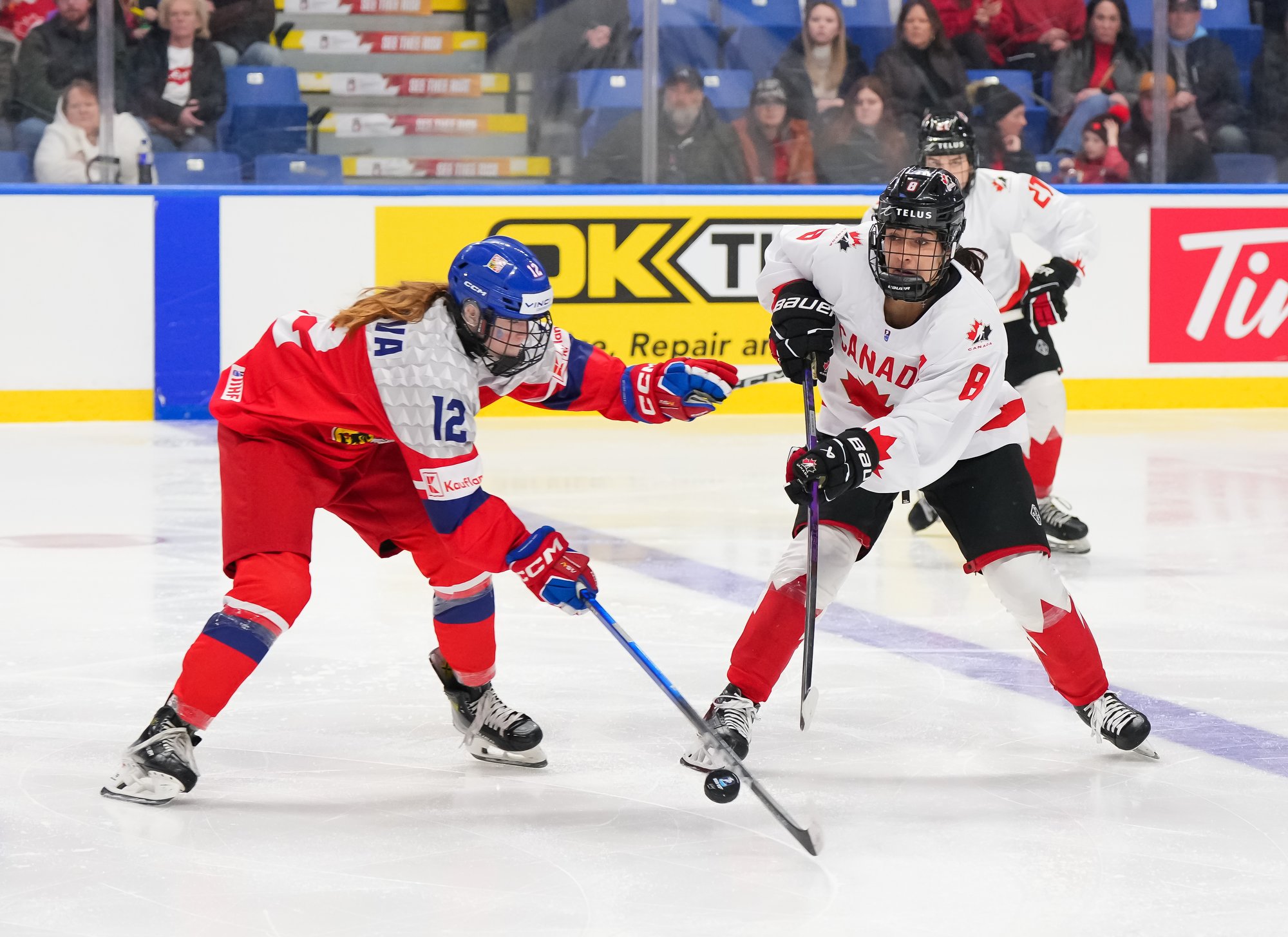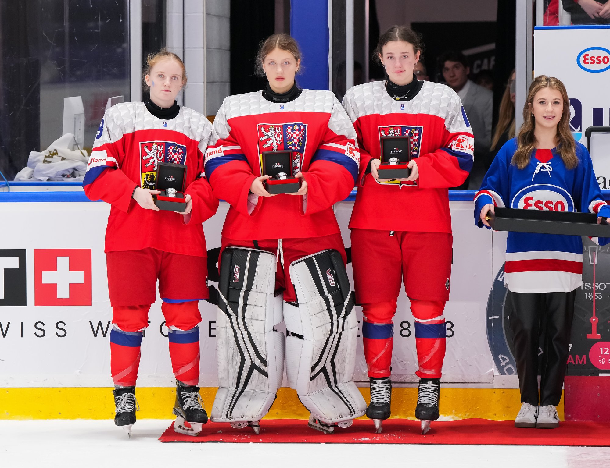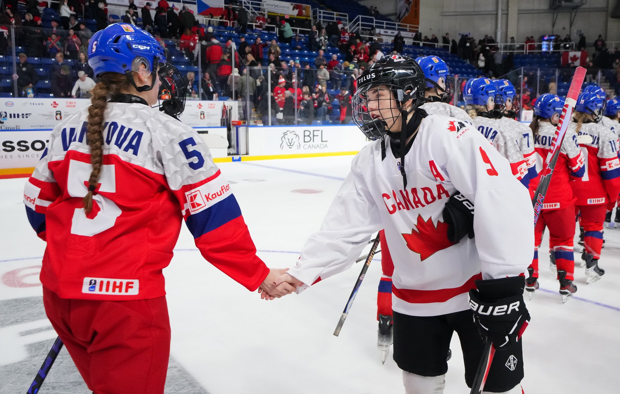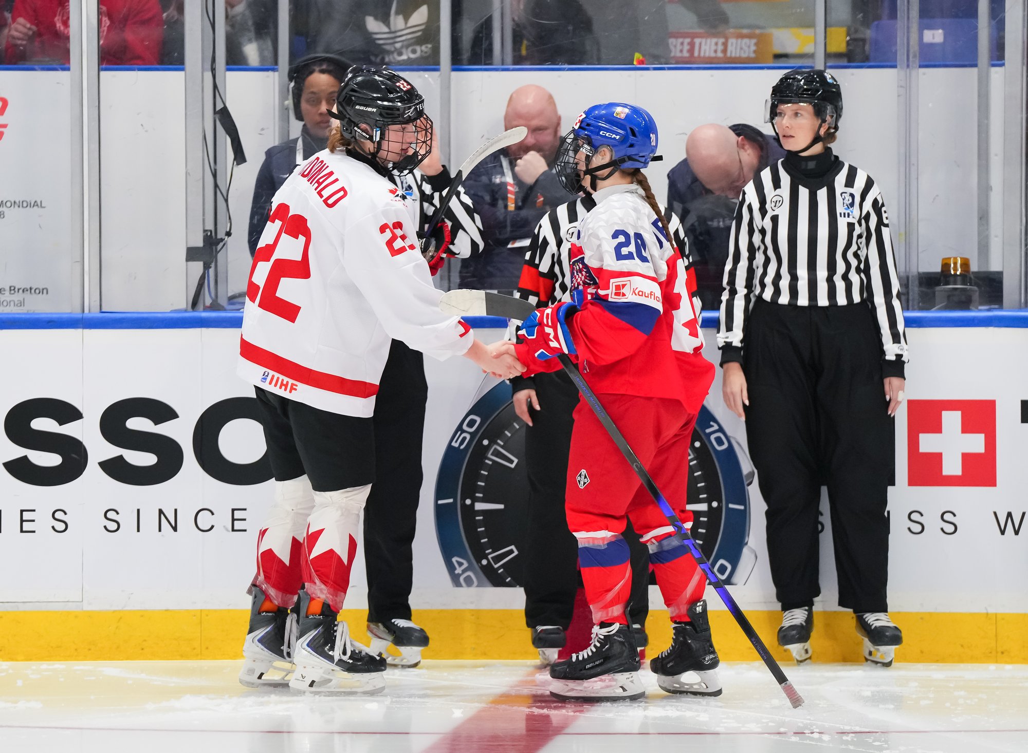 Canada's three best players in the tournament were named after Saturday's game: forwards Rosalie Tremblay, Piggott and Hayley McDonald. Czechia's best players were the goalie Chmelarova and forwards Tereza Gildainova and Johanna Tischler.