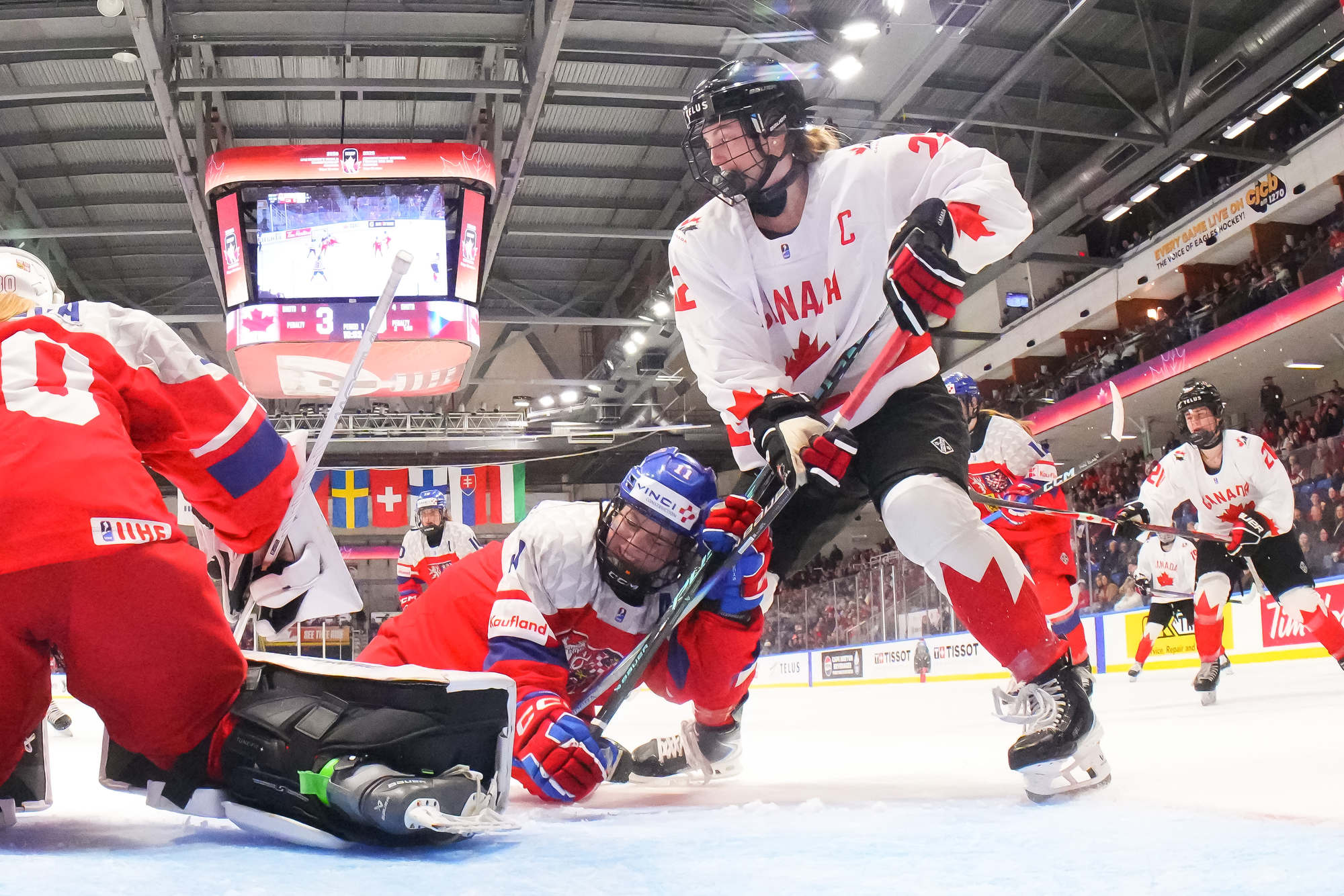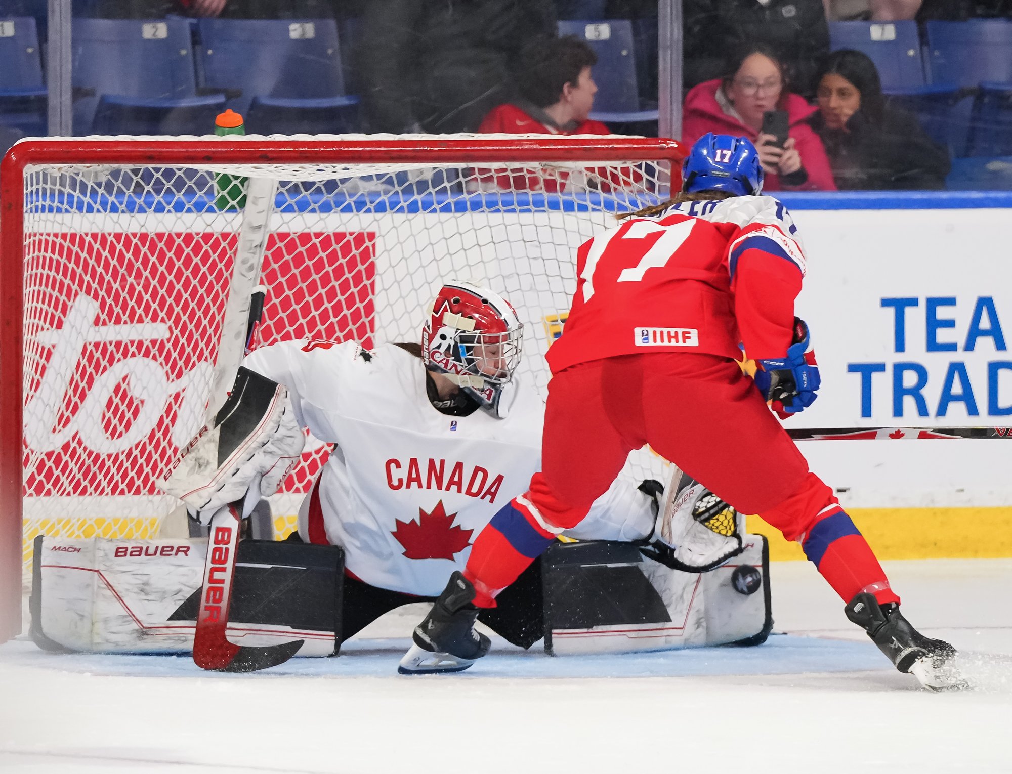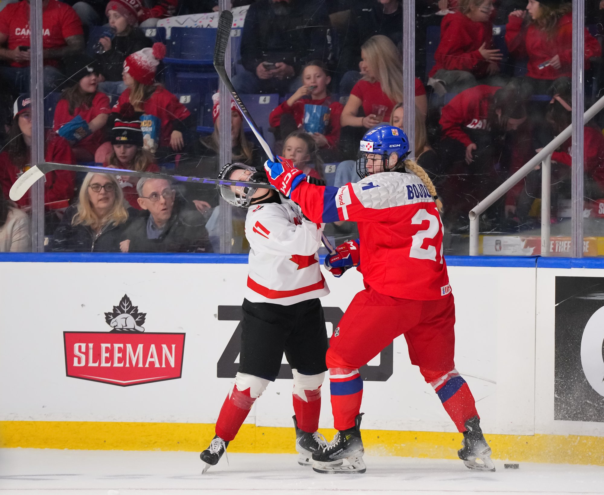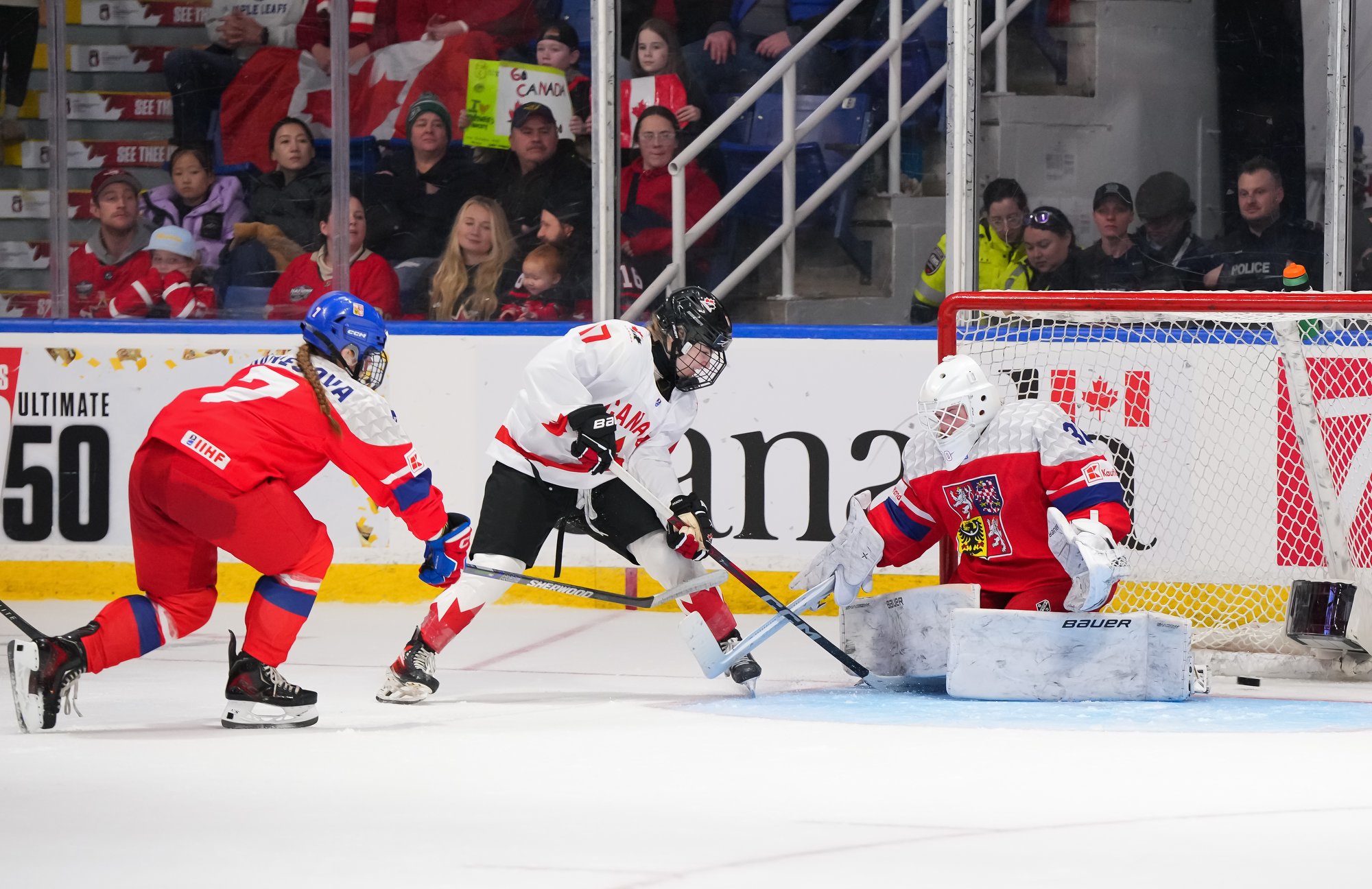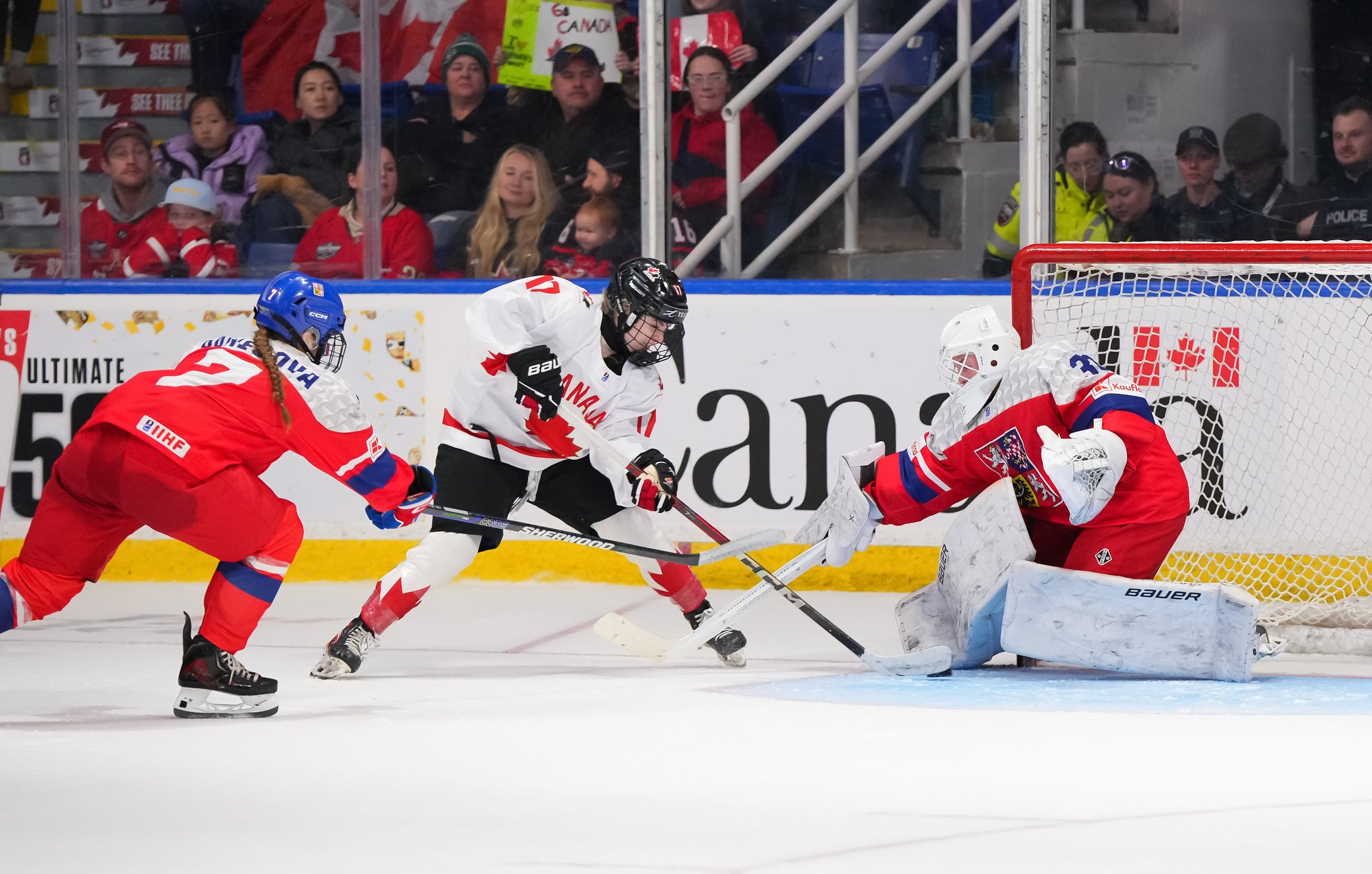 Canada’s special teams helped spark the early offense. After Sindelarova took a charging penalty just 1:24 into the first period, Maddie McCullough needed only 42 seconds with the extra-player advantage to get her team its first tally of the game.