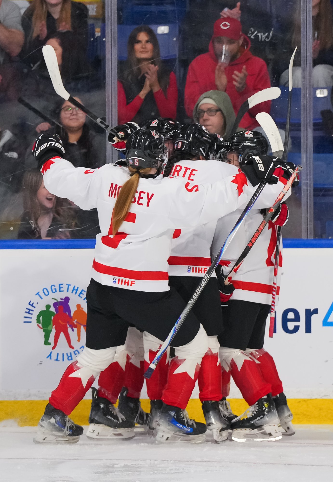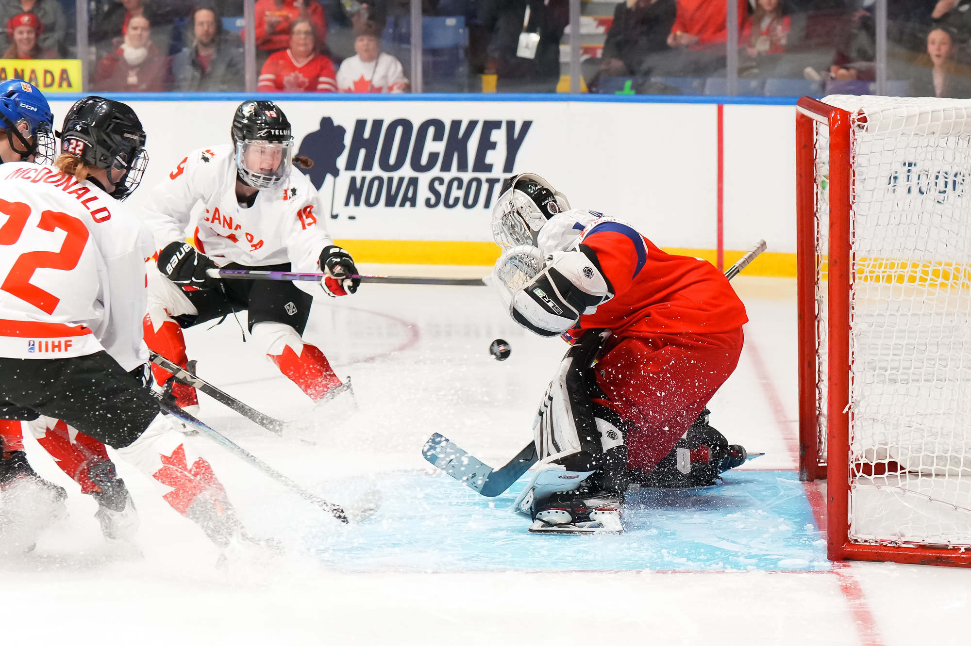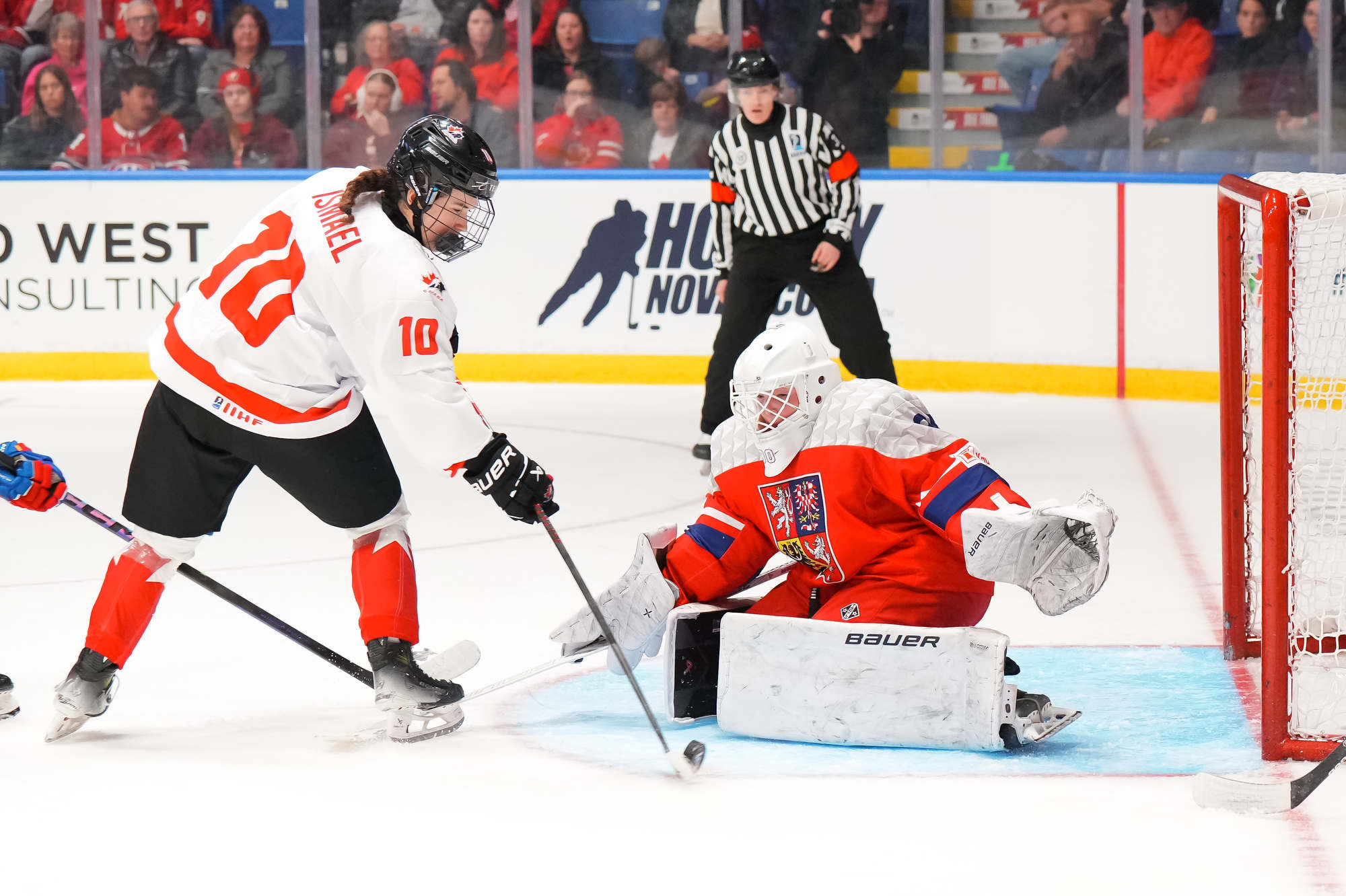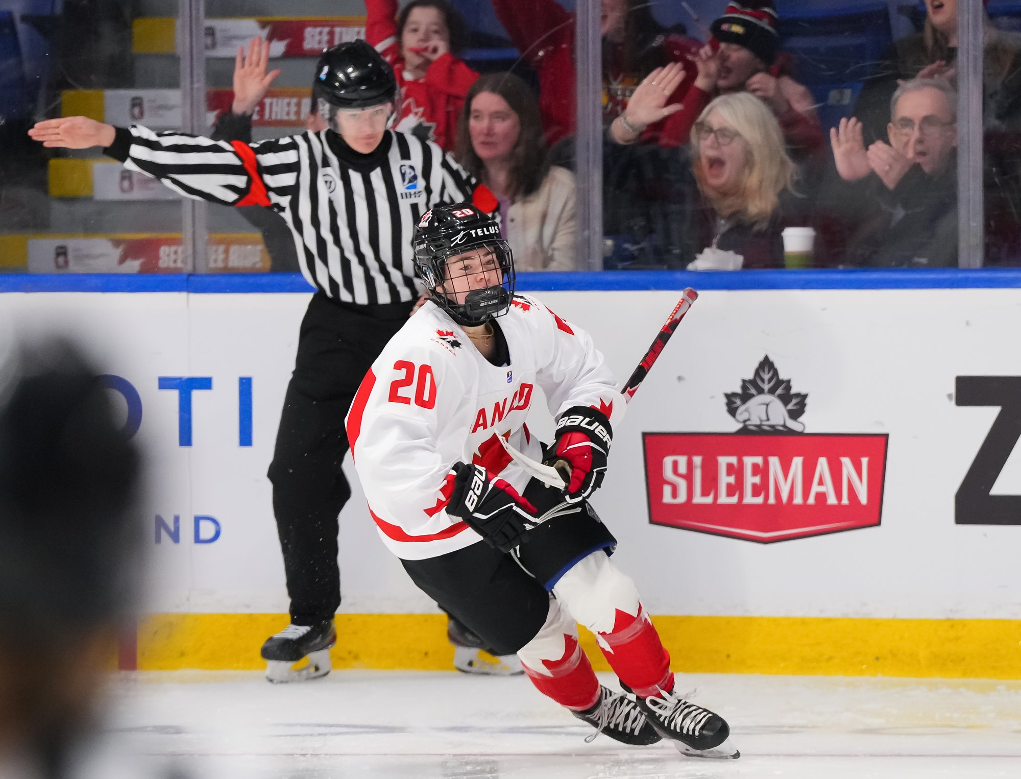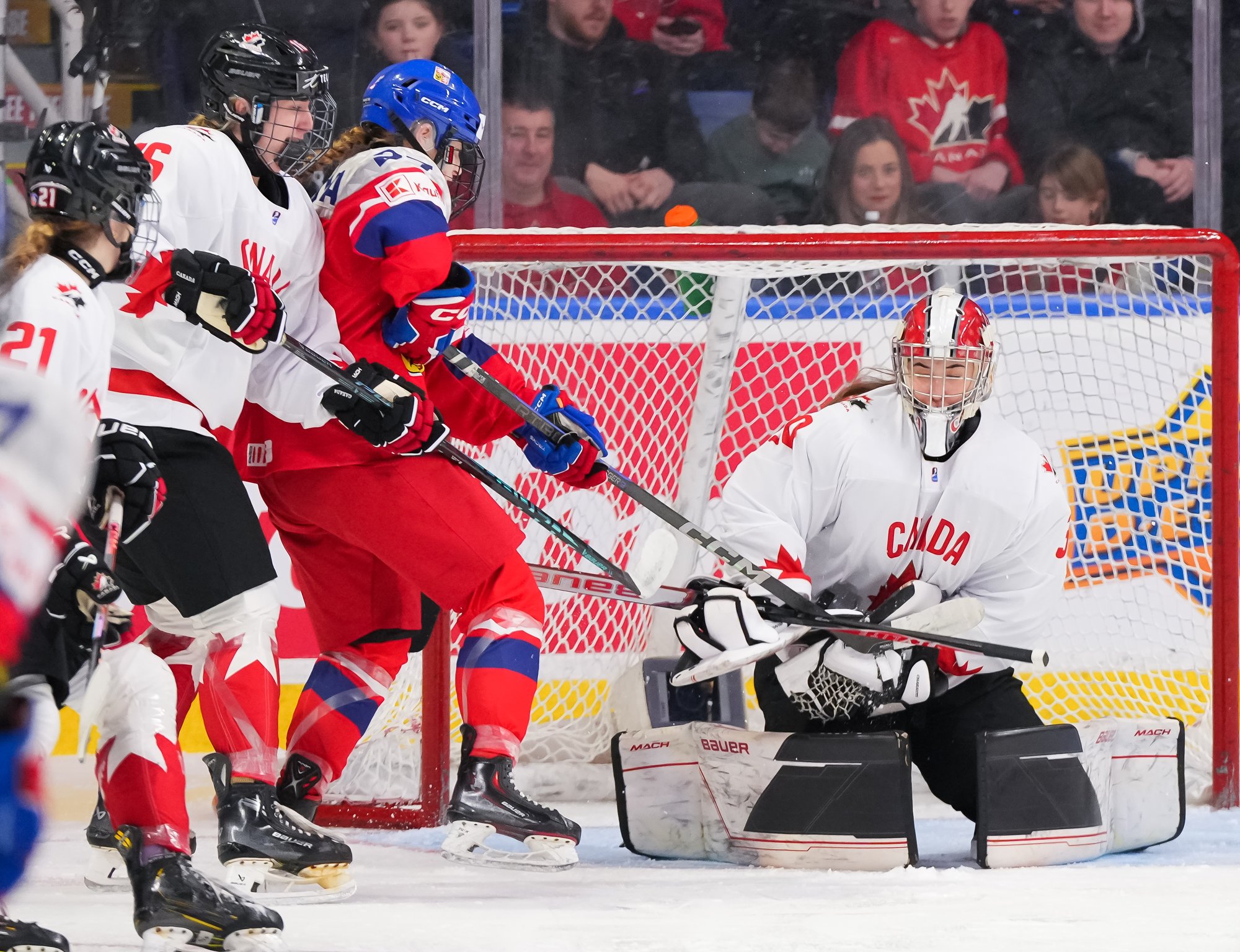 Canada’s special teams helped spark the early offense. After Sindelarova took a charging penalty just 1:24 into the first period, Maddie McCullough needed only 42 seconds with the extra-player advantage to get her team its first tally of the game.