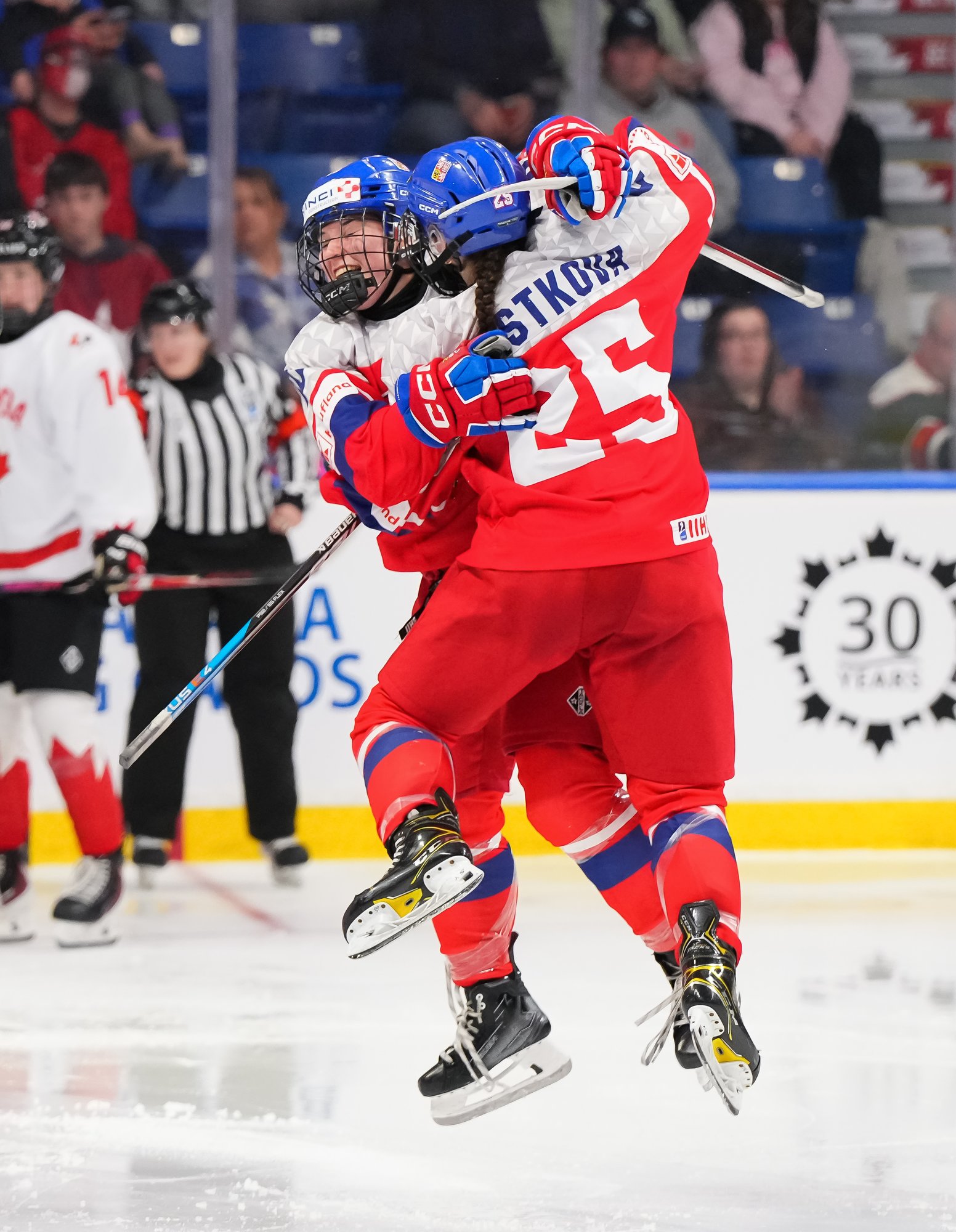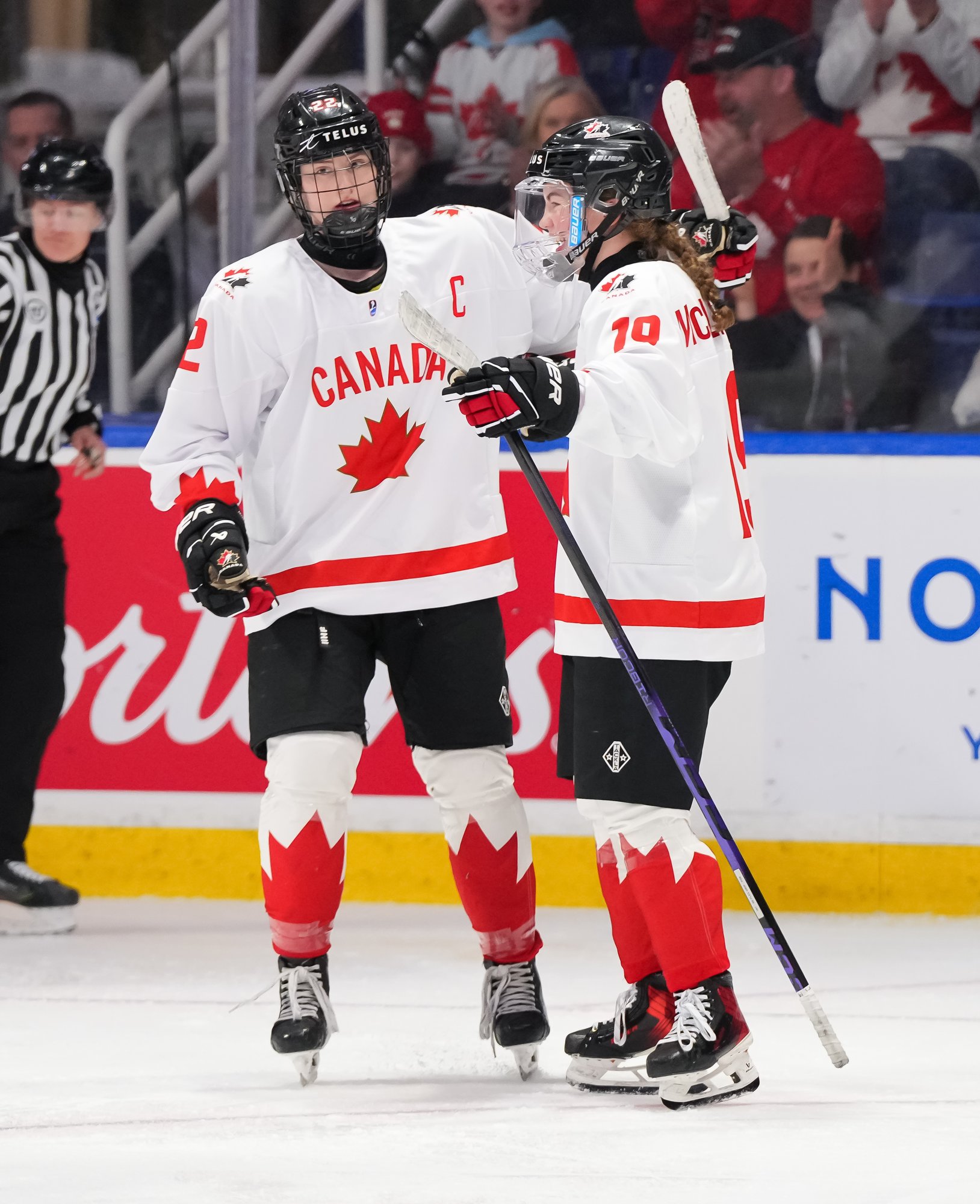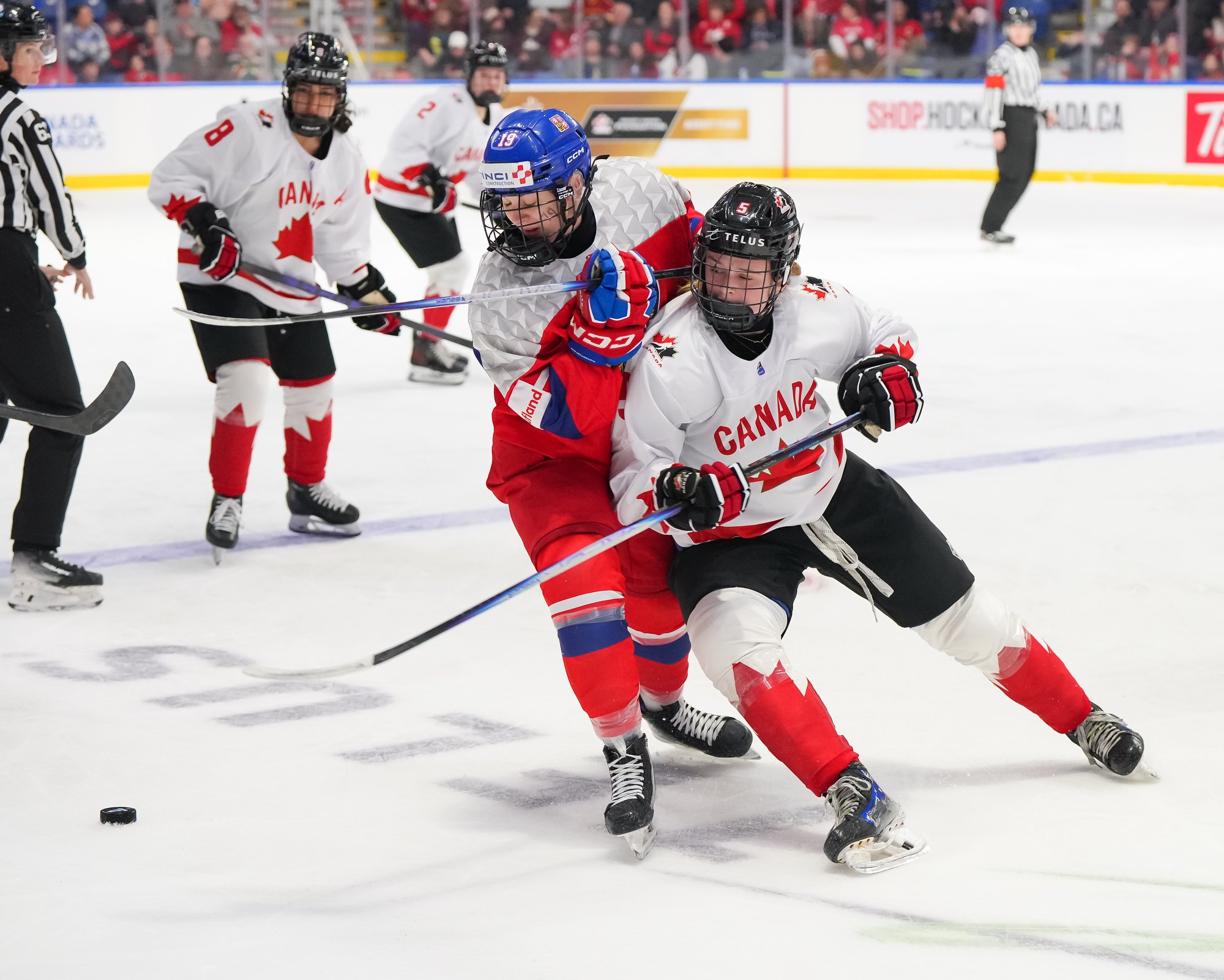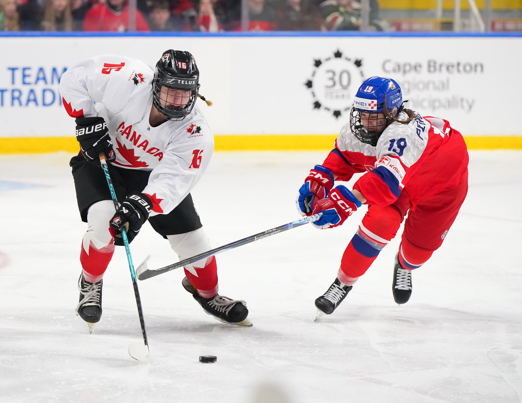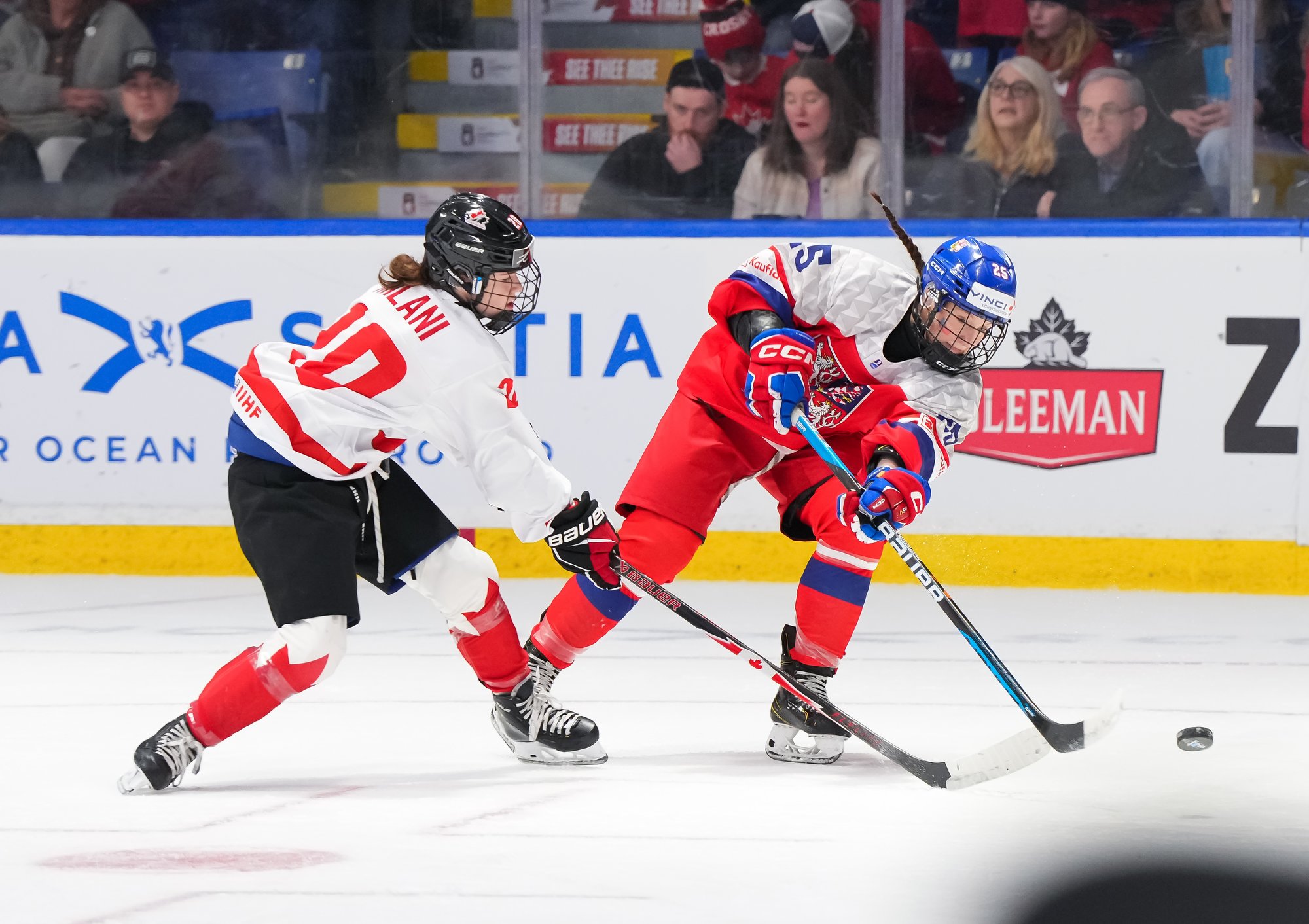 Canada’s special teams helped spark the early offense. After Sindelarova took a charging penalty just 1:24 into the first period, Maddie McCullough needed only 42 seconds with the extra-player advantage to get her team its first tally of the game.