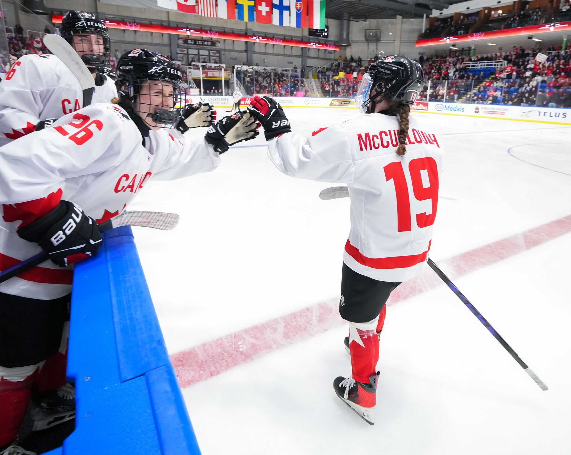 "It was a great team game, from our goalie to our forwards," said the Canadian forward McCullough, who scored twice and finished with five shots on goal. "It was great. Gotta bring it tomorrow now. Tomorrow is the big one. It's the gold medal, and it's the U.S., and in front of our crowd. We want to make them proud."