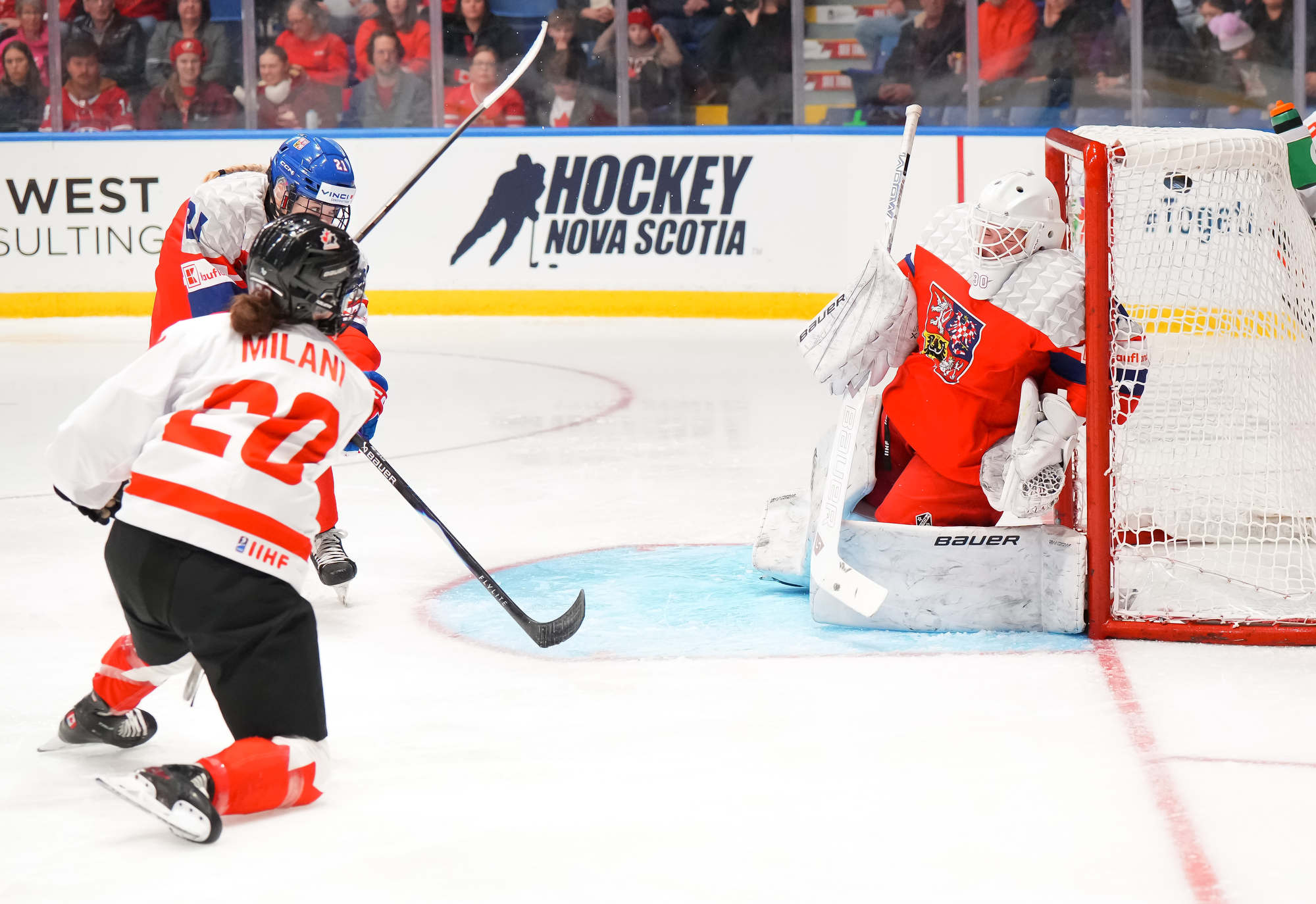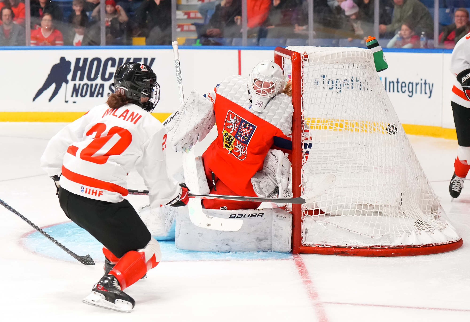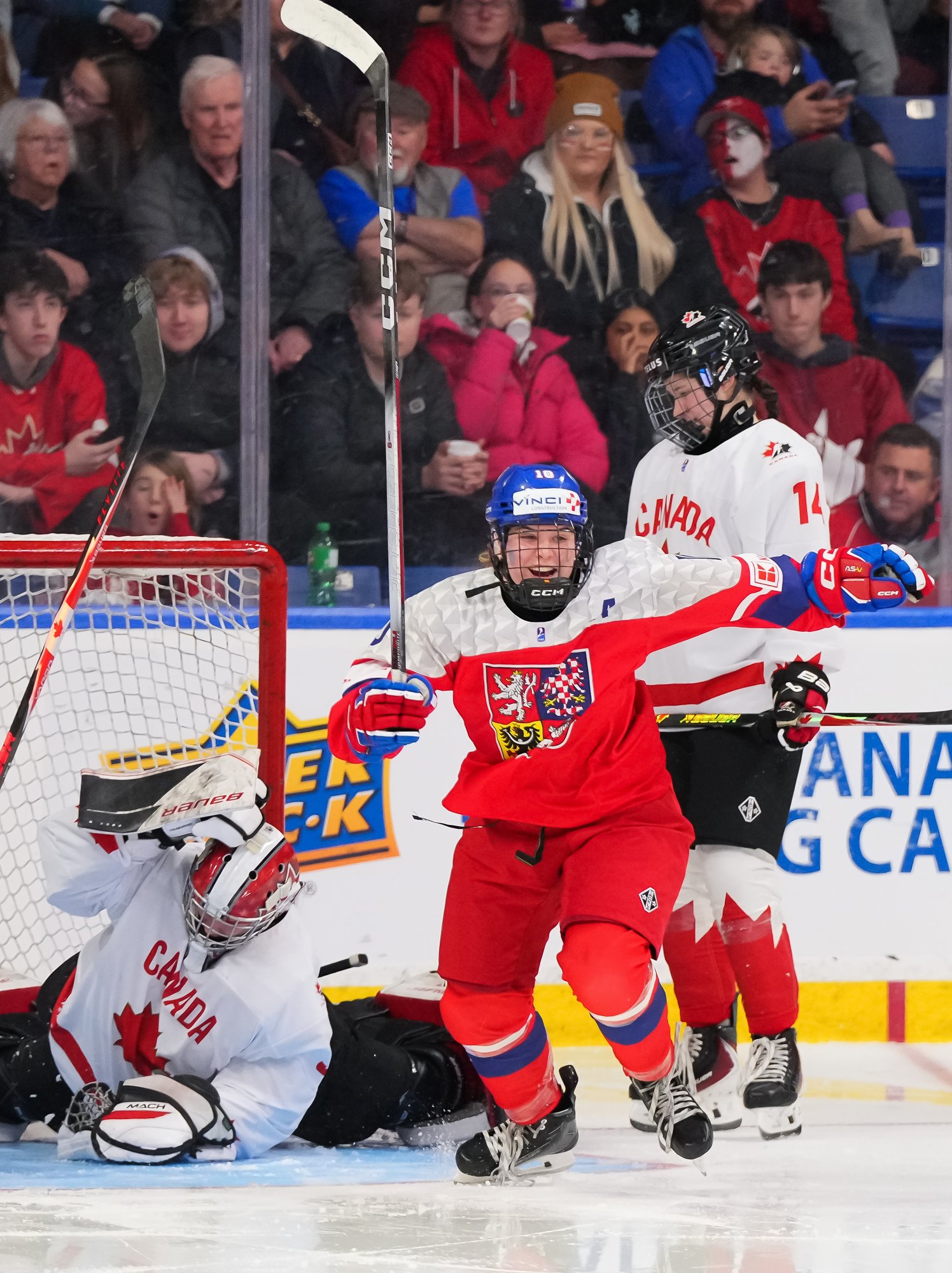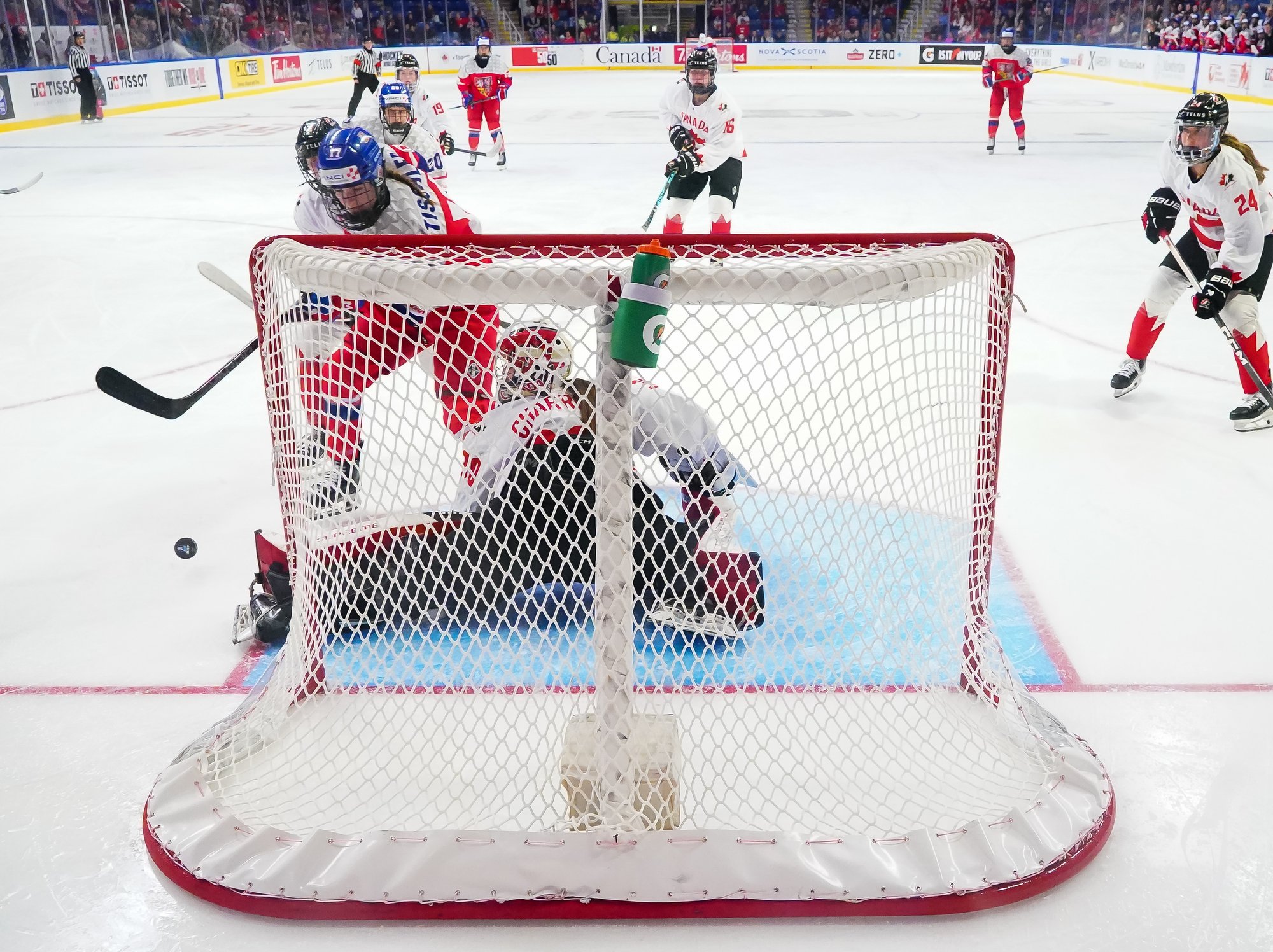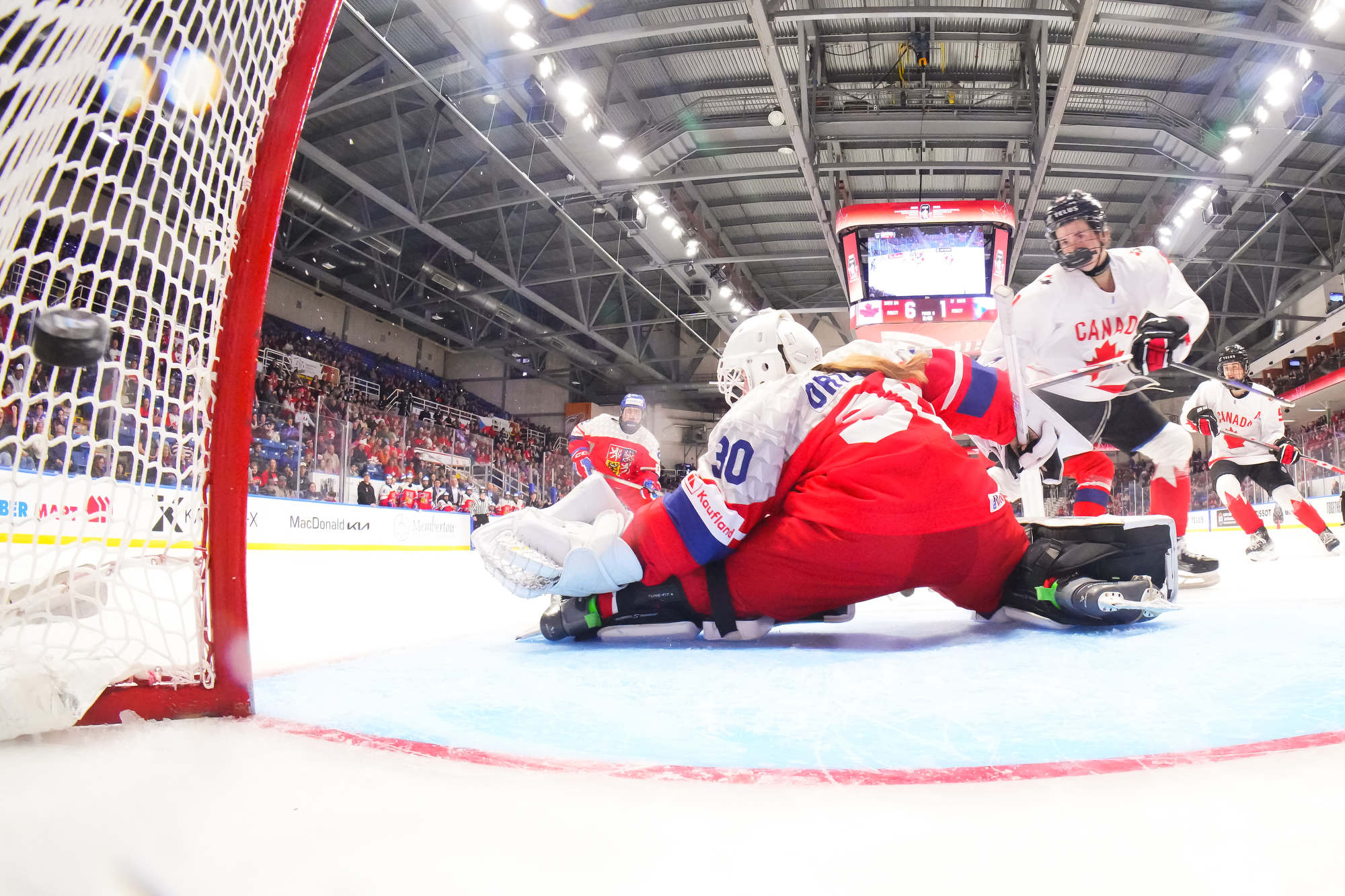 Lucie Sindelarova scored Czechia's only goal, shorthanded. Lili Chmelarova got her fifth start, but made way for Veronika Ortova after allowing three goals on Canada’s first six shots. Ortova had previously seen just 40 minutes of relief work in the Czechs’ 9-1 loss to the United States last Sunday.