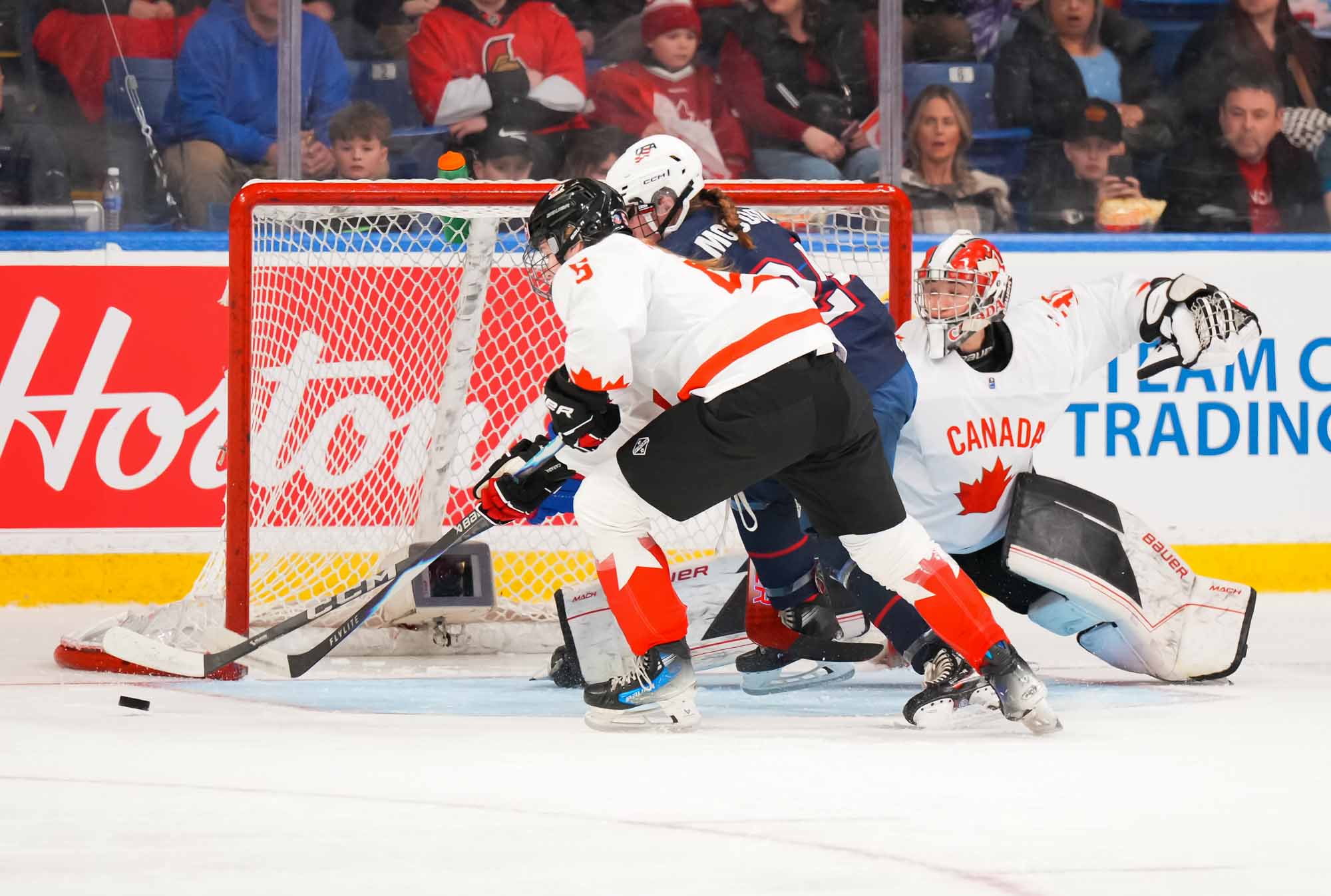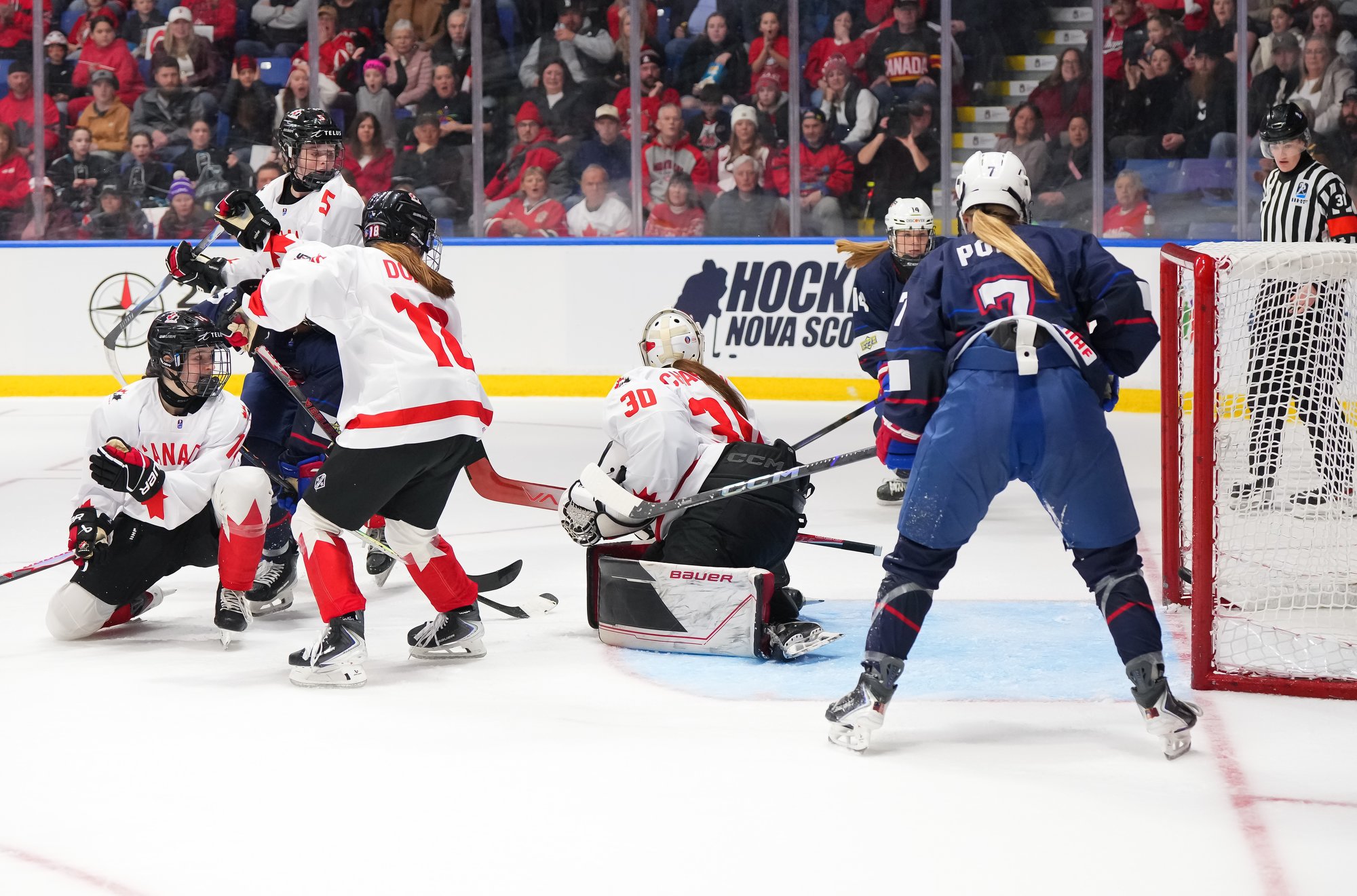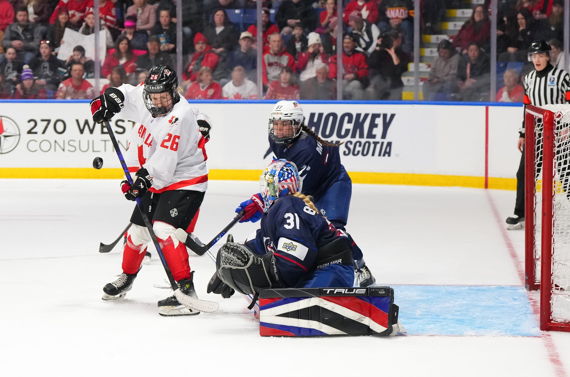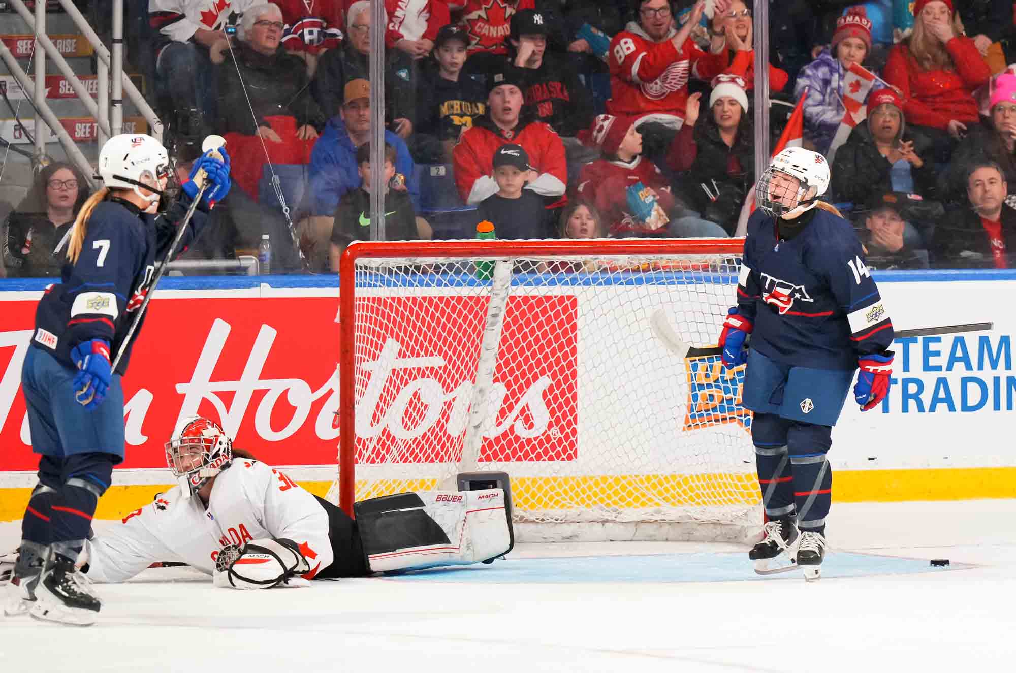 Try as they might, the Canadians were denied time and again by the determined U.S. defence. Birrittieri made her best save in the third. Milani was in the slot to knock a loose puck into the empty net, but the goalie dove and poked the puck away just in time.