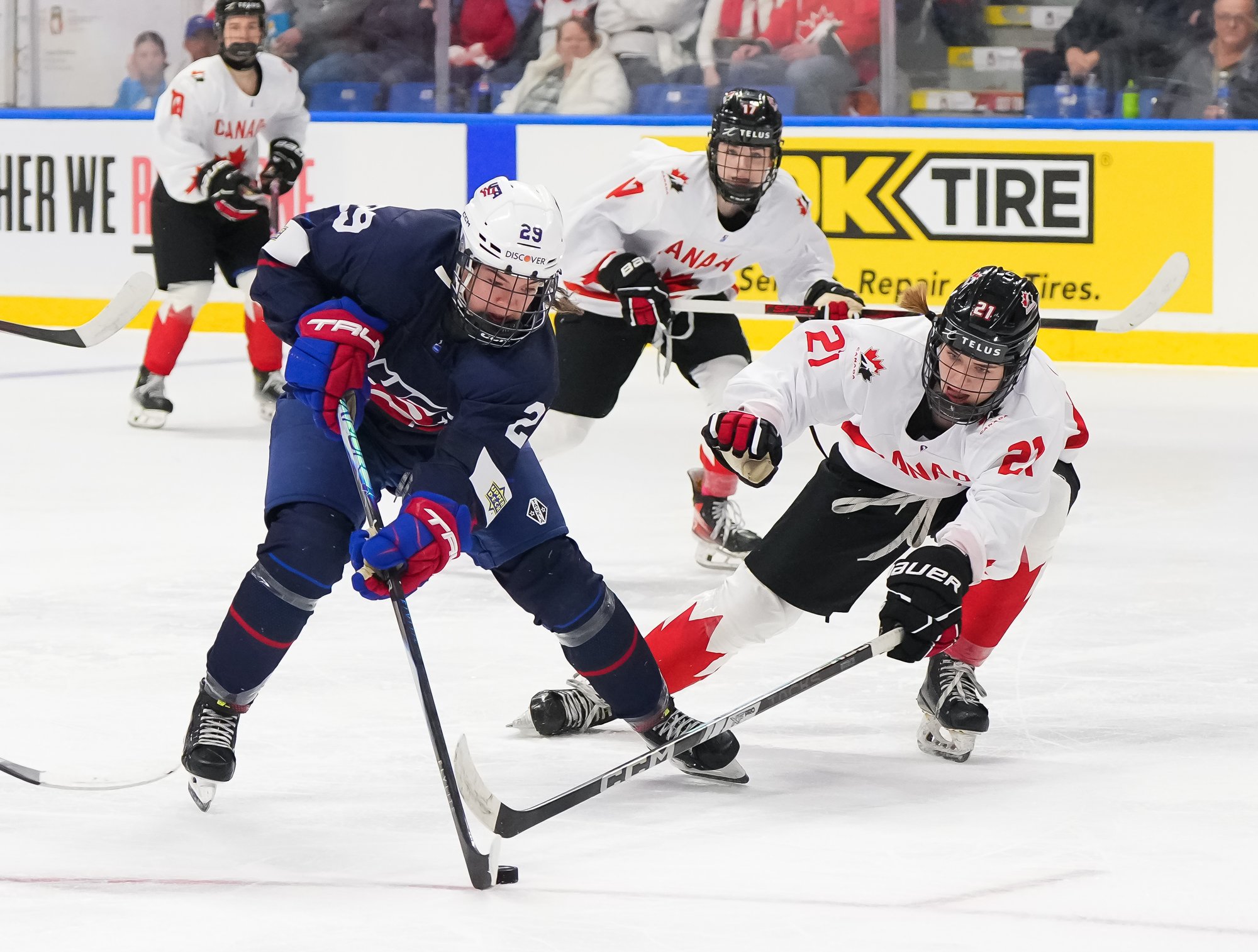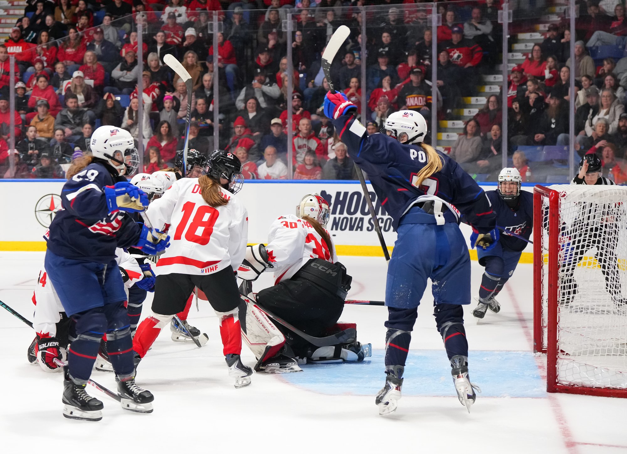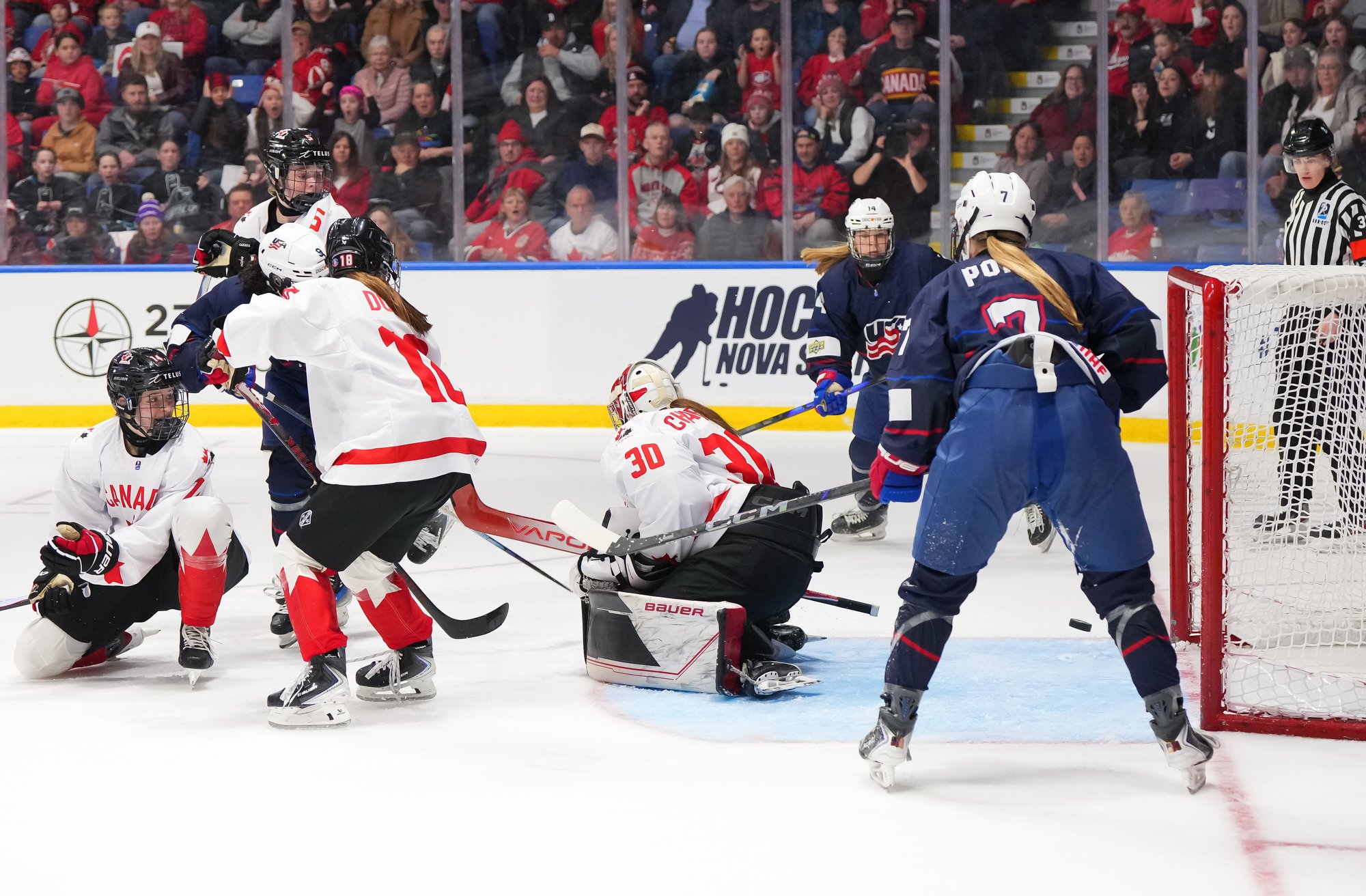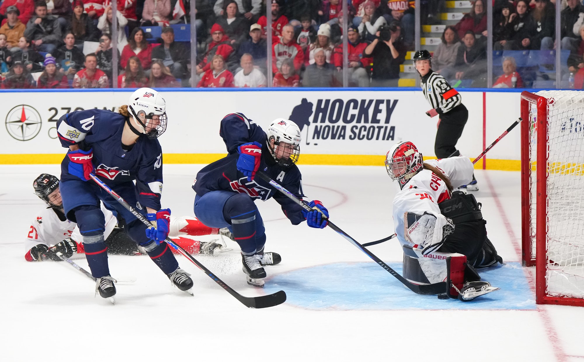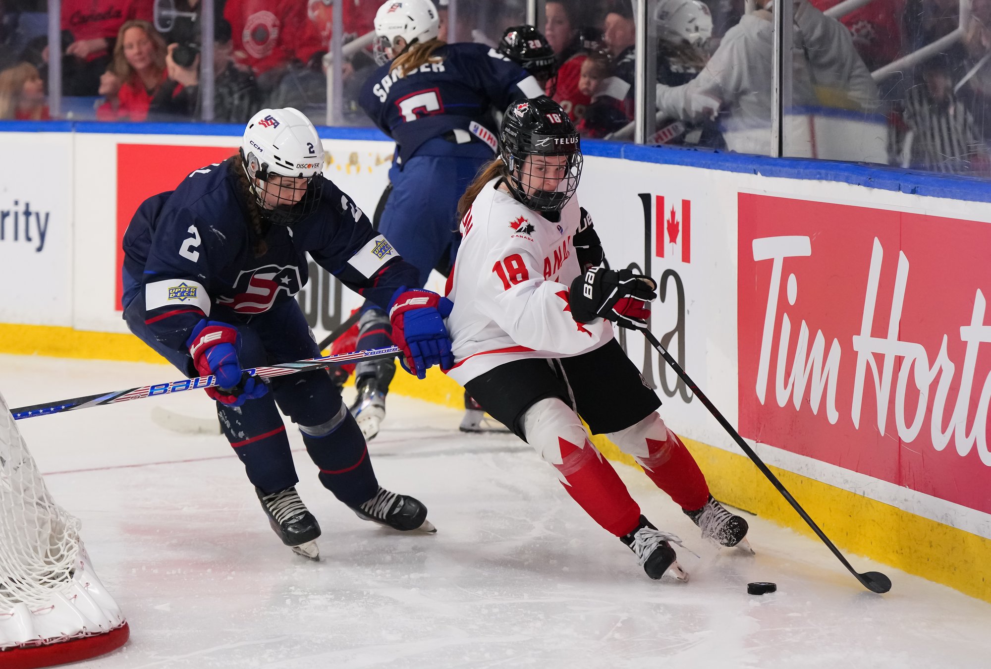Try as they might, the Canadians were denied time and again by the determined U.S. defence. Birrittieri made her best save in the third. Milani was in the slot to knock a loose puck into the empty net, but the goalie dove and poked the puck away just in time.
