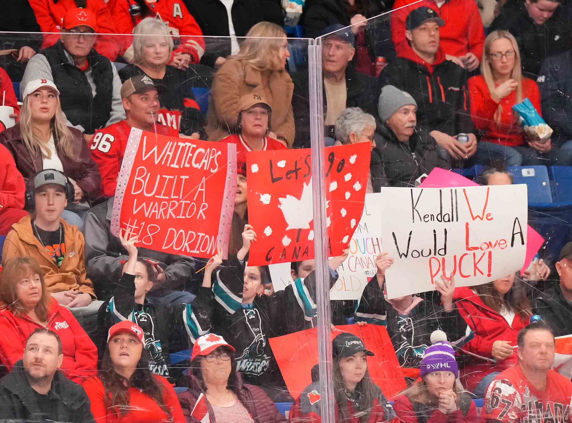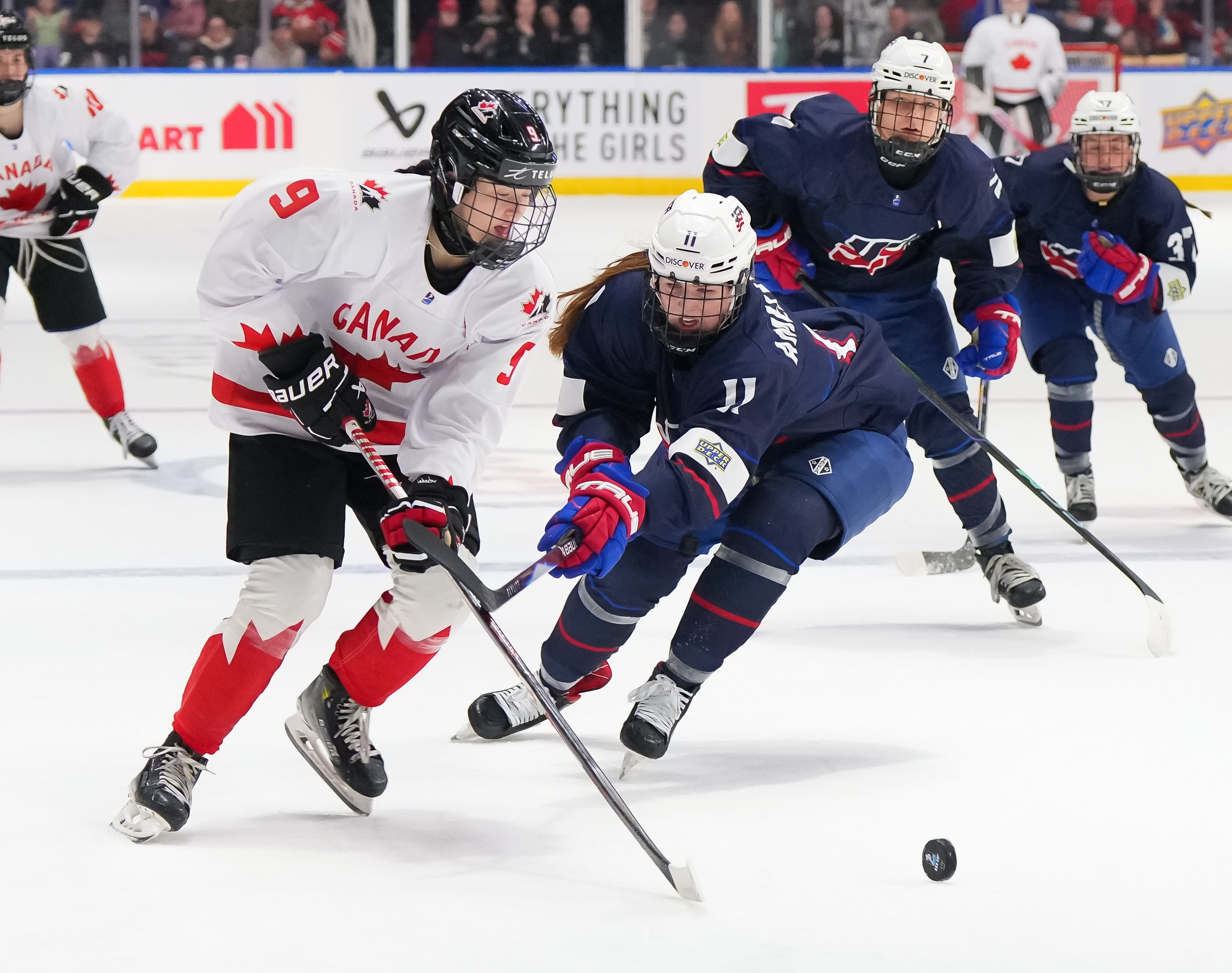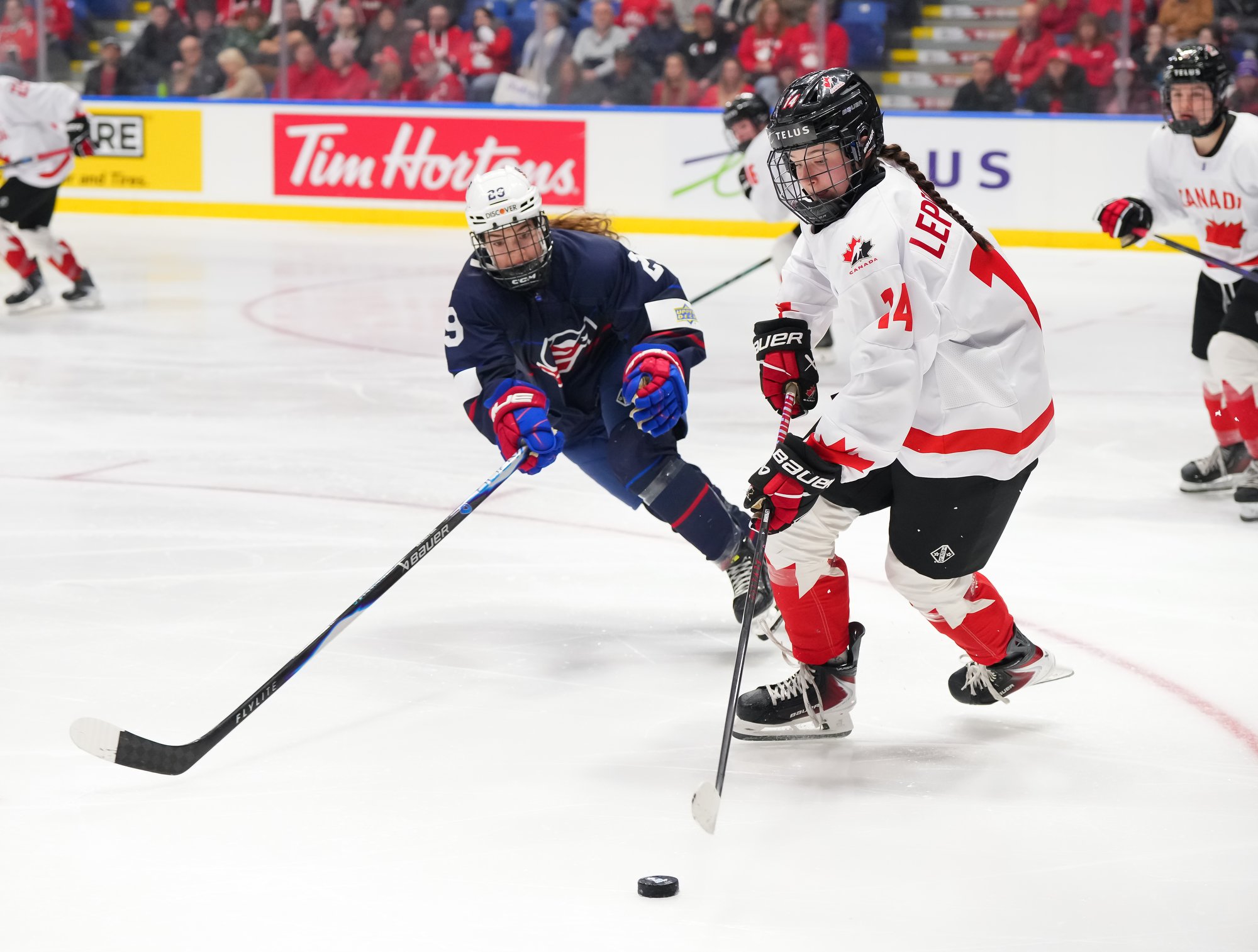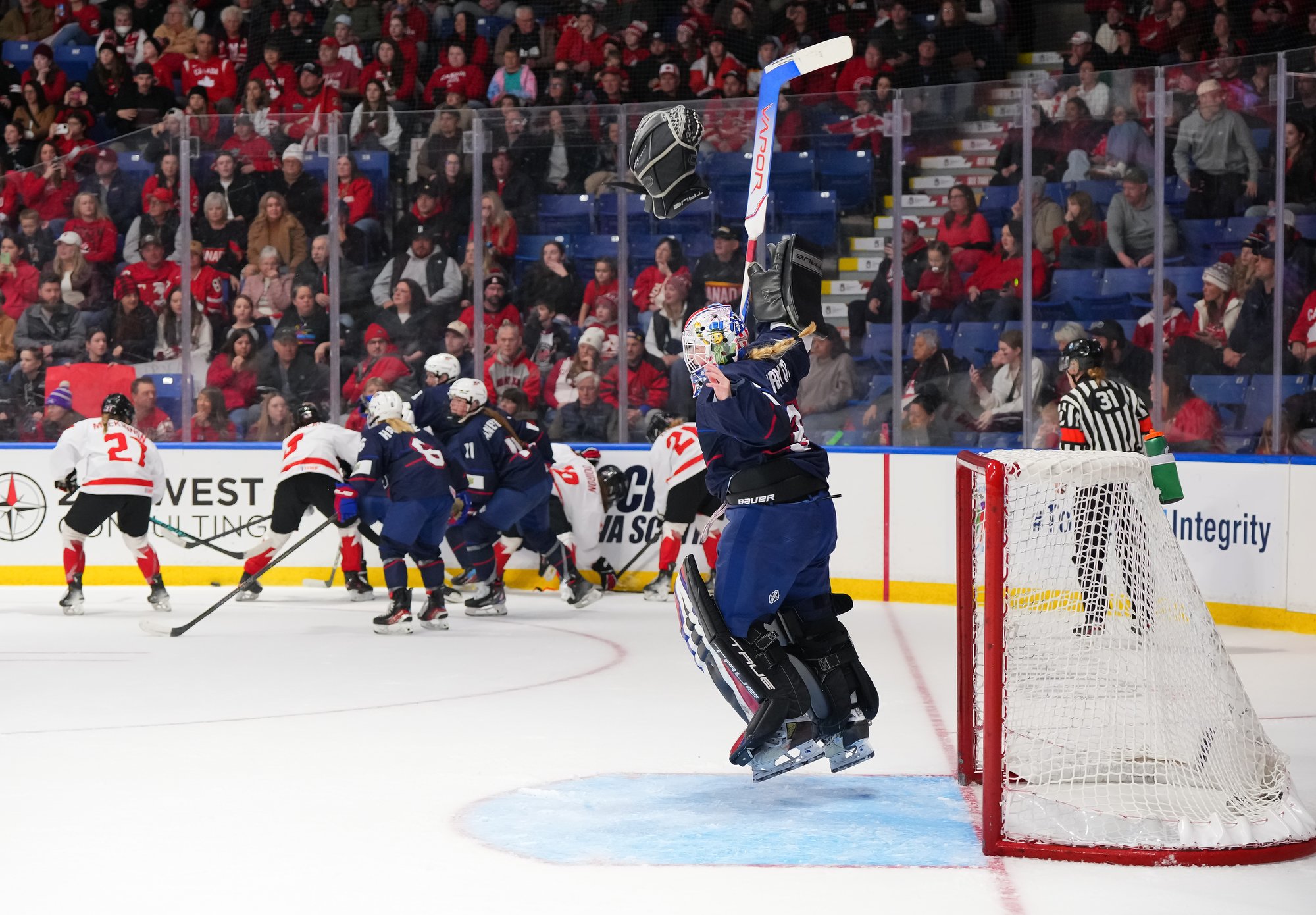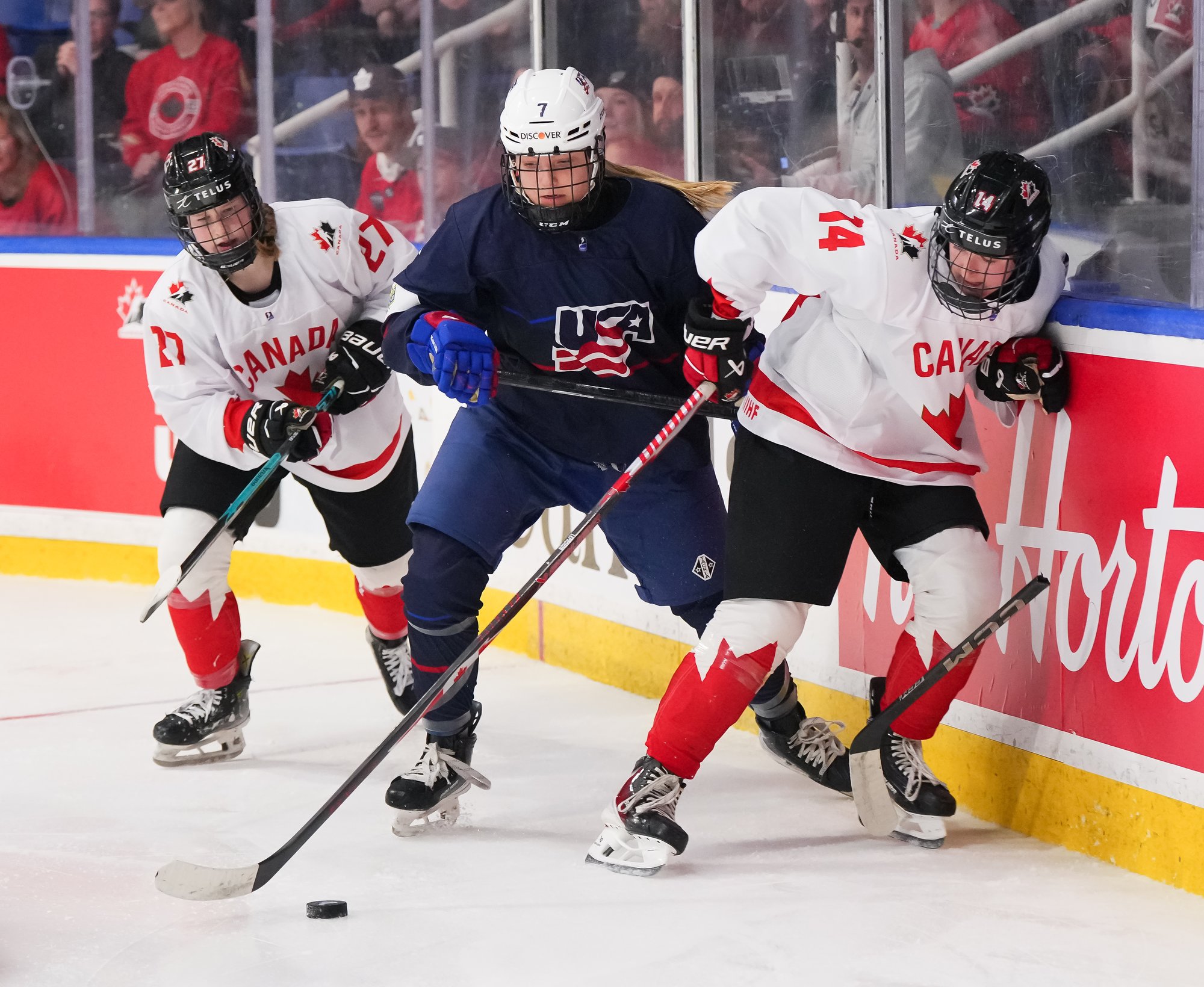 Try as they might, the Canadians were denied time and again by the determined U.S. defence. Birrittieri made her best save in the third. Milani was in the slot to knock a loose puck into the empty net, but the goalie dove and poked the puck away just in time.