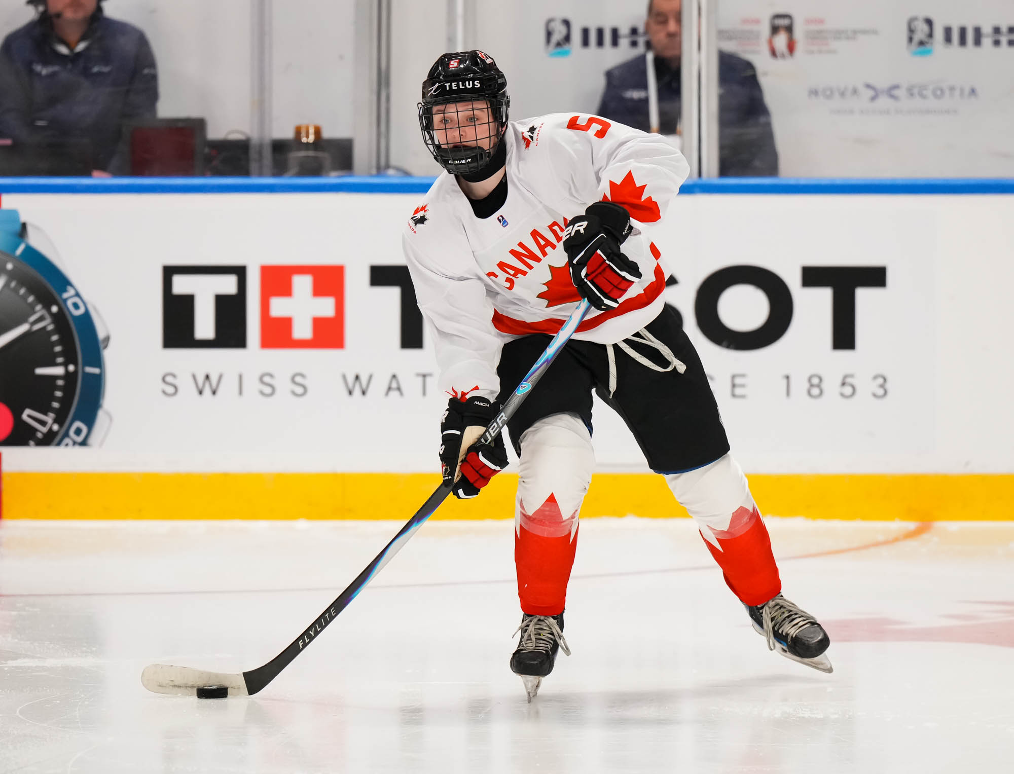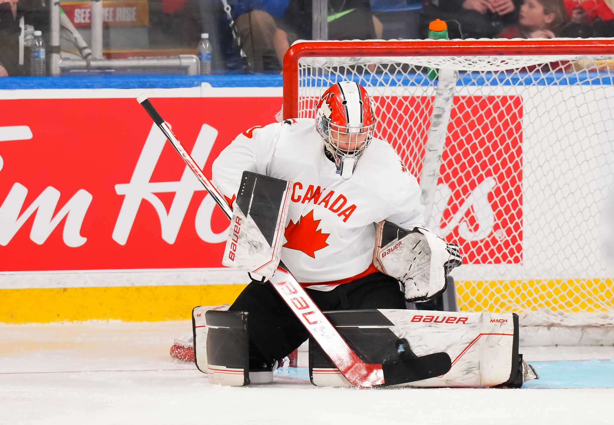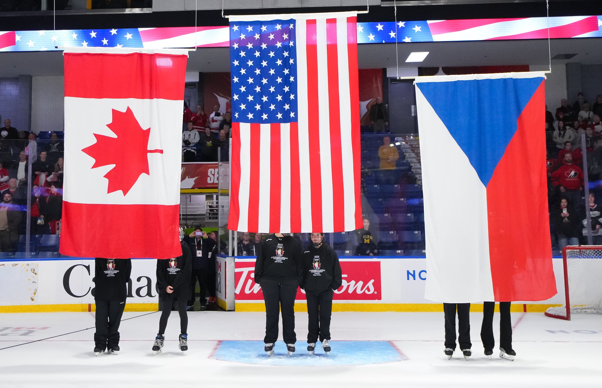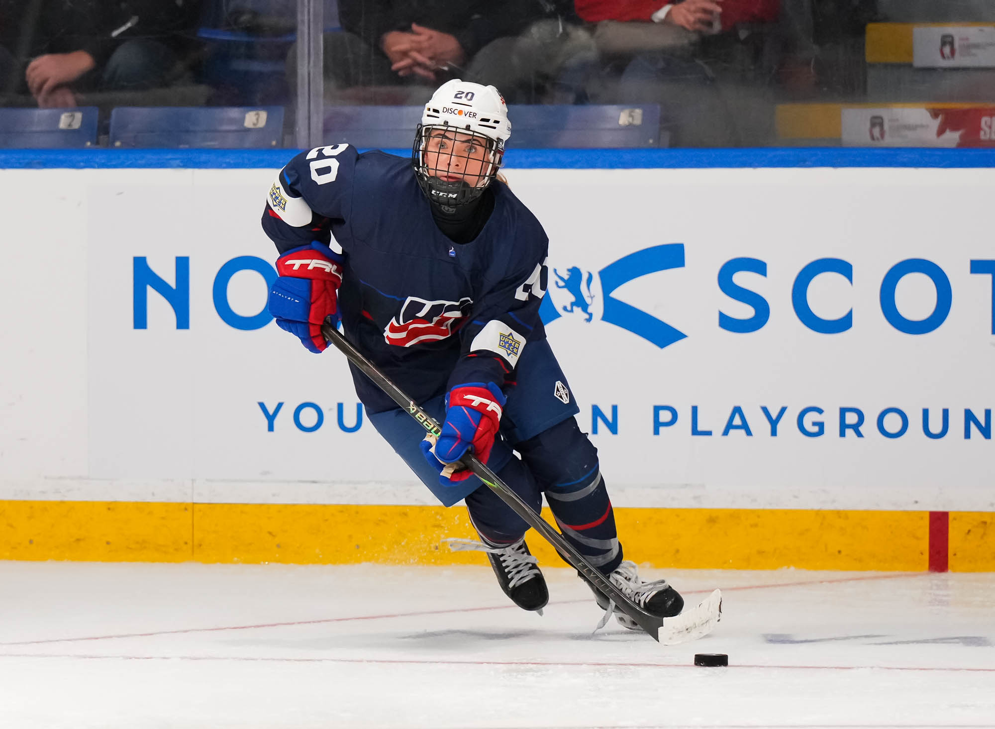 Although Canada moved the puck around crisply and generated several shots, none got past Birrittieri. And then, at 14:08, the Americans opened the scoring on a set faceoff play in the Canada end.